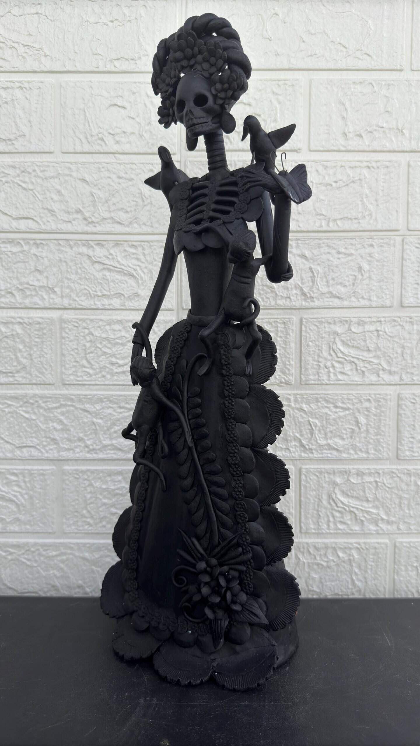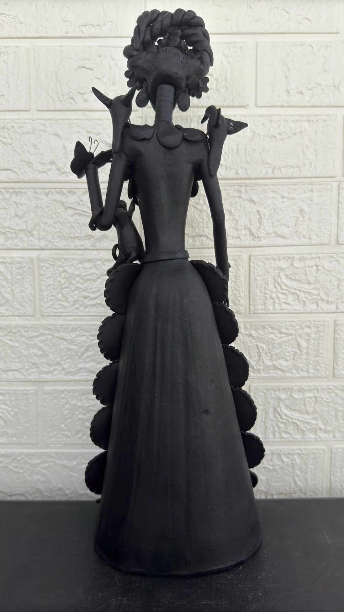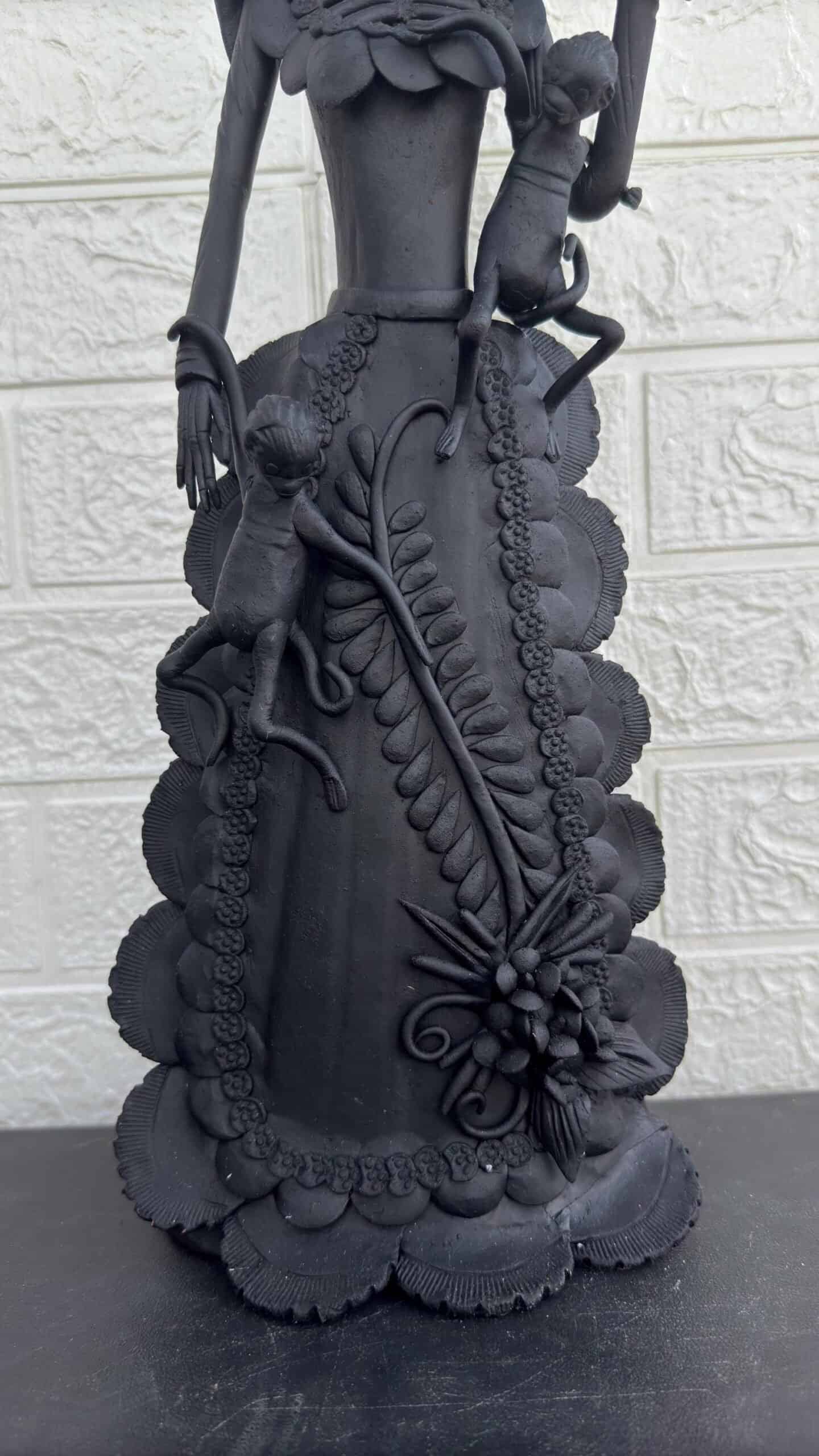 Catrina, Frida Kahlo doll, Day of the dead, Human skeleton, Mexican decorations, Sugar skull Description. – Material: Clay – Dimentions: 18” high – Made and hand painted by Mexican artisans “The colors of death, the catrinas” An example of this tradition is Capula, a place that is synonymous with catrina. The place where it takes its colors and the smile that it gives to each visitor, being the symbol of this potter town on the Don Vasco Route. Don Juan Torres, a famous international artist, was in charge of putting Capula on the map. He created the first figures of this charming tradition. Over the years and thanks to the mastery of his creations, the Catrinas of Capula achieved a higher status throughout the region and the country. Today, these cute figurines are made in hundreds of small family workshops. Each craftsman puts his personal stamp and style on each work to extend the tradition to other corners. The creation of the calaca in clay arose in the 70s, when the Michoacan artisan Juan Torres decided to give life to the character of Posada, which Diego Rivera also made famous, becoming his famous piece and which was learned by more artisans from Capula . Today almost the entire artisan population here makes them with their own stamp. “Choose this beautiful Mexican handicraft, each catrina is unique and special”