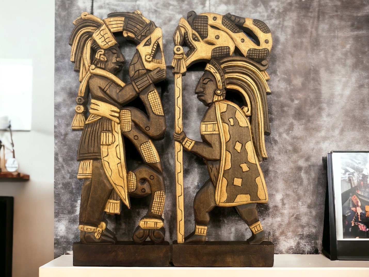 Aztec Art, Mayan art, (2 Pieces) Mexican Wall Sculptures , Prehispanic, Wood carving, Handcrafted ASK FOR CUSTOMIZE
