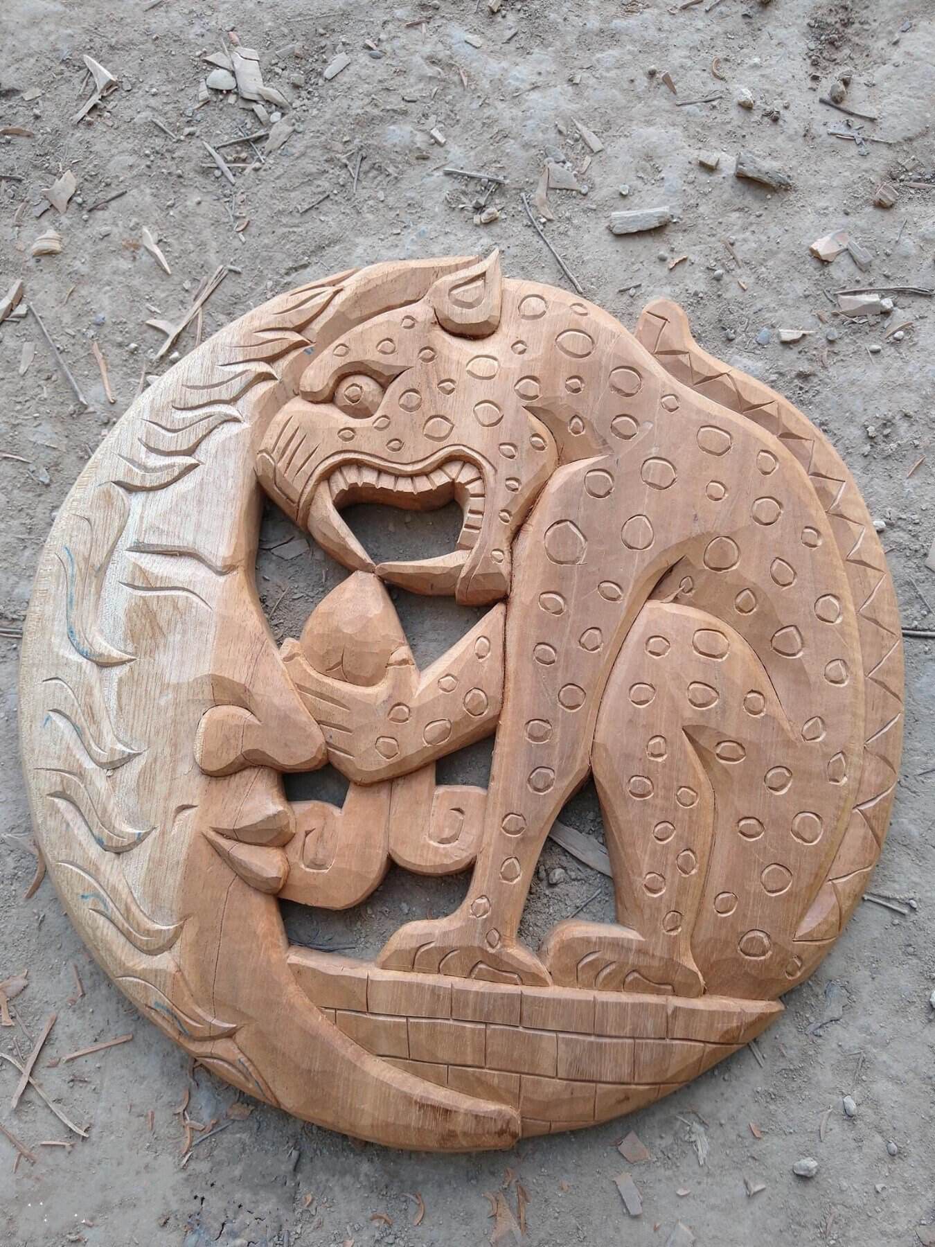 Hand Carved by Mexican Artisans, 3D Wood Carving Design.