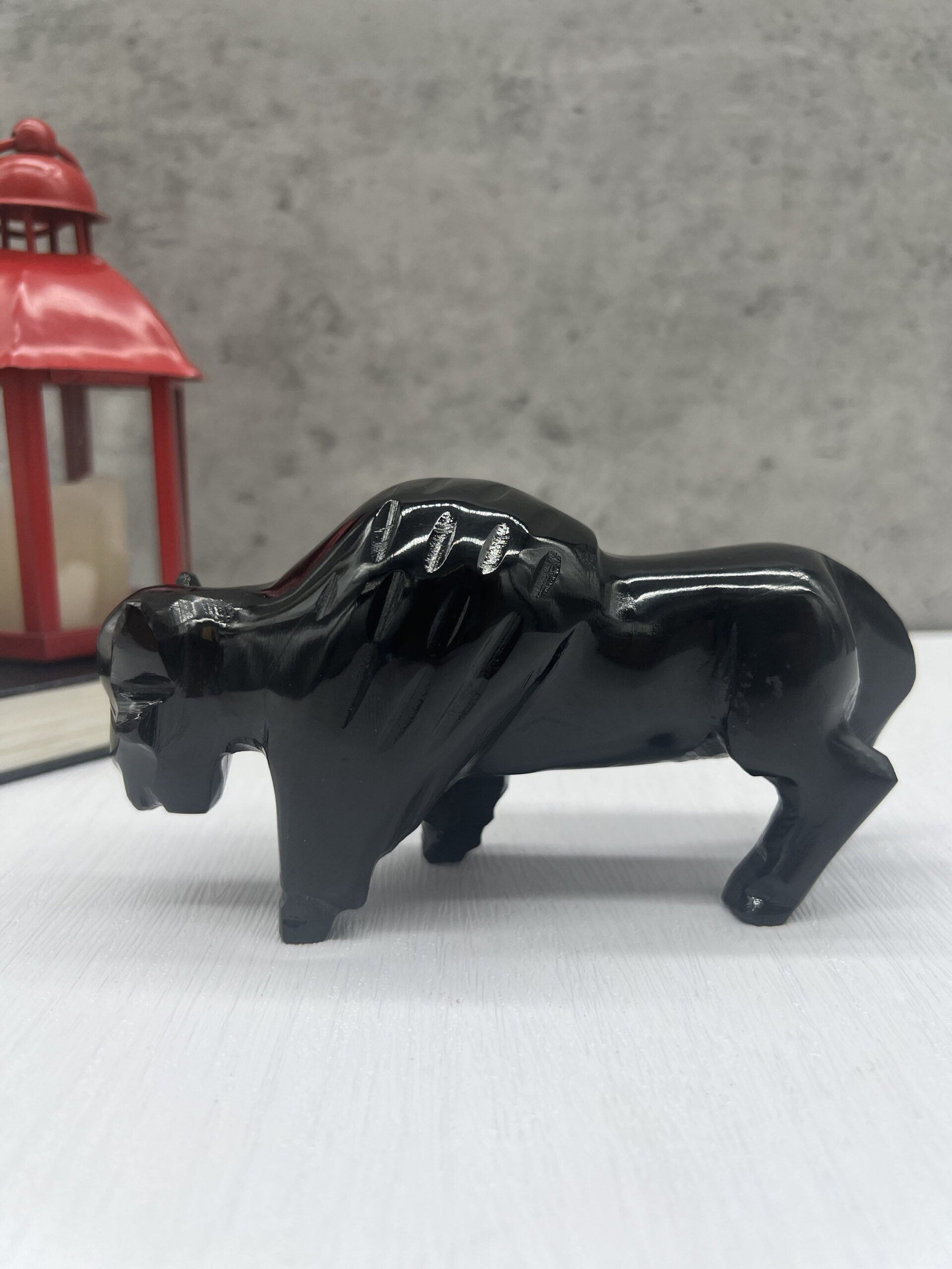This beautiful stone bison will serve as an excellent decoration for your home, with its modern and minimalist design it will look great in any space.