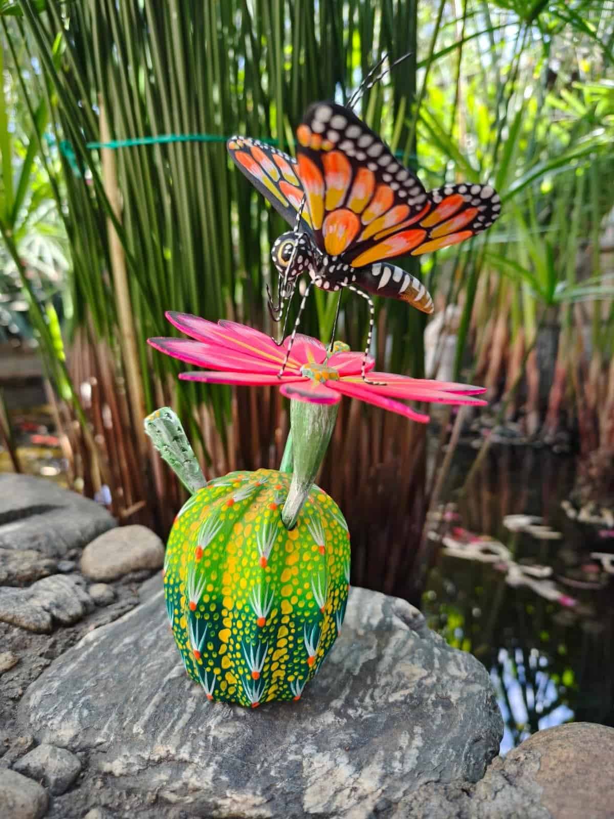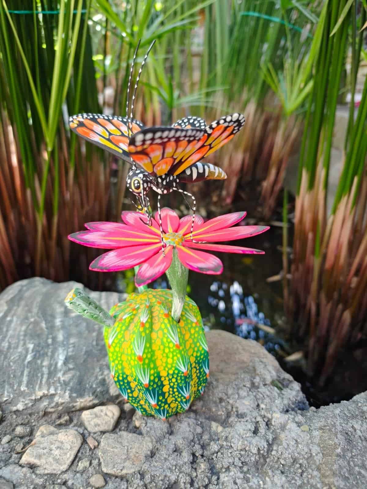 “ Butterflie statue – Alebrije – Carved in wood ” Item Description: * Made in Mexico * Made in Oaxaca by native indigenous people * Folk art Item details: * Made of copal wood * Carved and painted by hand * Measures: 5” wide, 7.5” tall The ALEBRIJE is a type of handicraft native to Mexico, also called Nahuatkzosquit. These are handicrafts made with the carpentry technique and carved in copal wood that are painted with mostly cheerful and vibrant colors. ALEBRIJES are imaginary beings composed of physiognomic elements of different animals, a combination of several animals, not only fantastic but also real that form an amazing being. Alebrijes represent the innovative spirit and creative soul of Oaxaca, Mexico, where the ancestral tradition was created. The pieces, unreal and magical, are the most captivating in the AZTECA country and valued for their originality and extravagance “This alebrije is ideal as a Mexican decoration” Place your order carefully, we will pack it ✅ Product in shipped in box ✅ Priority Mail Shipping 3-5 business days✅ Express shipping is available for an additional charge, please inquire ✅ You can send this with a special dedication✅ It can be sent with a special gift wrapping (notify) ✅ Any questions do not hesitate, we usually respond in less than an hour 😀.