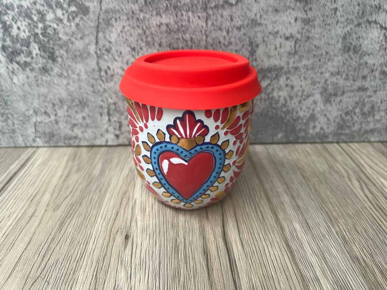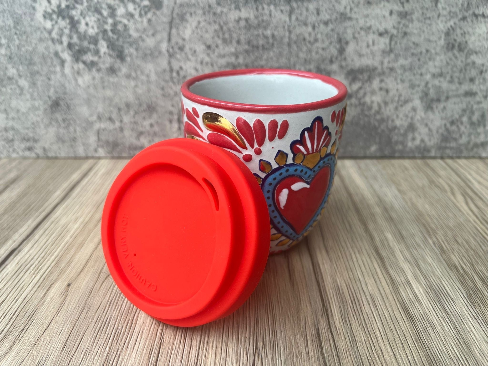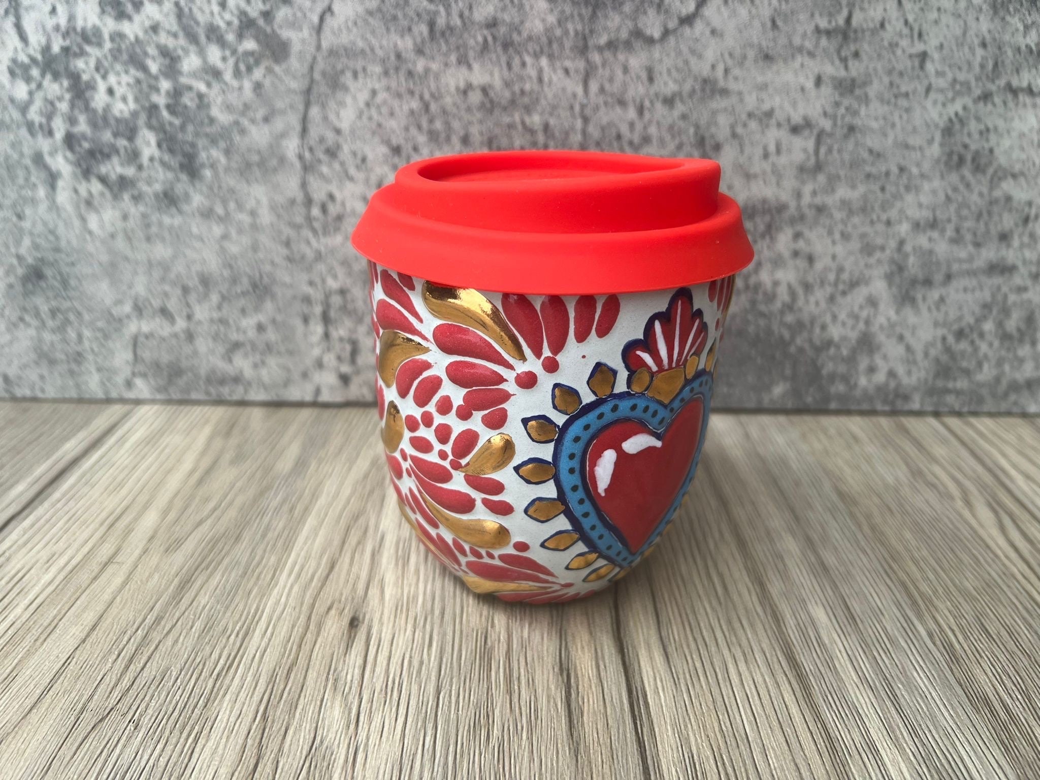 “ Cappuccino cup, Mexican coffee mug, Talavera pottery, Handmade with quality materials with gold details “