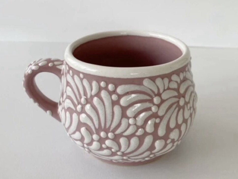 This Talavera mug is handcrafted in Puebla, Mexico by skilled artisans who follow traditional ceramic techniques passed down through generations. Each piece is hand-painted and glazed, making every mug unique. The colors and patterns reflect the beauty of Mexican craftsmanship and add a special touch to your table. Perfect for enjoying coffee, tea, or hot chocolate, it can also be used as a decorative accent. A genuine handmade piece that brings warmth, tradition, and everyday charm into your home.