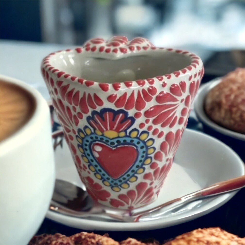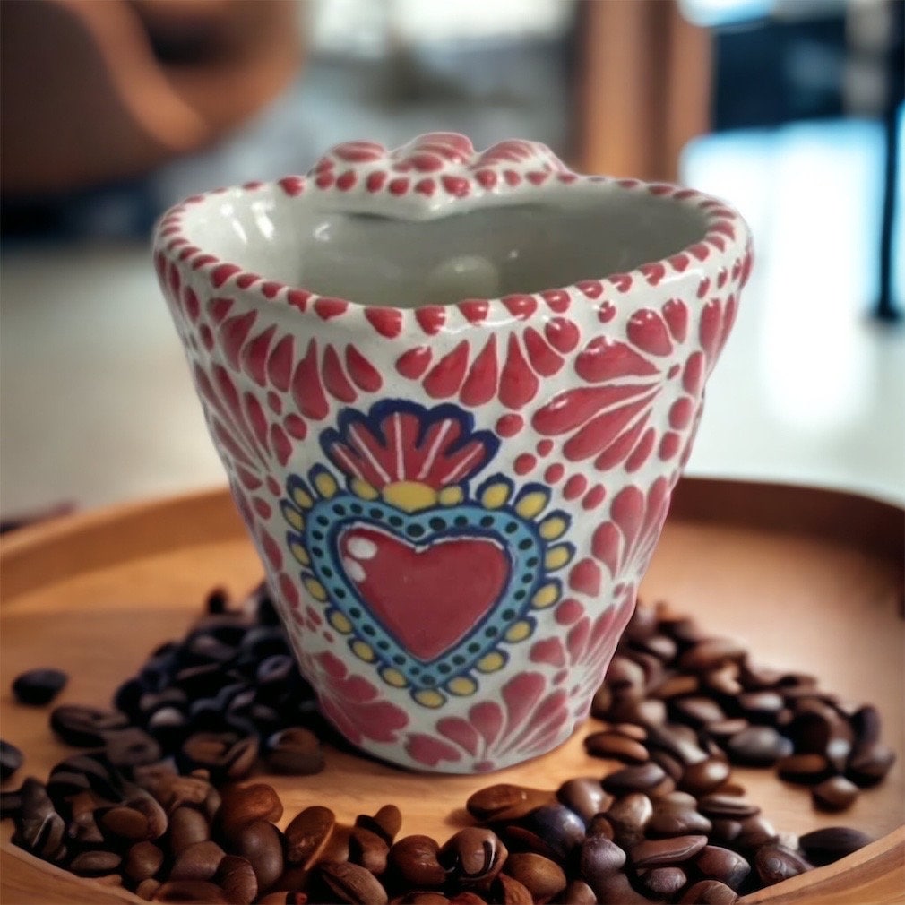 “ Cappuccino heart cup, Mexican coffee mug, Talavera pottery, Handmade with quality materials ”