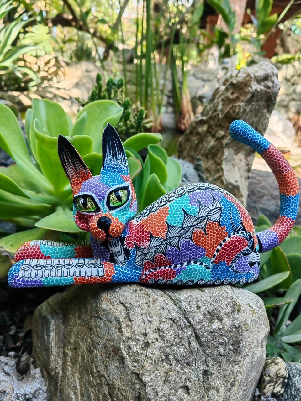 “ Cat statue – Alebrije – Carved in wood ” Item Description: * Made in Mexico * Made in Oaxaca by native indigenous people * Folk art