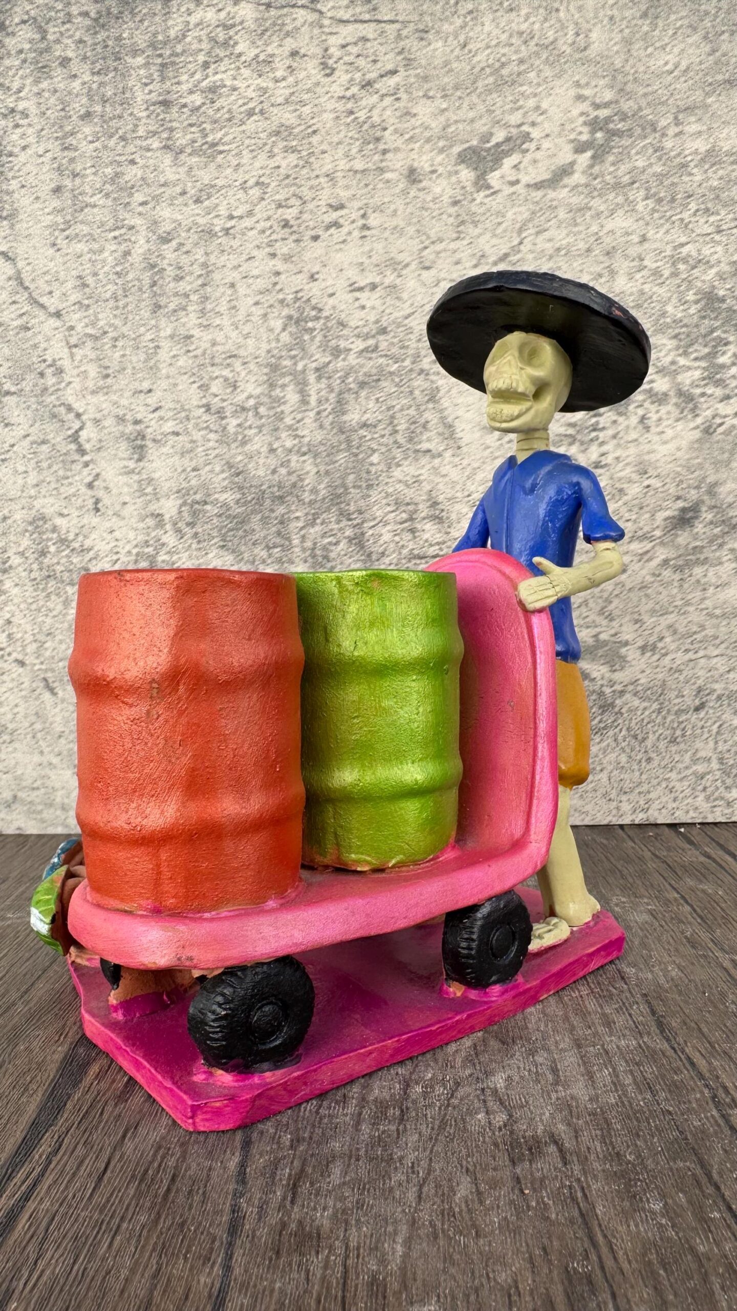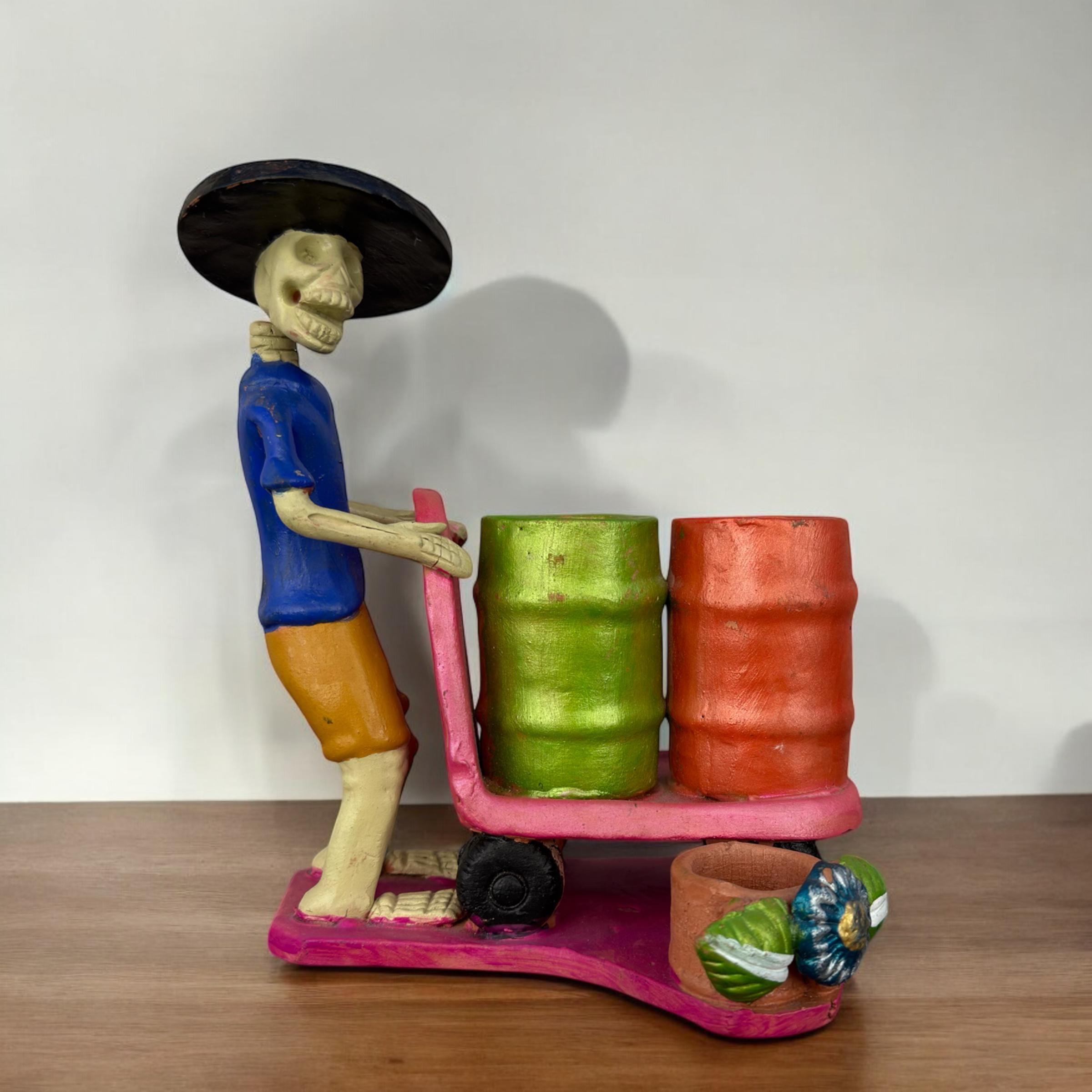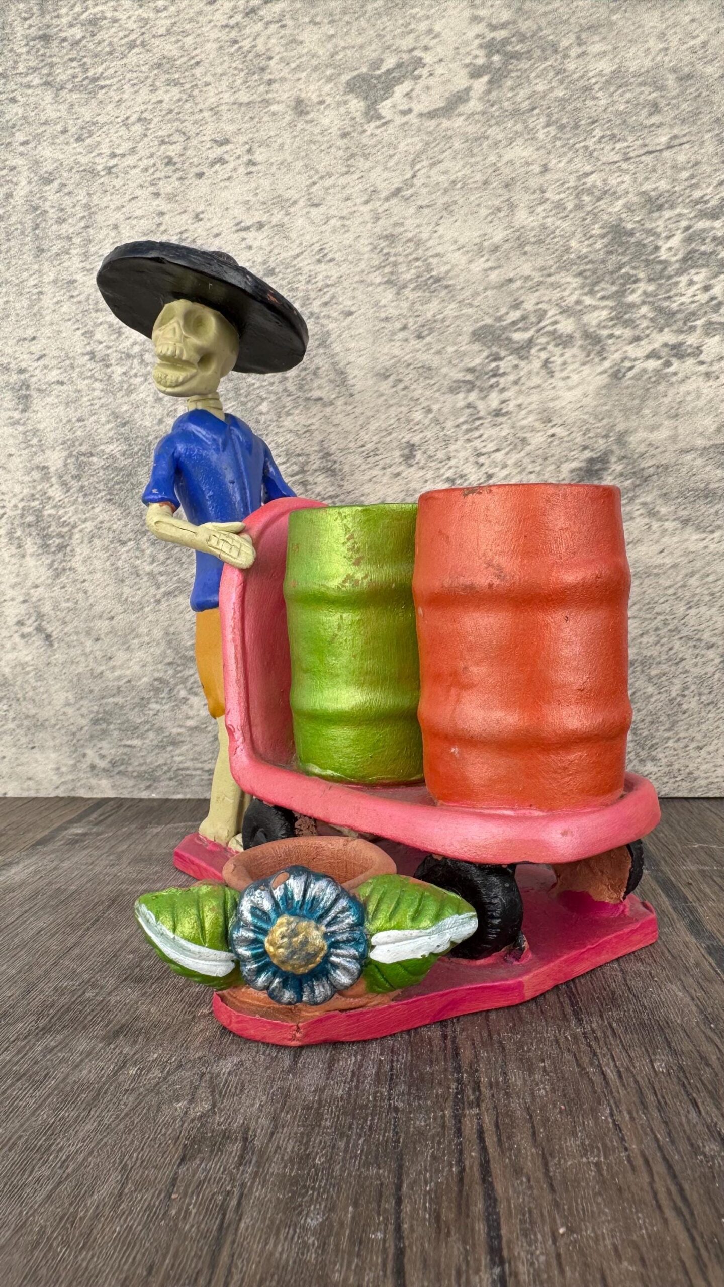 Today, these cute figurines are made in hundreds of small family workshops. Each craftsman puts his personal stamp and style on each work to extend the tradition to other corners. The creation of the calaca in clay arose in the 70s, when the Michoacan artisan Juan Torres decided to give life to the character of Posada, which Diego Rivera also made famous, becoming his famous piece and which was learned by more artisans from Capula . Today almost the entire artisan population here makes them with their own stamp.