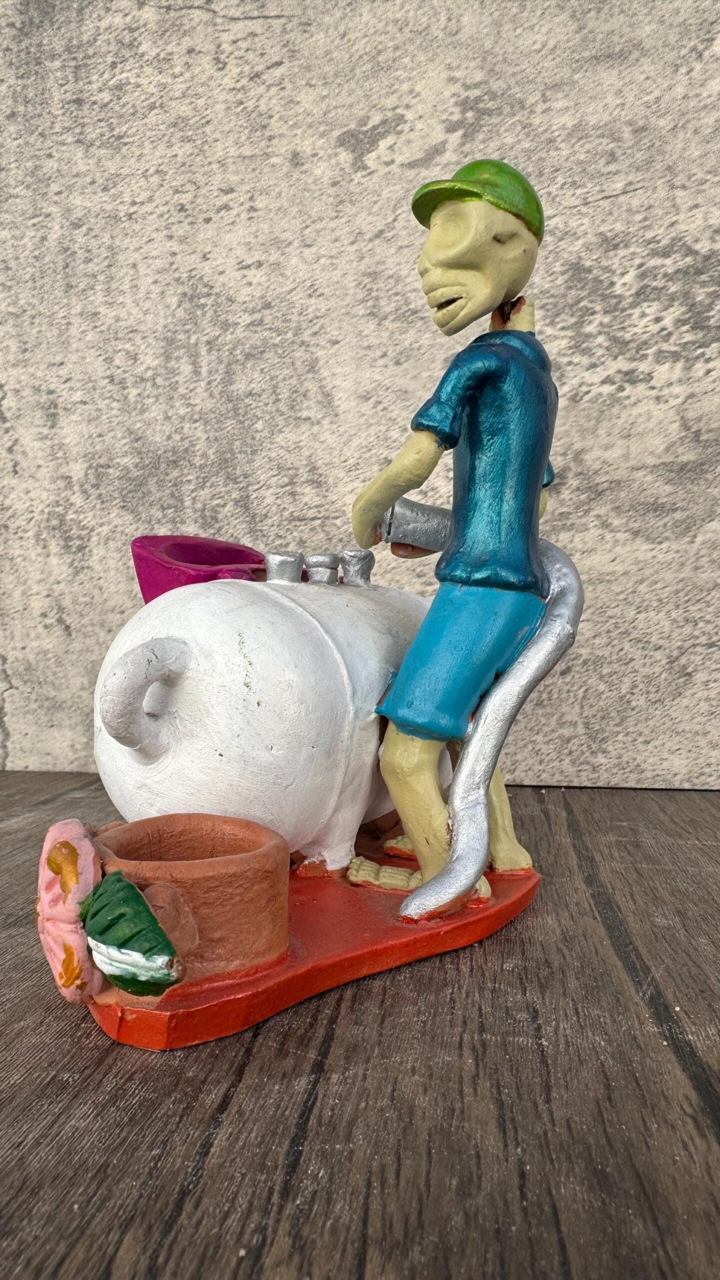Today, these cute figurines are made in hundreds of small family workshops. Each craftsman puts his personal stamp and style on each work to extend the tradition to other corners. The creation of the calaca in clay arose in the 70s, when the Michoacan artisan Juan Torres decided to give life to the character of Posada, which Diego Rivera also made famous, becoming his famous piece and which was learned by more artisans from Capula . Today almost the entire artisan population here makes them with their own stamp.