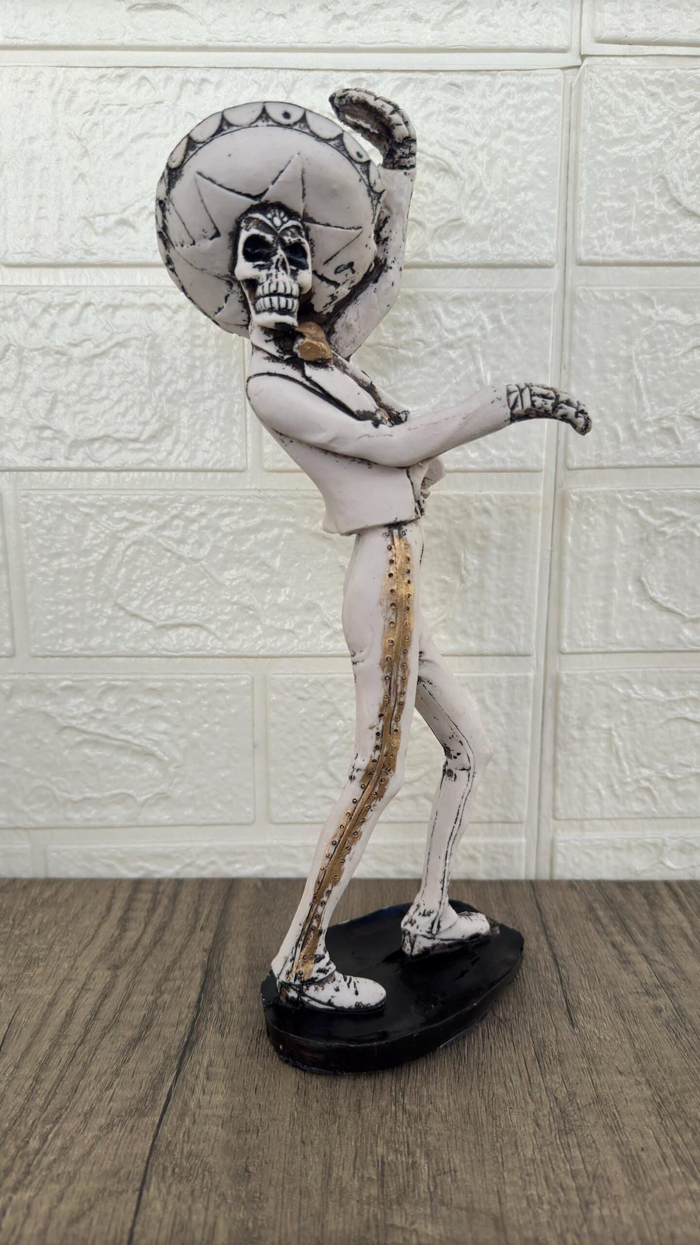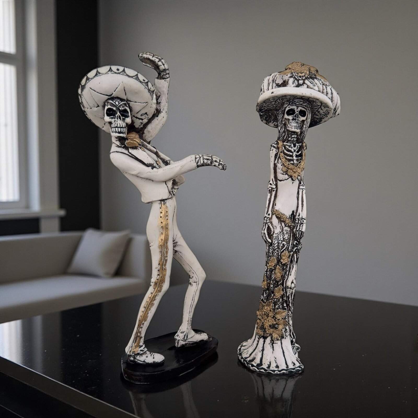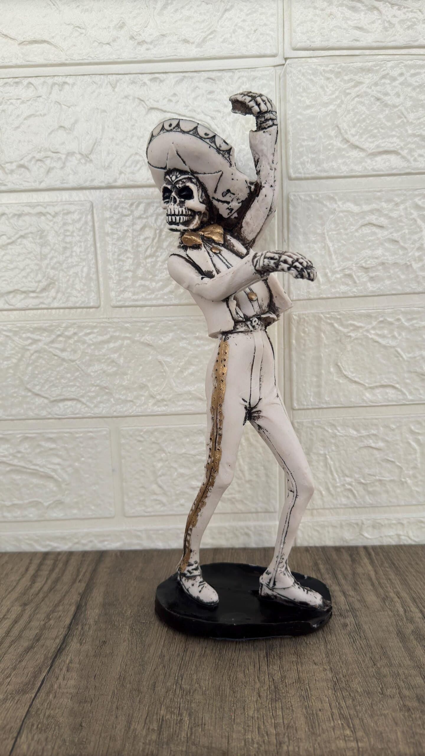 This skeleton figurine will add a mysterious and interesting look to your home, the couple is in a dancing position, they are both a mariachi skeleton This pair of calavera catrina can also be used as a ofrenda decor, The material of this piece is very resistant, with the finishes it has, it gives it a rustic and very beautiful appearance. Show off this beautiful handmade Mexican catrina IMPORTANT NOTE: The colors of the catrina may vary slightly from what is seen in the image since each piece is unique All our fragile products, we pack them with special materials to guarantee their protection, if there is any problem with your package, please contact us to solve it as soon as possible. IF YOU ARE INTERESTED IN SEEING MORE SKULL