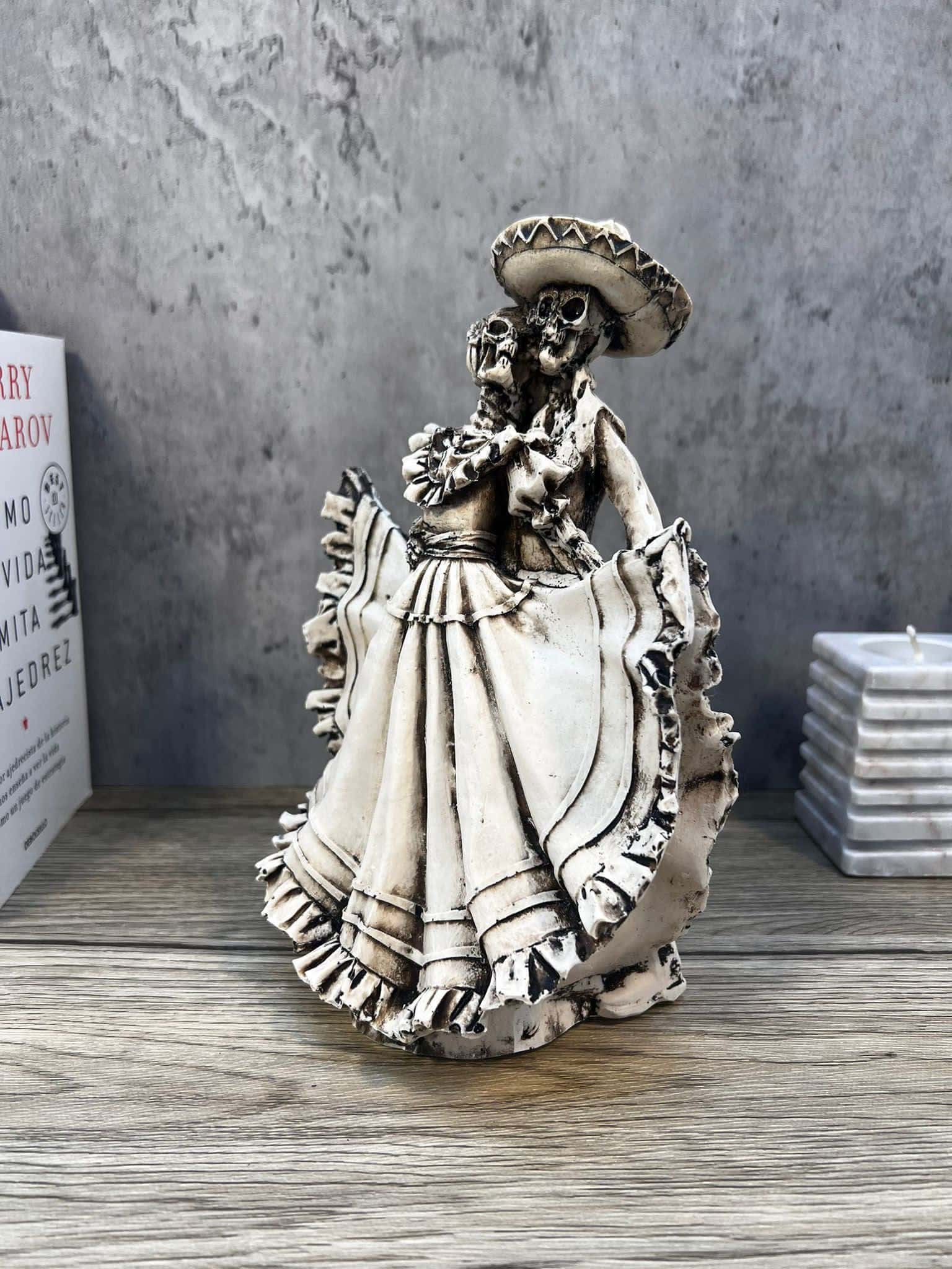 This skeleton figurine will add a mysterious and interesting look to your home, the couple is in a dancing position, they are both a mariachi skeleton