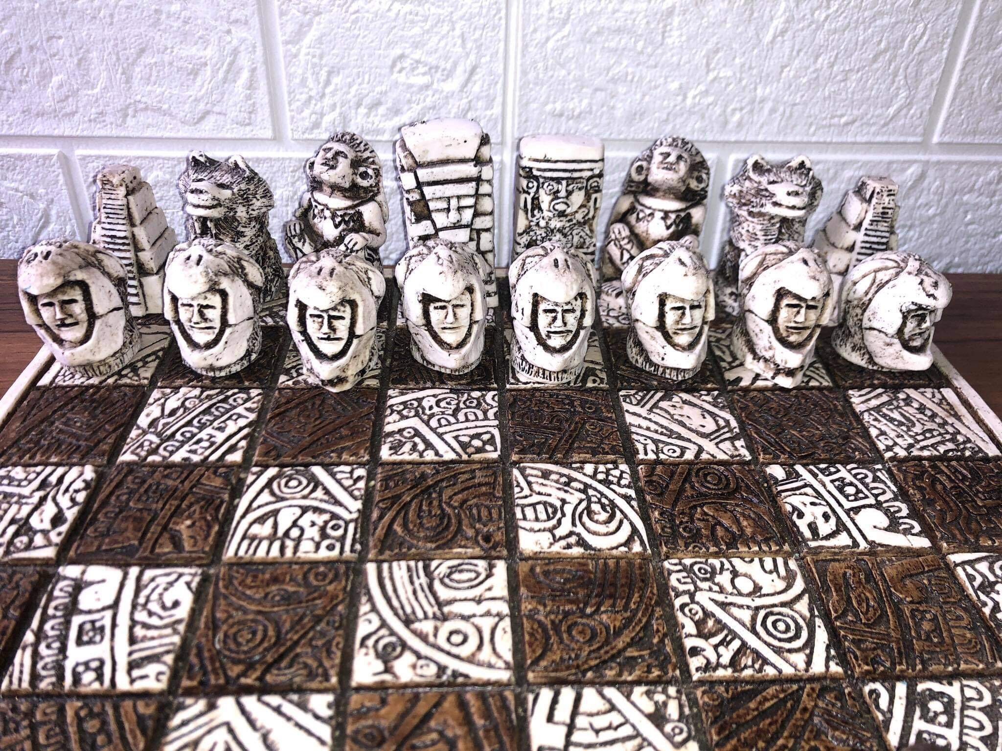 “ Mexican chess set, Resin chess set, Modern Chess Set, Chess Board, Chess Pieces, Chess Set handmade, Made by Mexican Artisans “