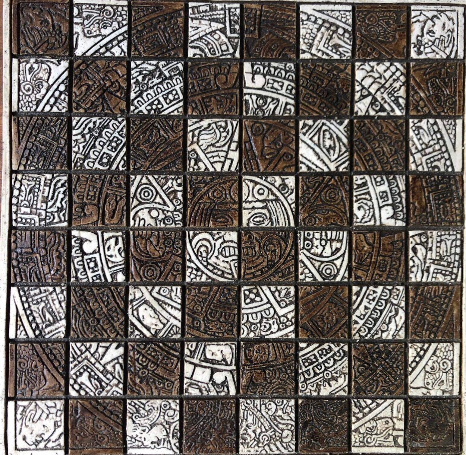 Characteristics: – Aztec chess set – Brown and white colors – Resin material – Board dimensions 12.59” x 12.59” – On the surface of the board there is an engraving of the Aztec calendar – The dimensions of the pieces are: * Horse 2.28” * Rook 2.04” * Bishops 2.28” * Pawns 1.88” * Queen 2.51” * King 2.59”