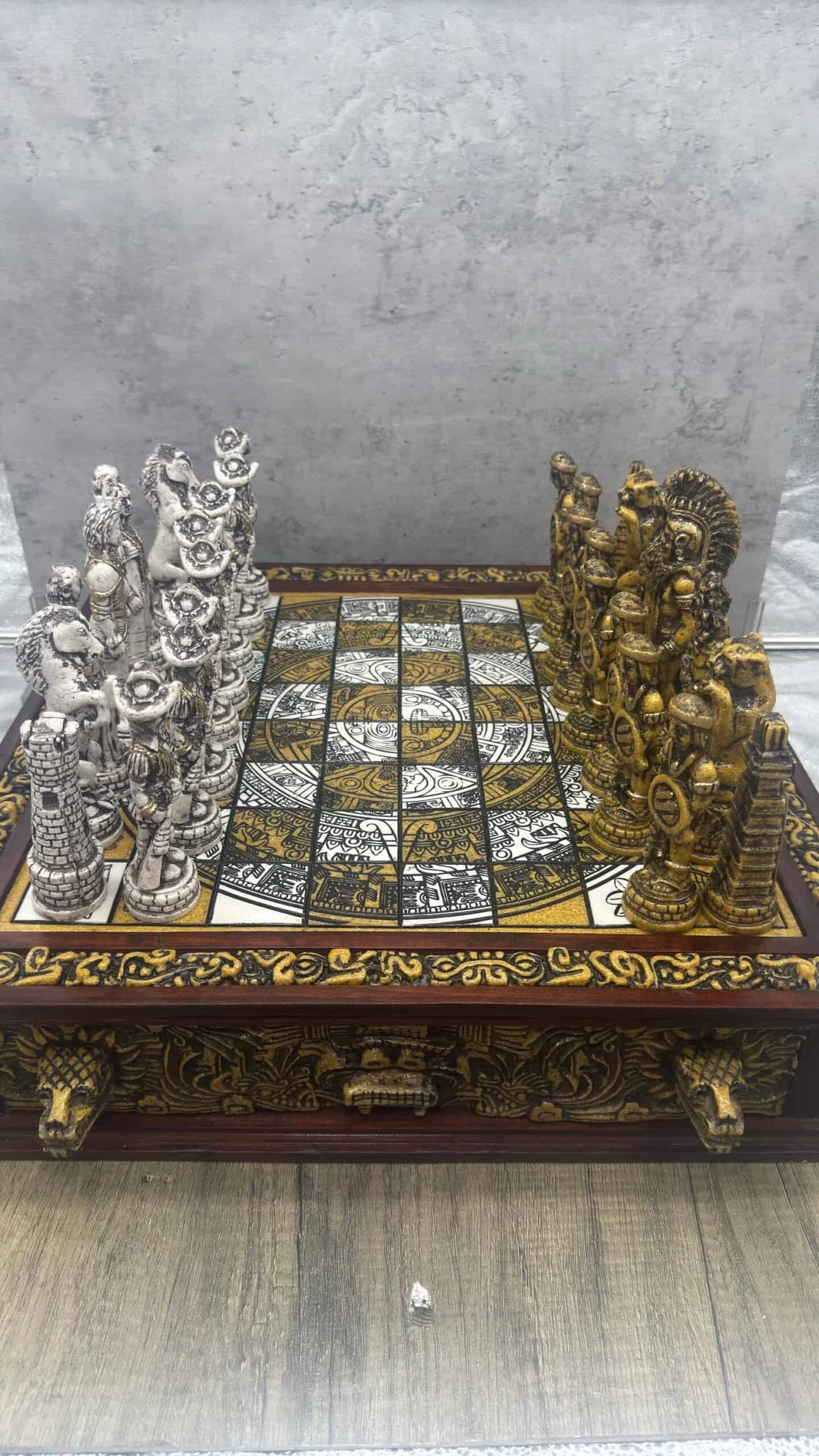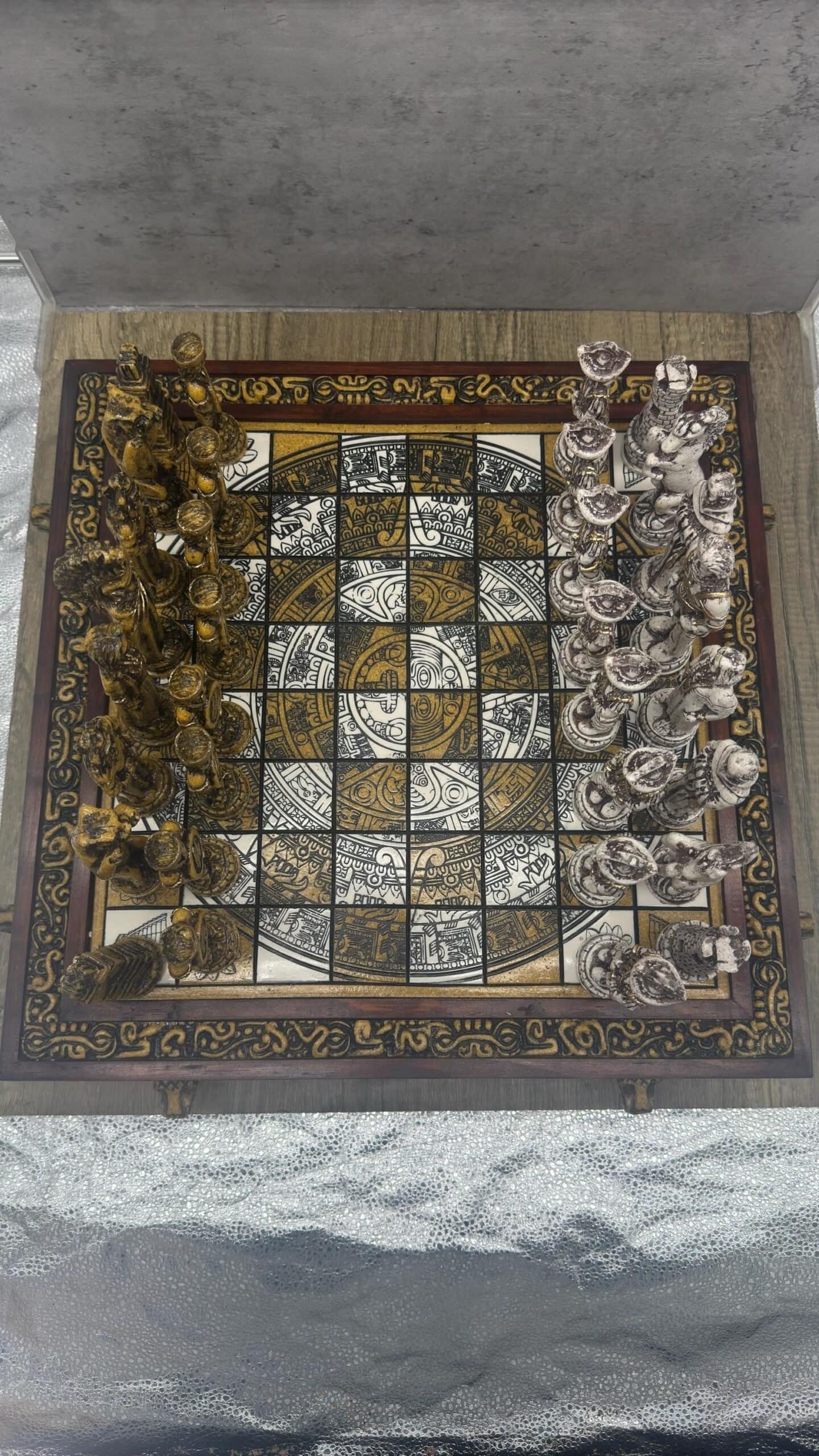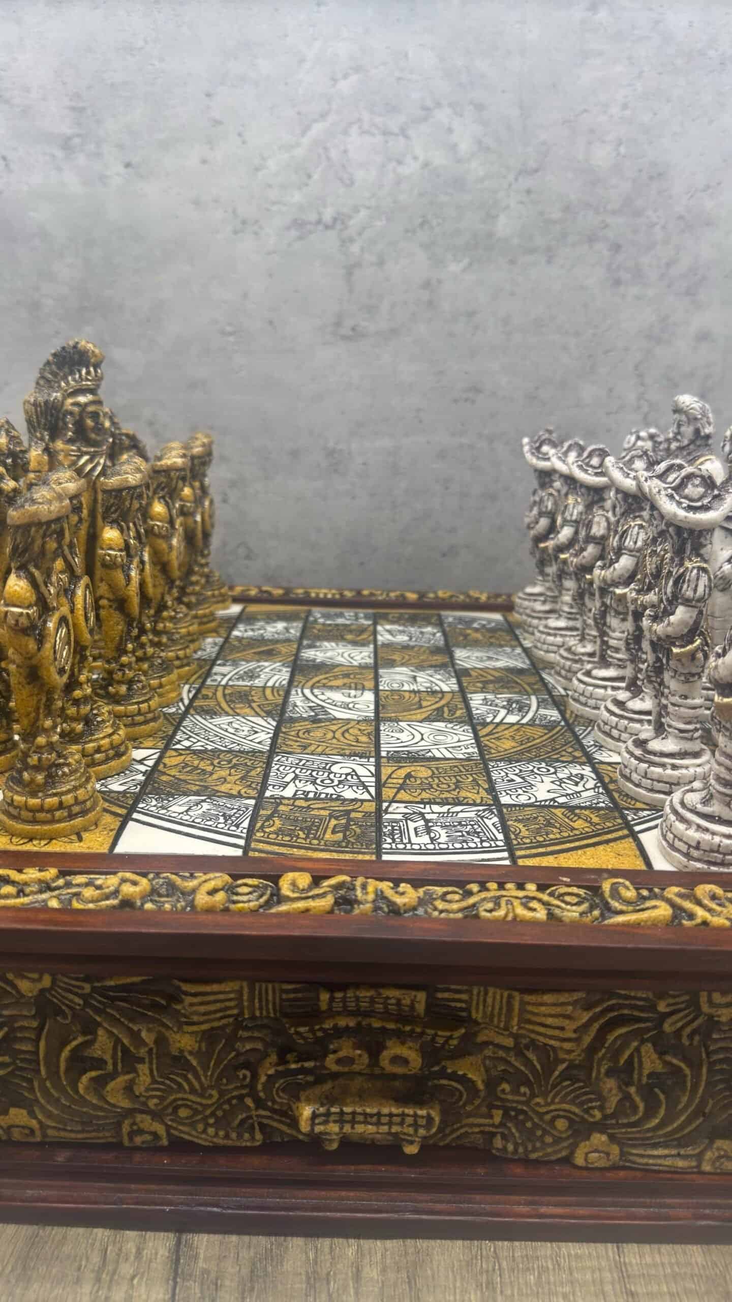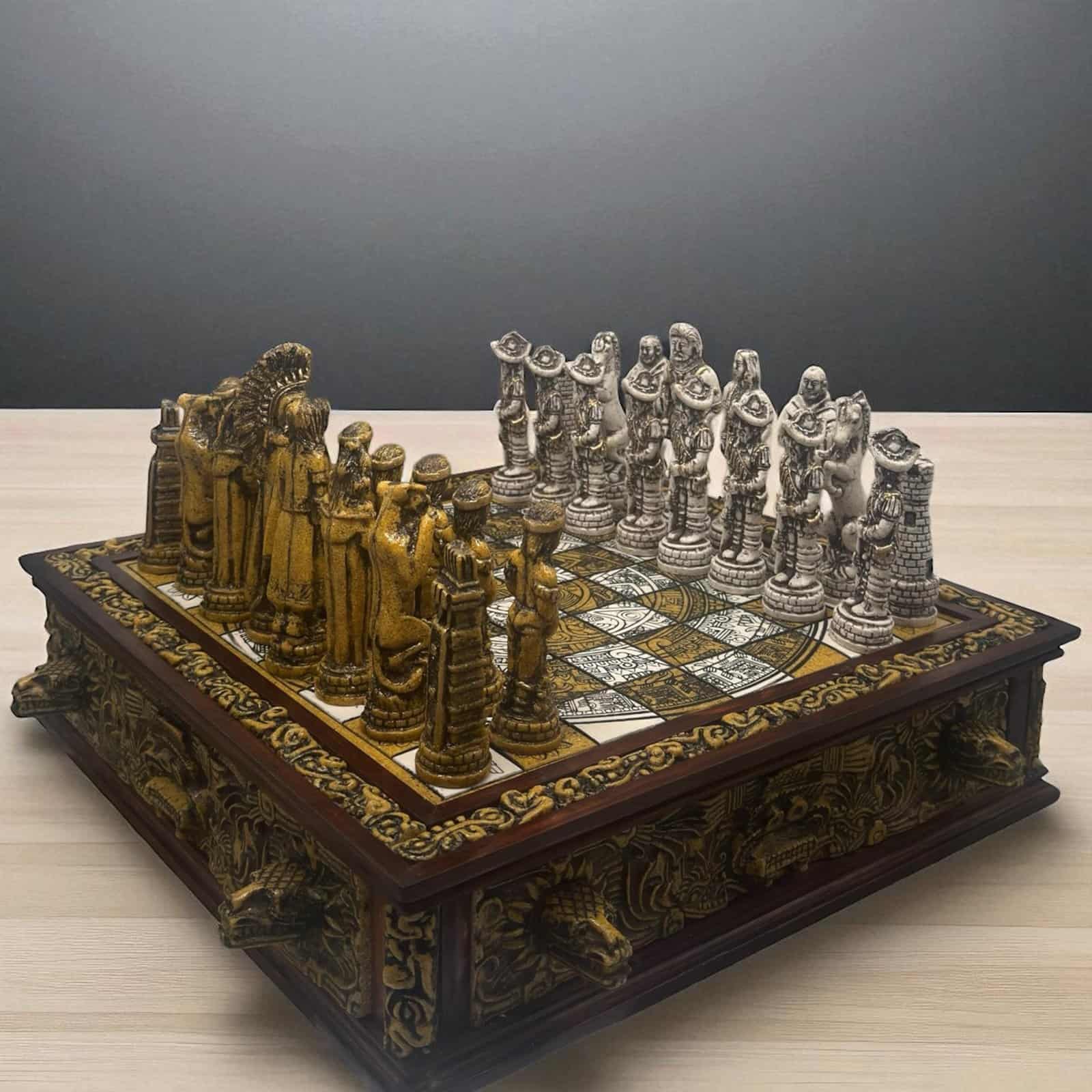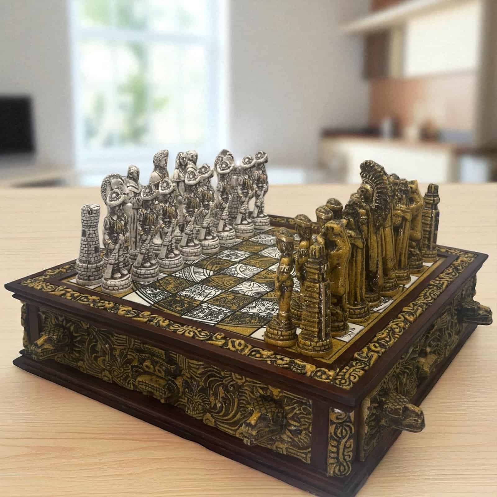 “ Aztecs vs spanish, Mexican chess set, Resin chess set, Wooden chess set, Chess Board, Chess Pieces, Chess Set handmade, Made by Mexican Artisans “
