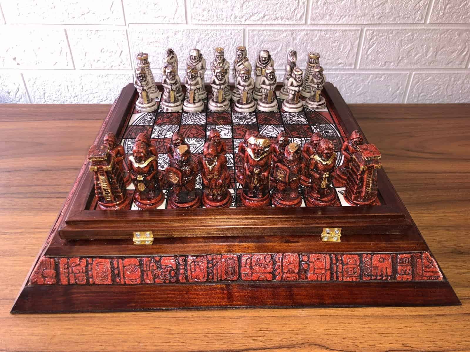 “ Aztecs vs spanish, Mexican chess set, Resin chess set, Wooden chess set, Chess Board, Chess Pieces, Chess Set handmade, Made by Mexican Artisans “