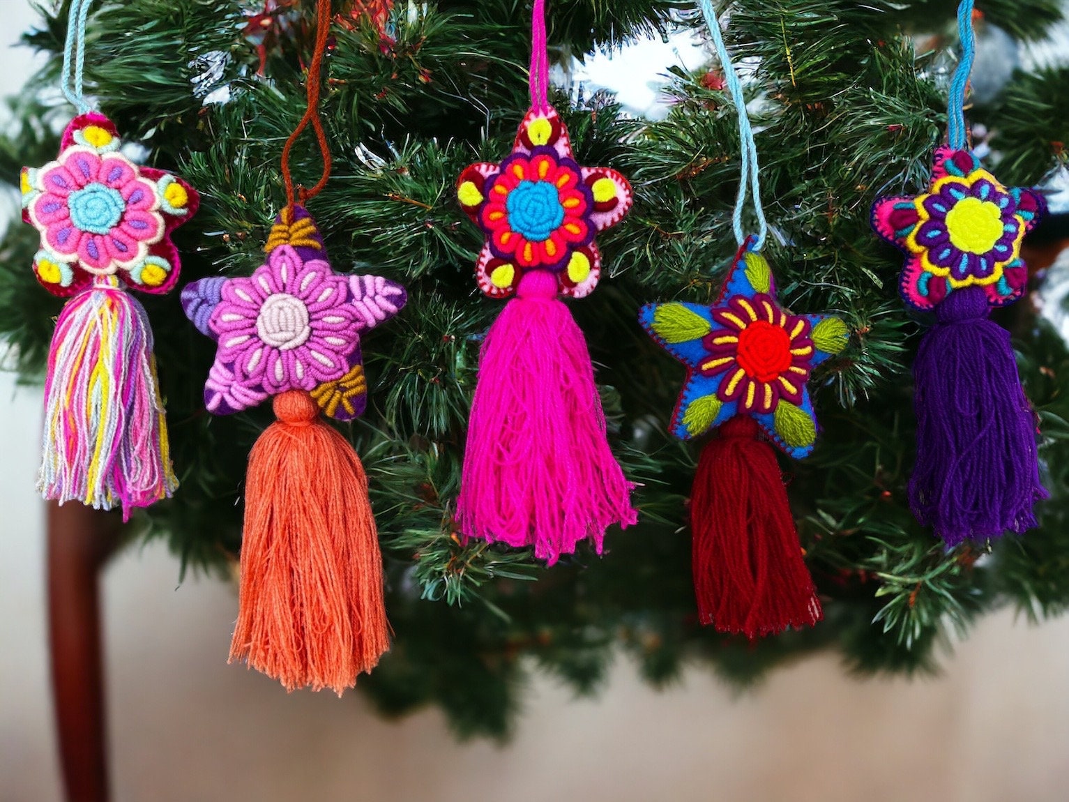 3 Beautiful Christmas ornaments of stars / Mexican ornaments , decorate your Christmas tree with these incredible artisan designs, they are made with the following materials: