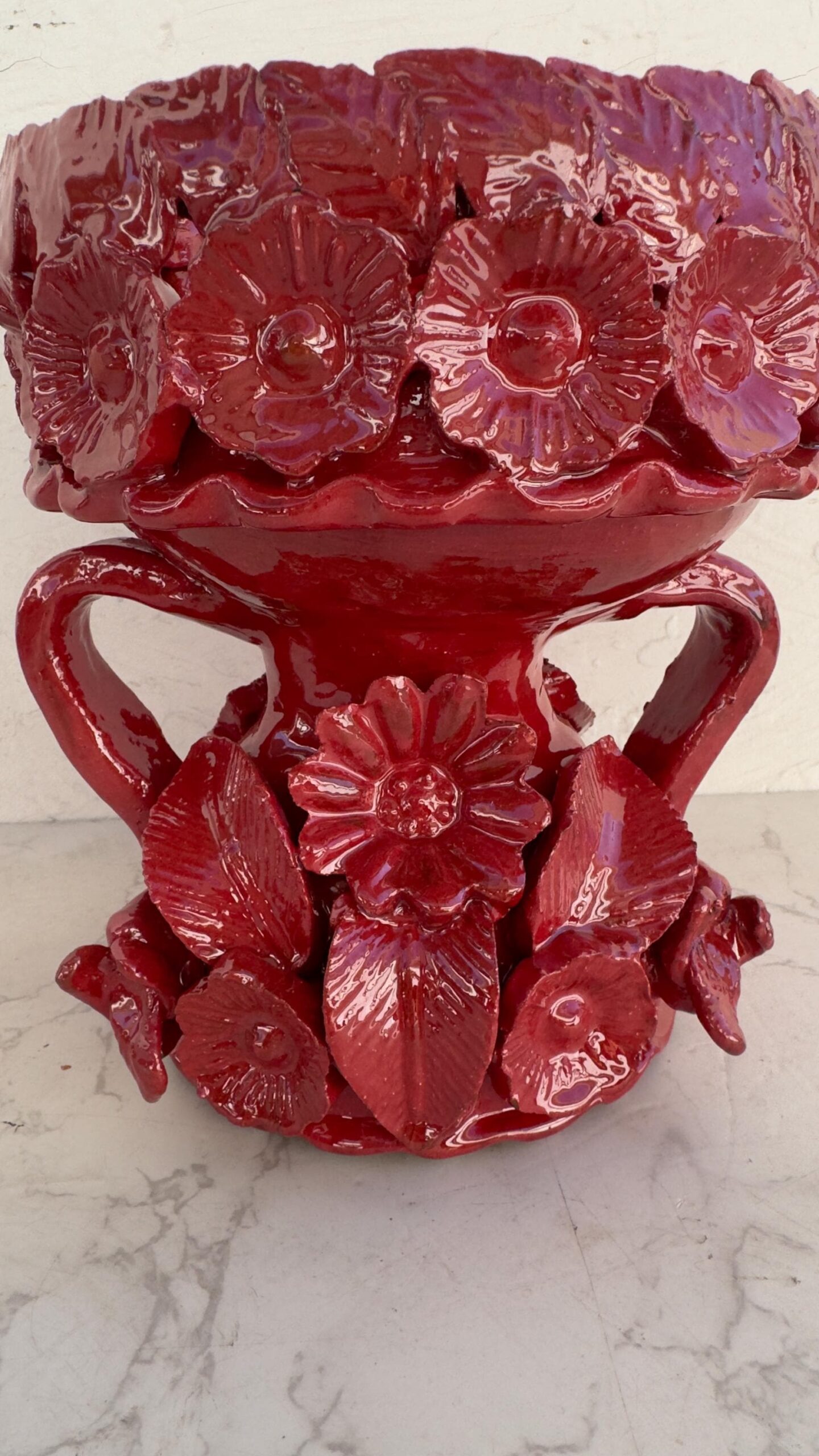 “Copalero Incense Burner” Material: Barro natural Origin: Michoacán México Size: 7” wide, 8” tall Discover the timeless beauty of Michoacán with this meticulously handcrafted glazed clay copal incense burner. Each piece is shaped and painted by local artisans, ensuring that no two are exactly alike. The rich, vibrant glaze not only enhances the intricate designs but also provides durability and a lustrous finish. Ideal for burning copal, this incense burner adds an element of tranquility and sacredness to any space. Its traditional craftsmanship reflects centuries of cultural heritage, making it not just a functional item but a piece of art. Whether used in spiritual rituals, as part of your meditation practice, or simply as a unique addition to your home decor, this copal incense burner brings a touch of Mexican tradition into your life. Experience the aroma of authenticity with this stunning, earthy creation.