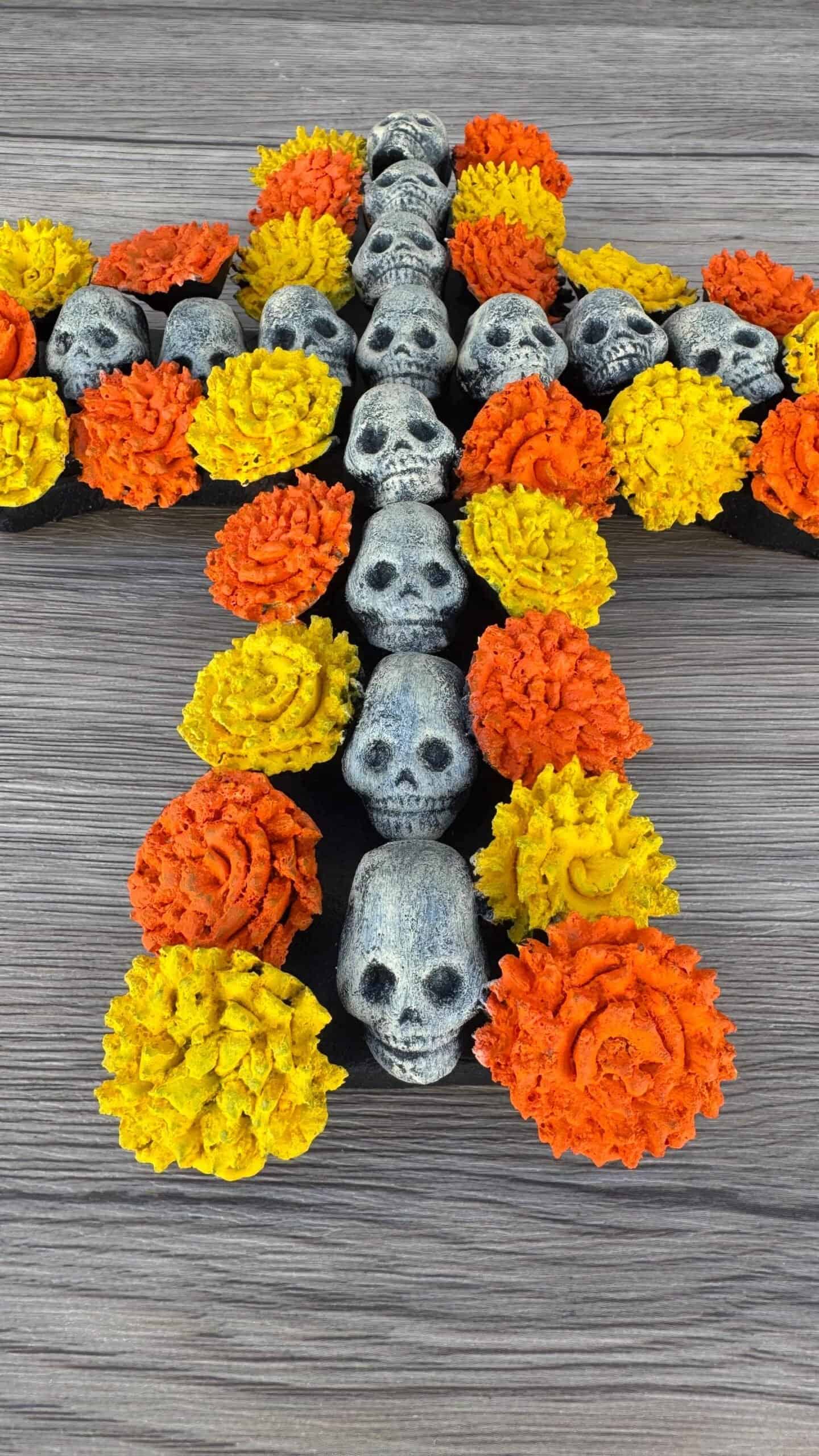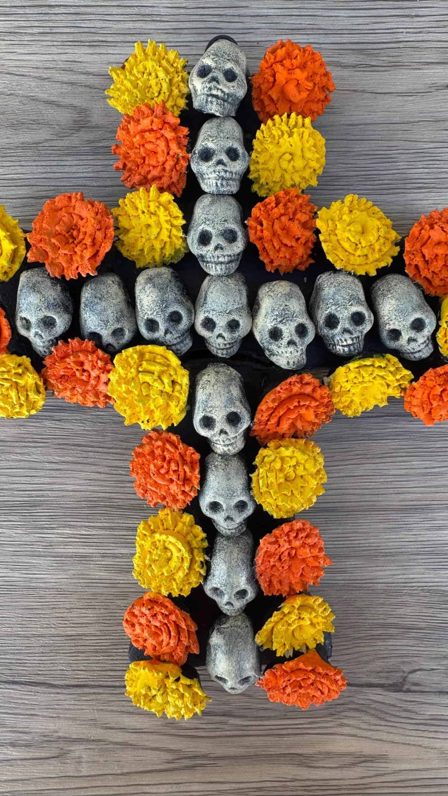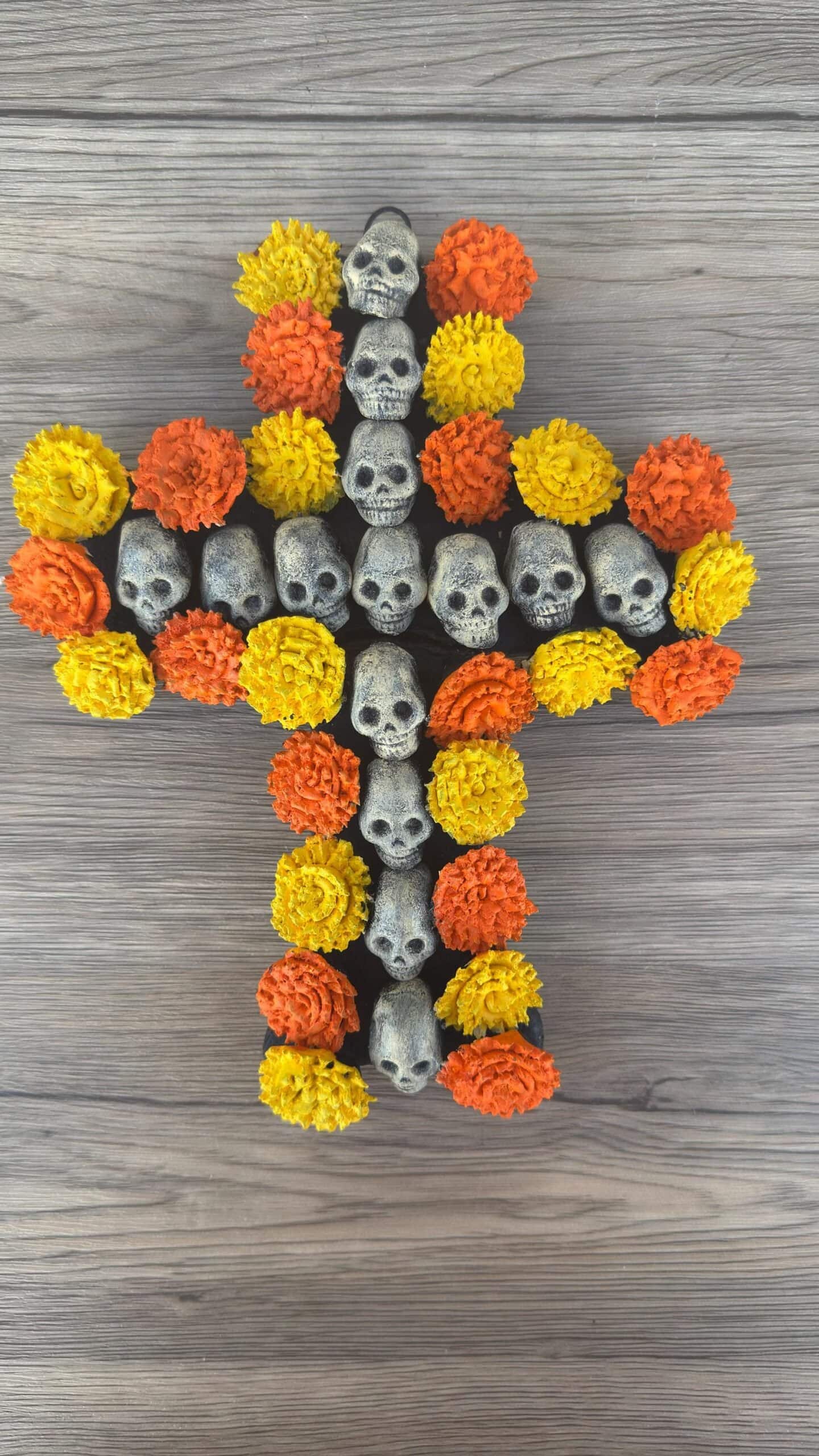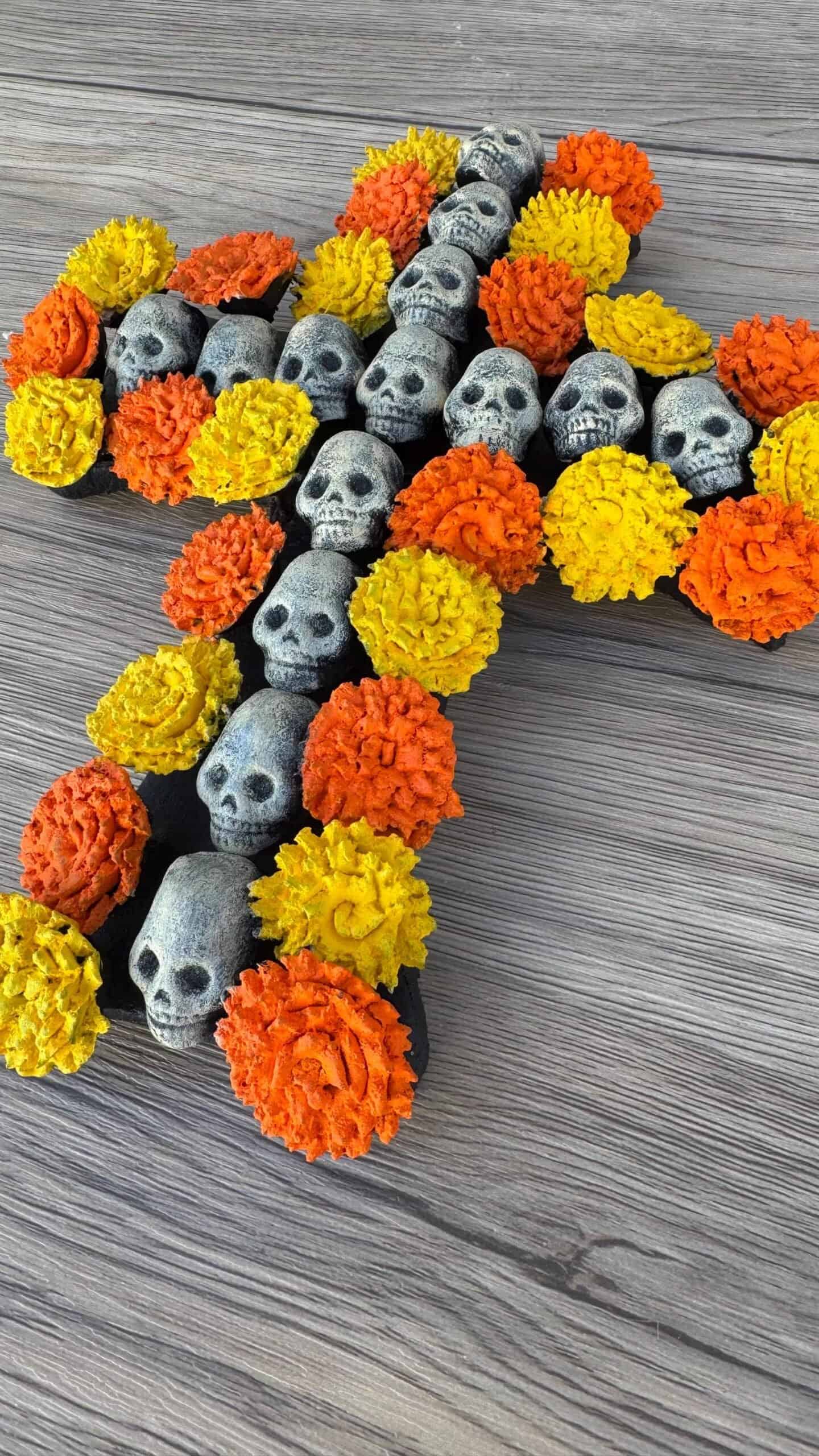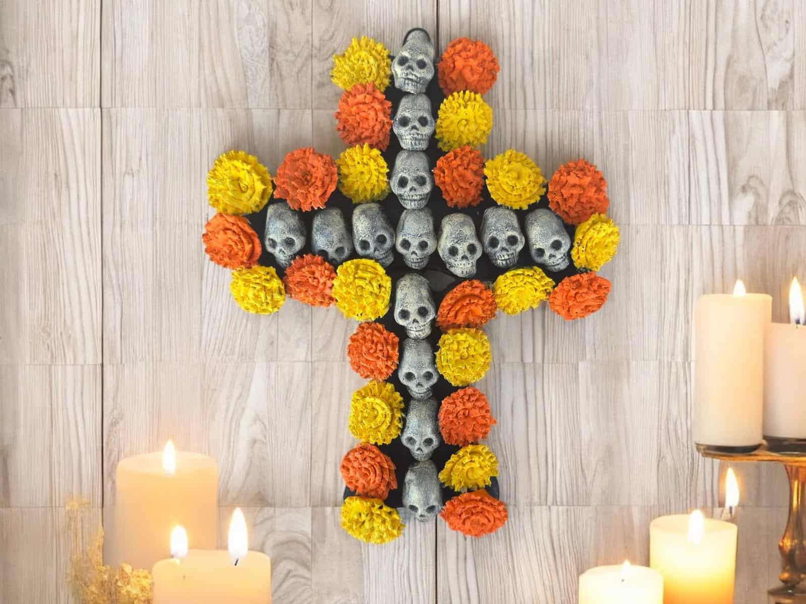 Handcrafted Skull and Marigold Cross – Day of the Dead Decor from Michoacán, Mexico