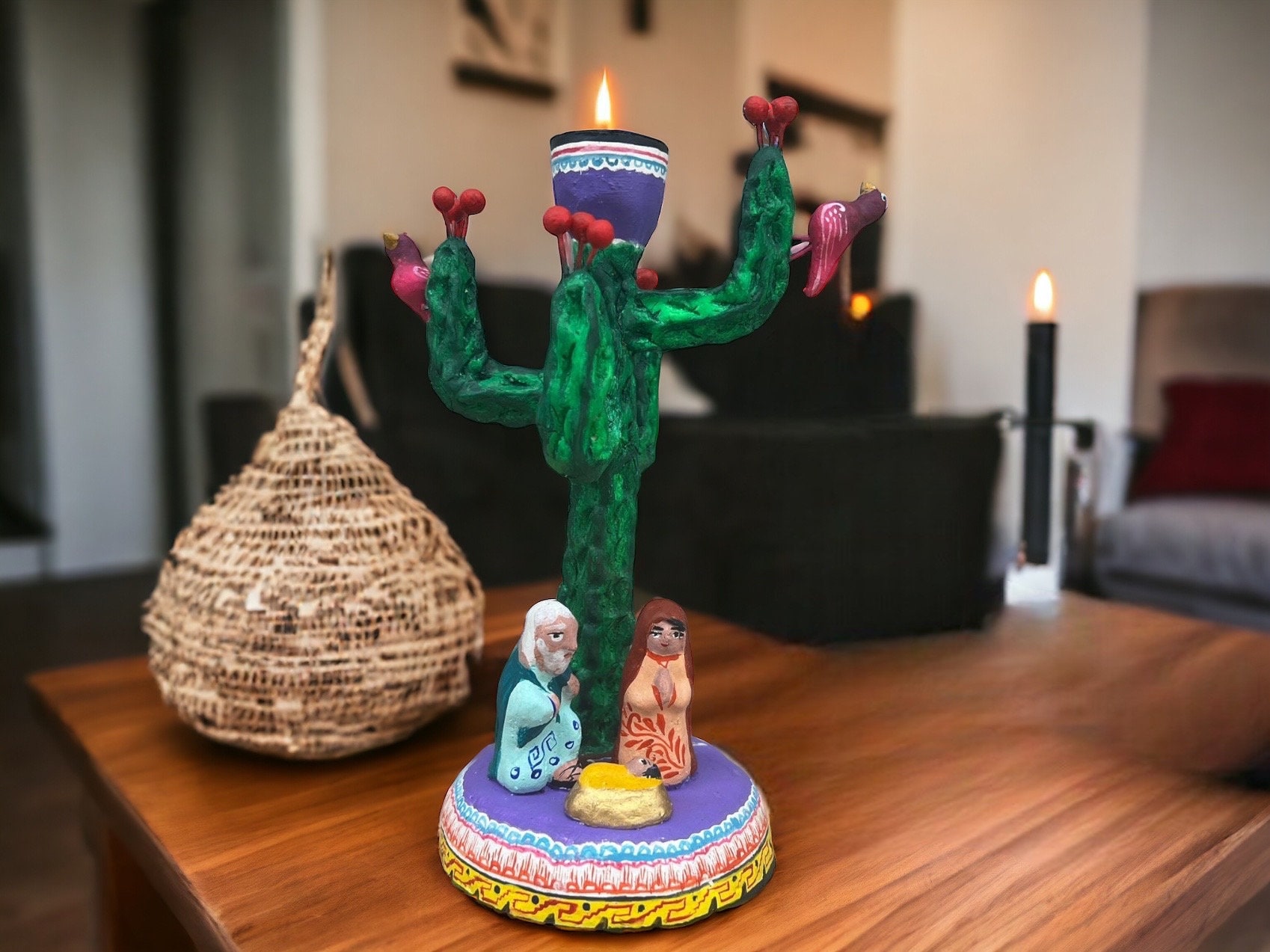 This particular collection features a variety of polychrome clay art, including our stunning cactus birth pieces, each embodying the spirit of resilience and beauty inherent to the Mexican landscape. The art of polychrome clay not only represents the aesthetic values of Mexico but also tells the story of a people deeply connected to their land and traditions. By incorporating one of our pieces into your space, you invite a piece of Mexican heritage and the skill of its artisans into your home.