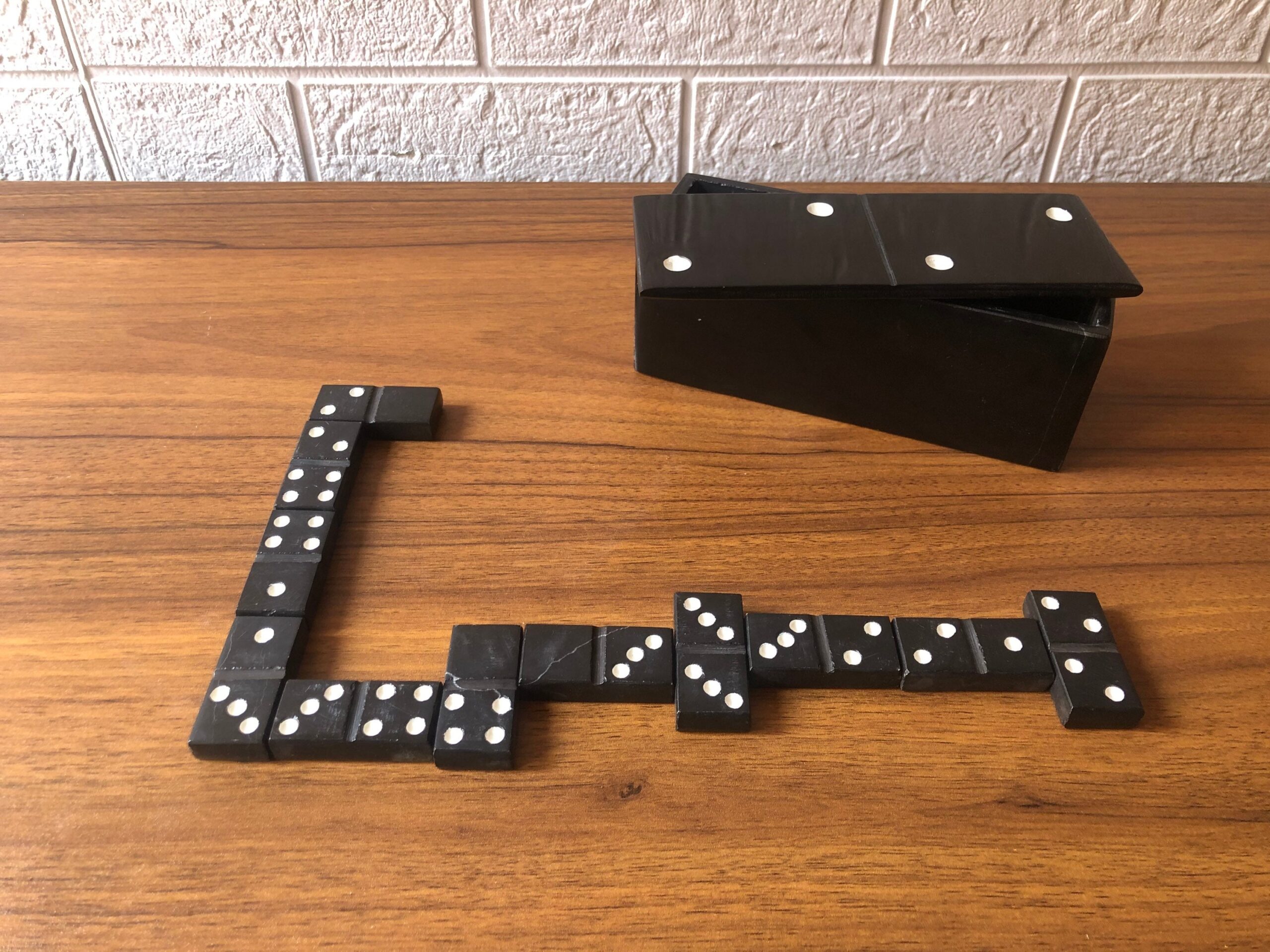 Description: – Marble stone domino game – Available in grey, white, brown, pink and black and more… – 6.69” long box
