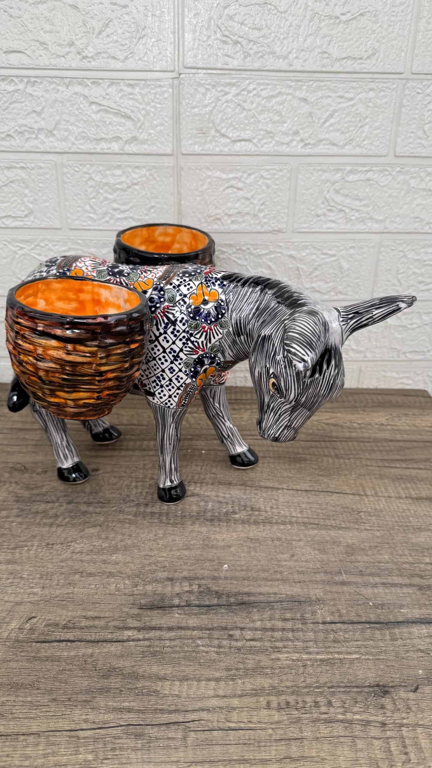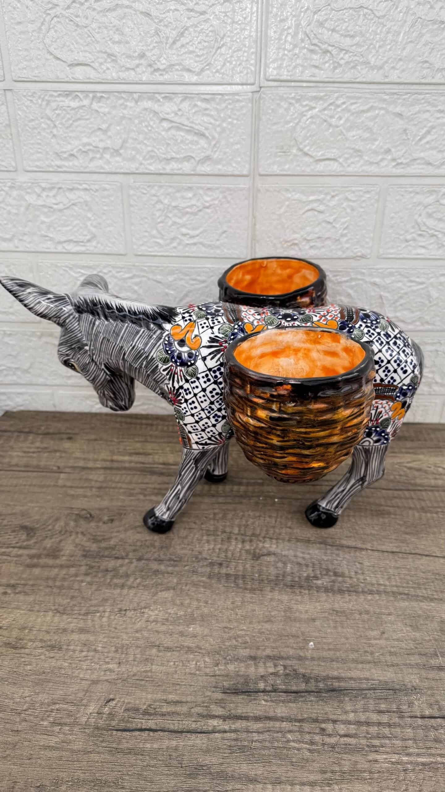 Donkey Pot Planter (2) Talavera Figurine Ceramic Pottery Artisan Hand Painted Farmhouse Decor Vibrant Folk Art from Puebla Decor Burrito