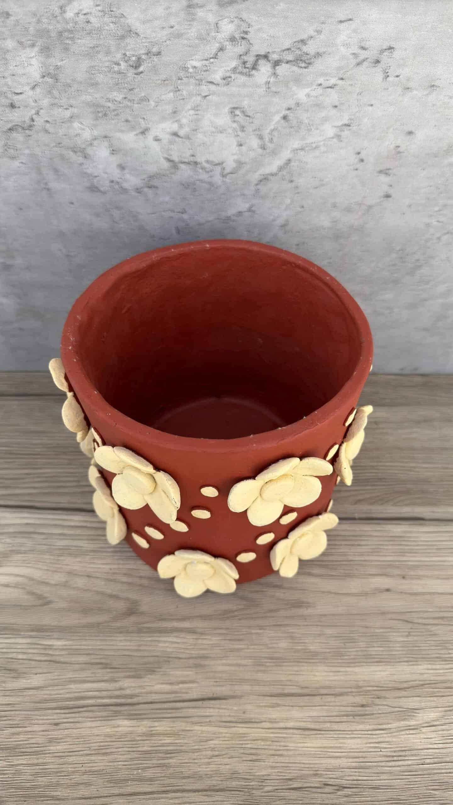 Embroidered Clay Planter Pot Oaxaca Filigrana Clay Terracotta Flower Pot with Raised Floral Design, Red Mexican Pottery Artisans Handmade