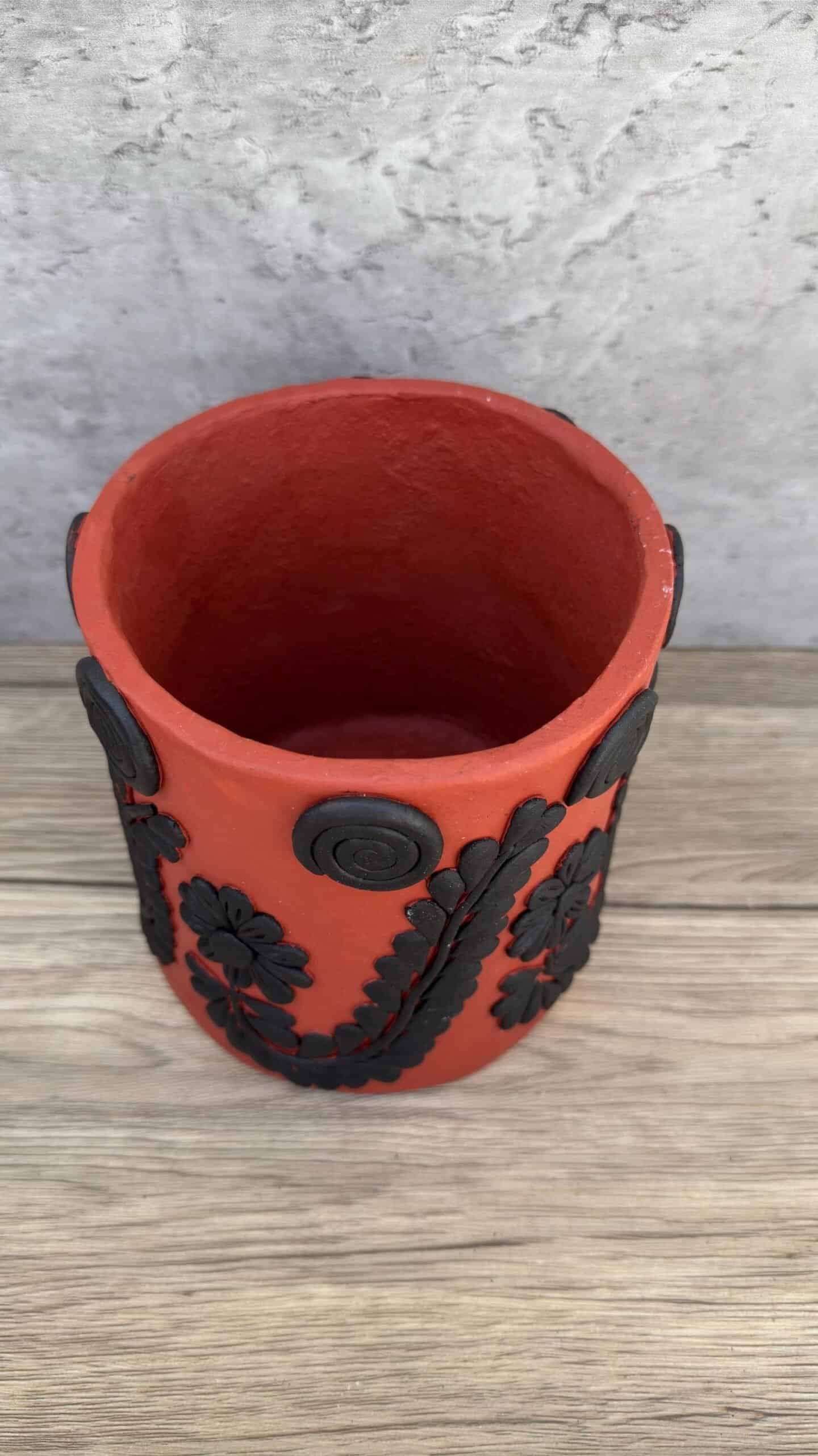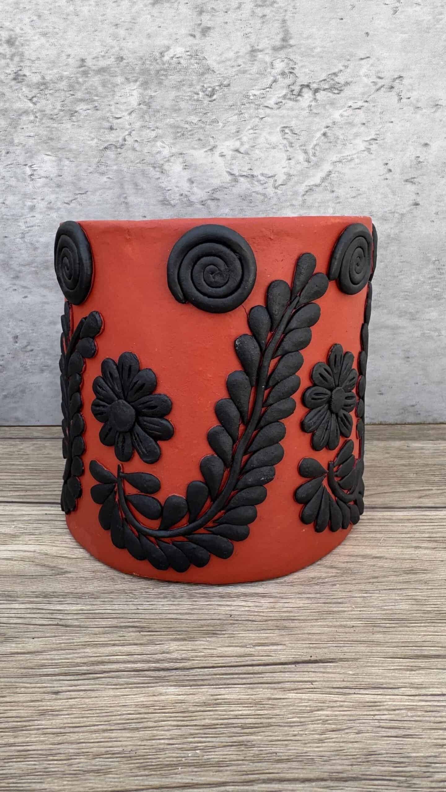 Embroidered Clay Planter Pot Oaxaca Filigrana Clay Terracotta Flower Pot with Raised Floral Design, Red Mexican Pottery Artisans Handmade