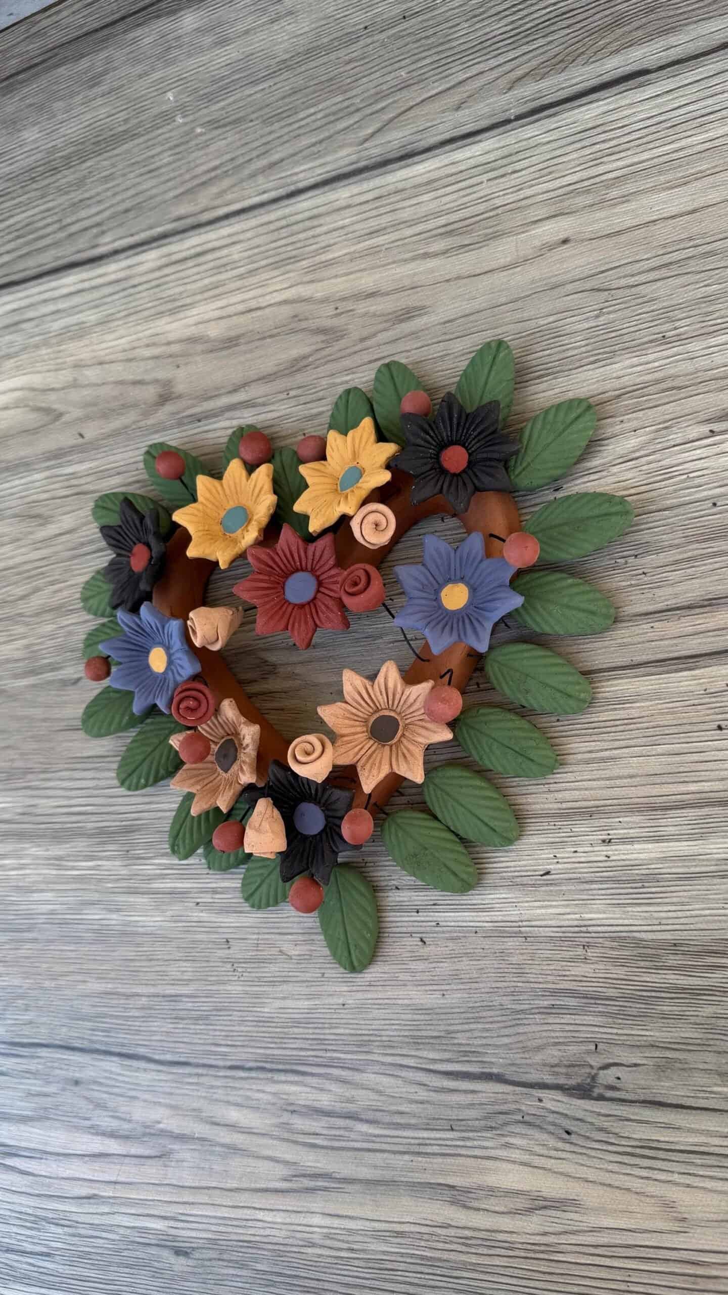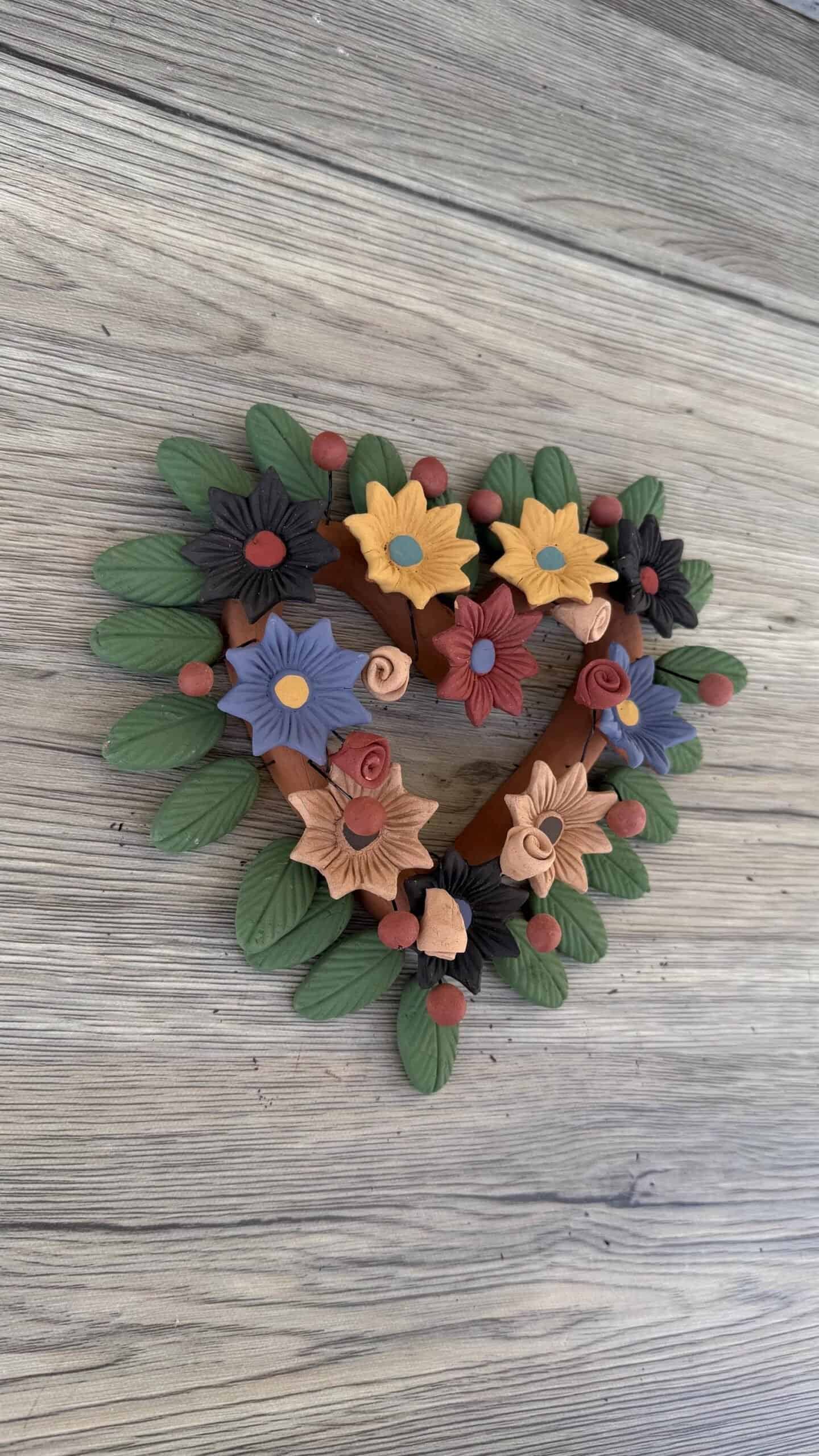 “Oaxaca Hanging Heart” Description: Natural and red Clay Handmade Unique Designs Dimensions: 8” wide, 8” tall