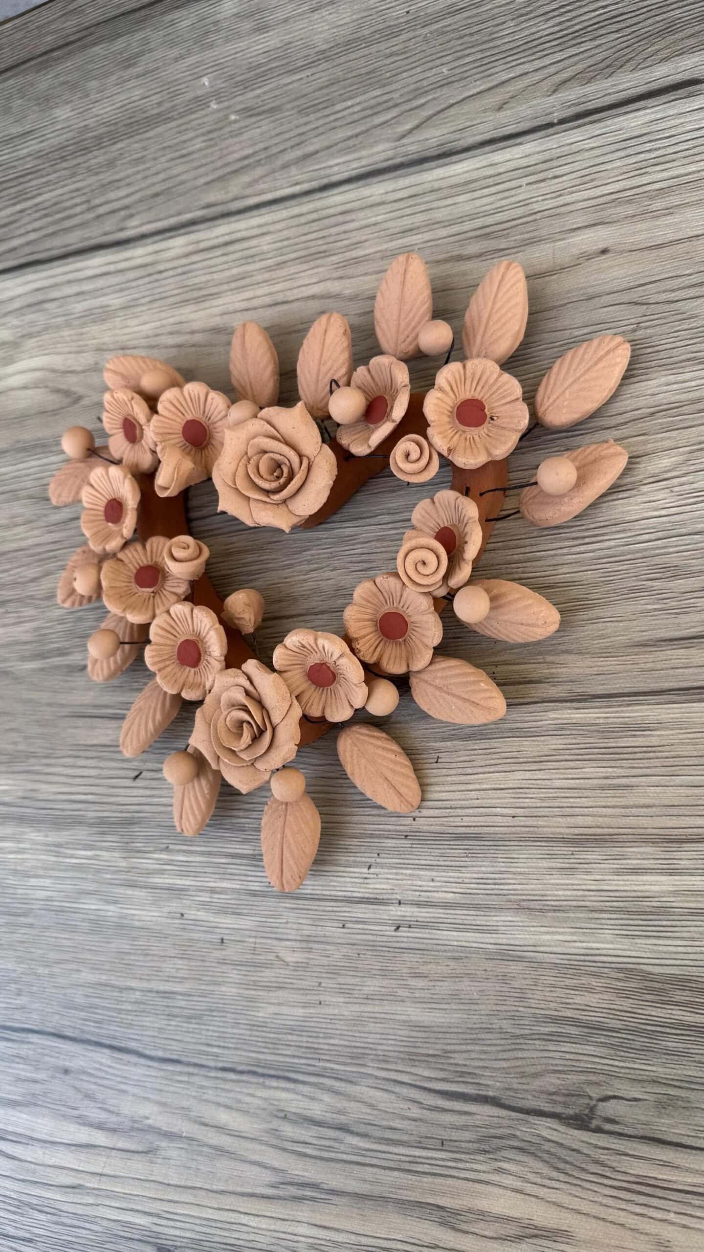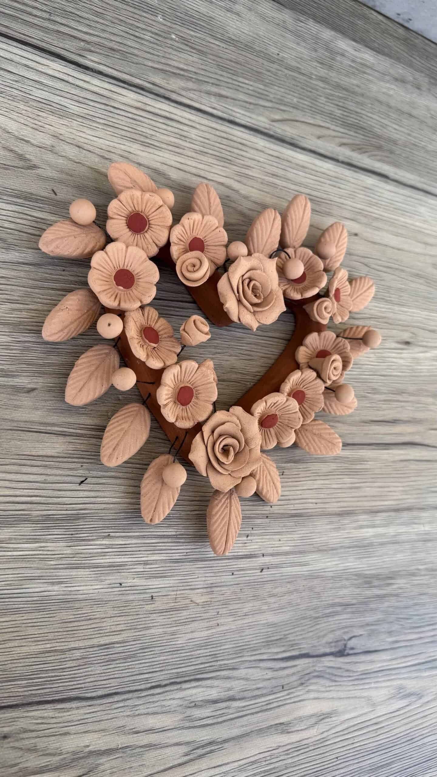 “Oaxaca Hanging Heart” Description: Natural and red Clay Handmade Unique Designs Dimensions: 8” wide, 8” tall