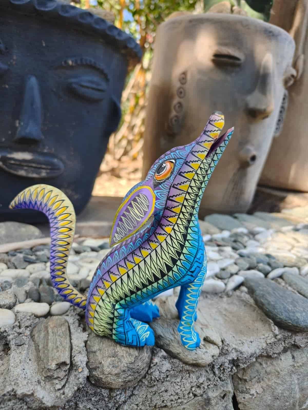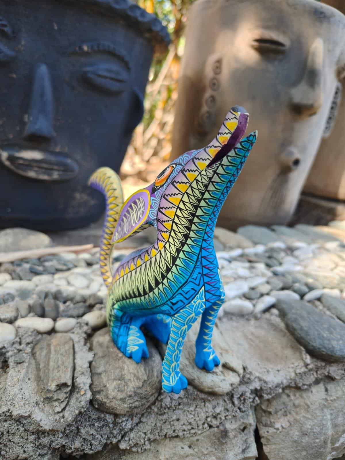 ASK FOR CUSTOMIZE “ Fox figurine – Alebrije – Carved in wood “ Item Description: * Made in Mexico * Made in Oaxaca by native indigenous people * Folk art Item details: * Made of copal wood * Carved and painted by hand * Dimensions: 7” Tall, 5” Long 1.5”wide * The tail is detachable The ALEBRIJE is a type of handicraft native to Mexico, also called Nahuatkzosquit. These are handicrafts made with the carpentry technique and carved in copal wood that are painted with mostly cheerful and vibrant colors. ALEBRIJES are imaginary beings composed of physiognomic elements of different animals, a combination of several animals, not only fantastic but also real that form an amazing being. Alebrijes represent the innovative spirit and creative soul of Oaxaca, Mexico, where the ancestral tradition was created. The pieces, unreal and magical, are the most captivating in the AZTECA country and valued for their originality and extravagance “This alebrije is ideal as a Mexican decoration” Place your order carefully, we will pack it ✅ Product in shipped in box ✅ Express shipping is available for an additional charge, please inquire ✅ You can send this with a special dedication✅ It can be sent with a special gift wrapping (notify) ✅ Any questions do not hesitate, we usually respond in less than an hour 😀.