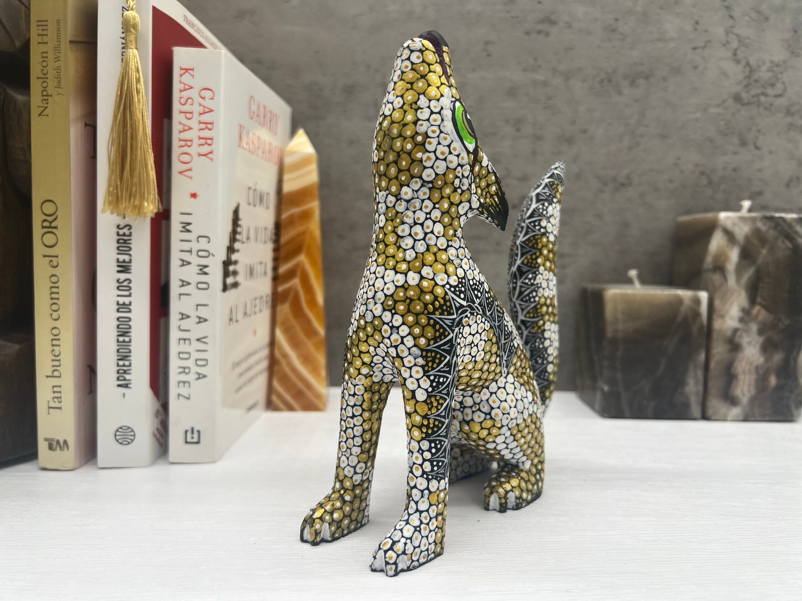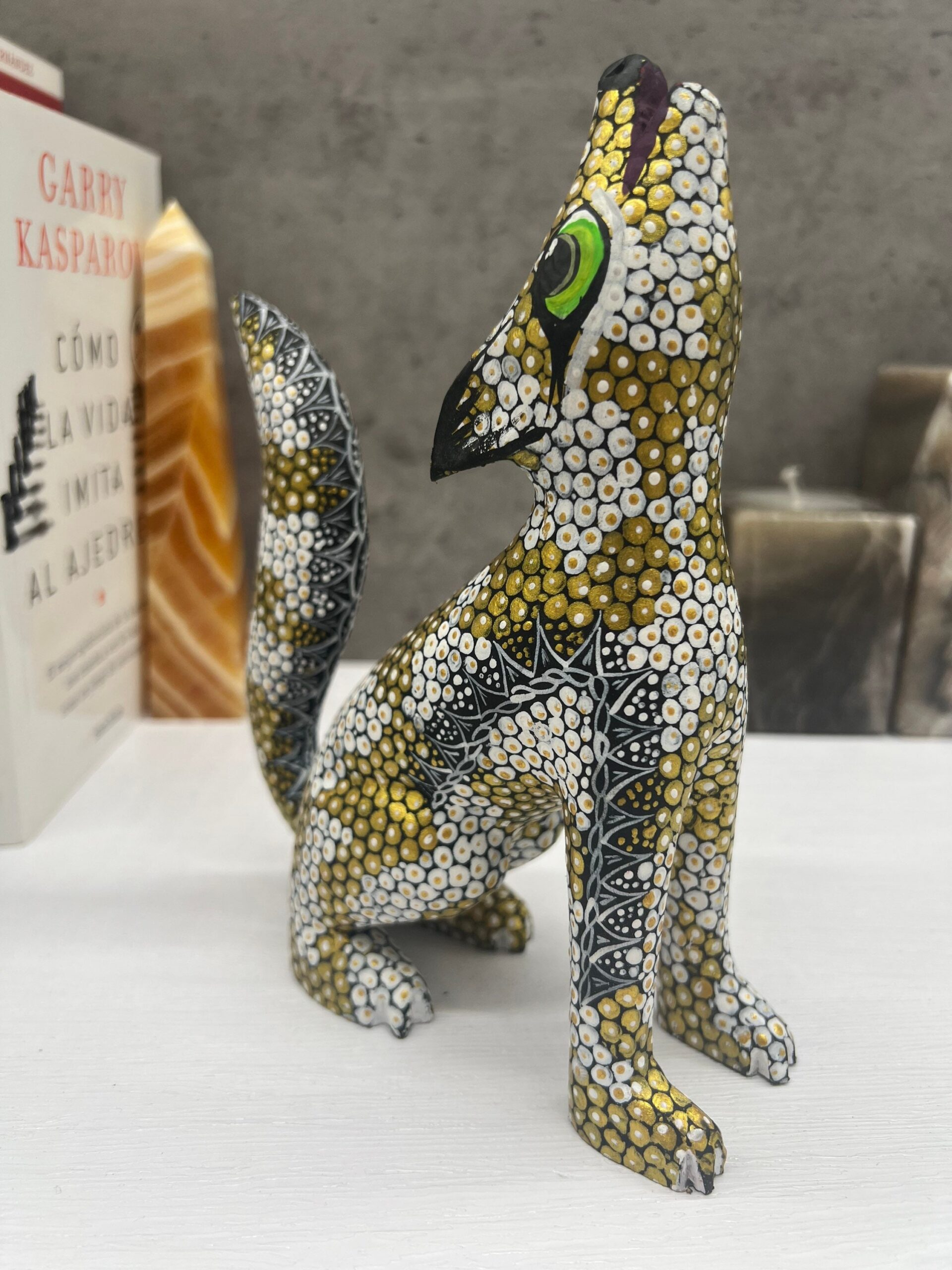 Fox Figurine Mexican Folk Art Alebrije Sculpture, Wooden Coyote Decoration Statue, Made Of Wood And Carved By Hand ASK FOR CUSTOMIZE