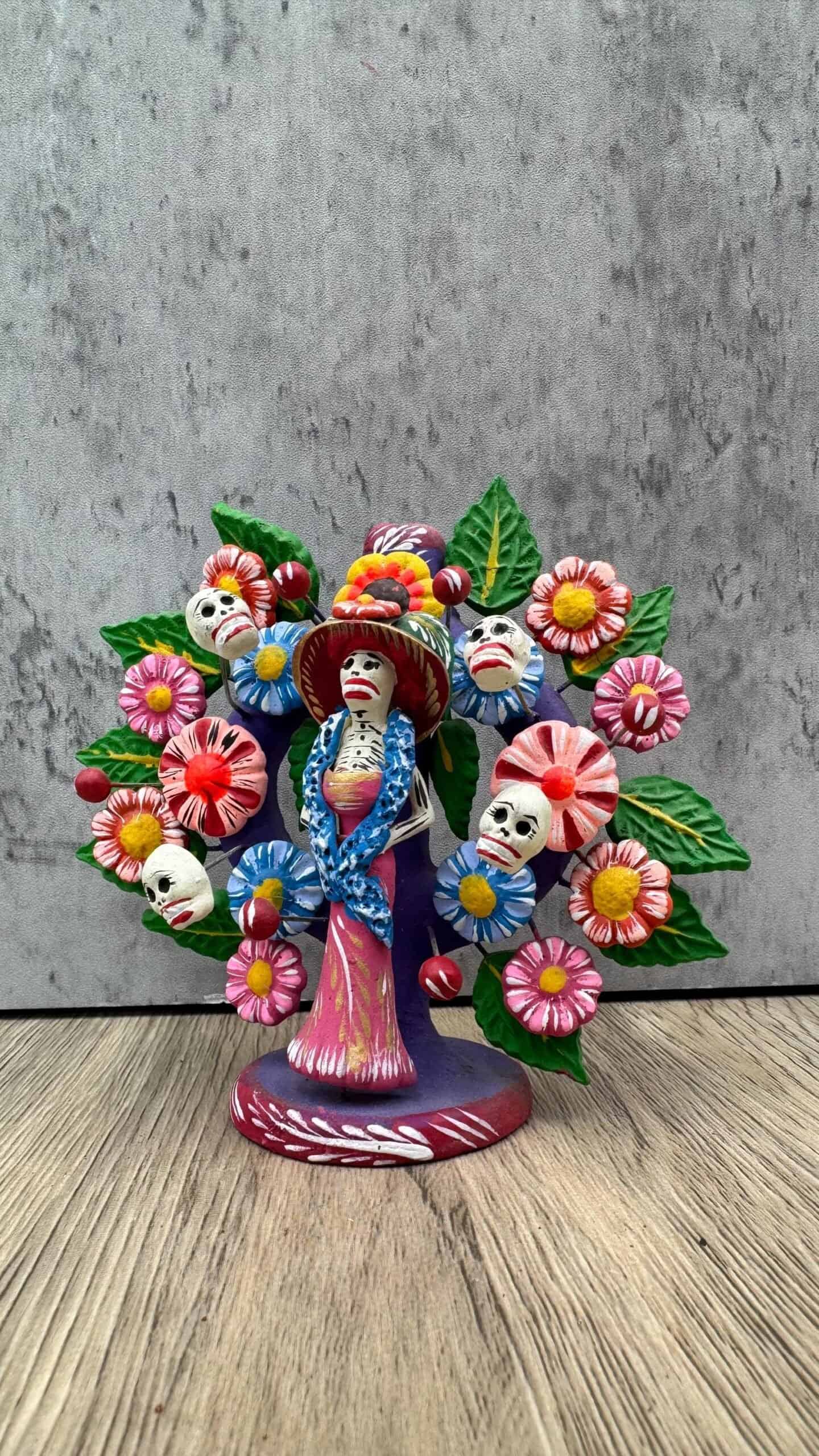 The Mexican tree of life is a traditional handcrafted sculpture that originated in Mexico during the colonial period. It is a sculptural representation of the Tree of Life from the Bible, and often features intricate details and colorful decorations.