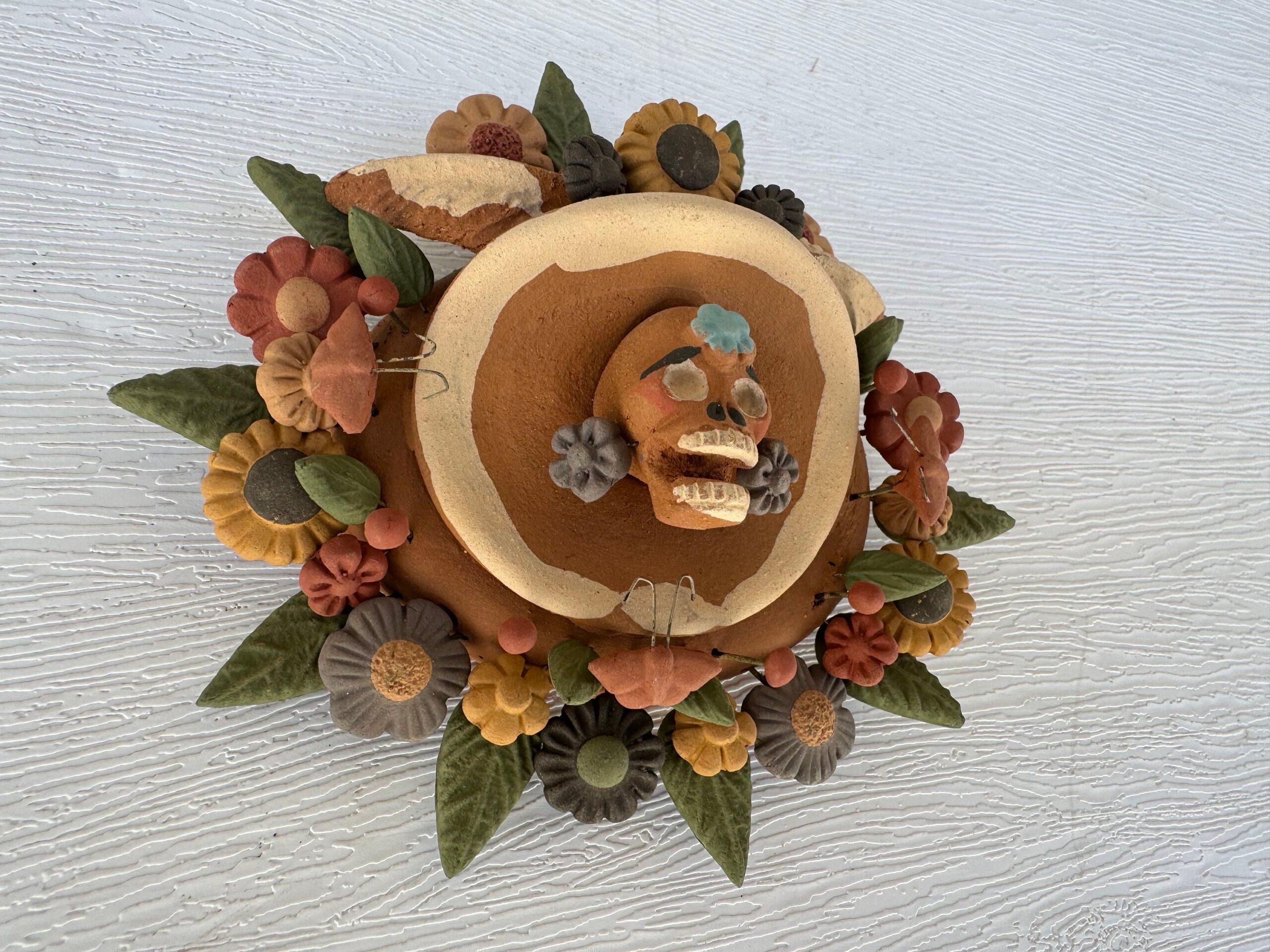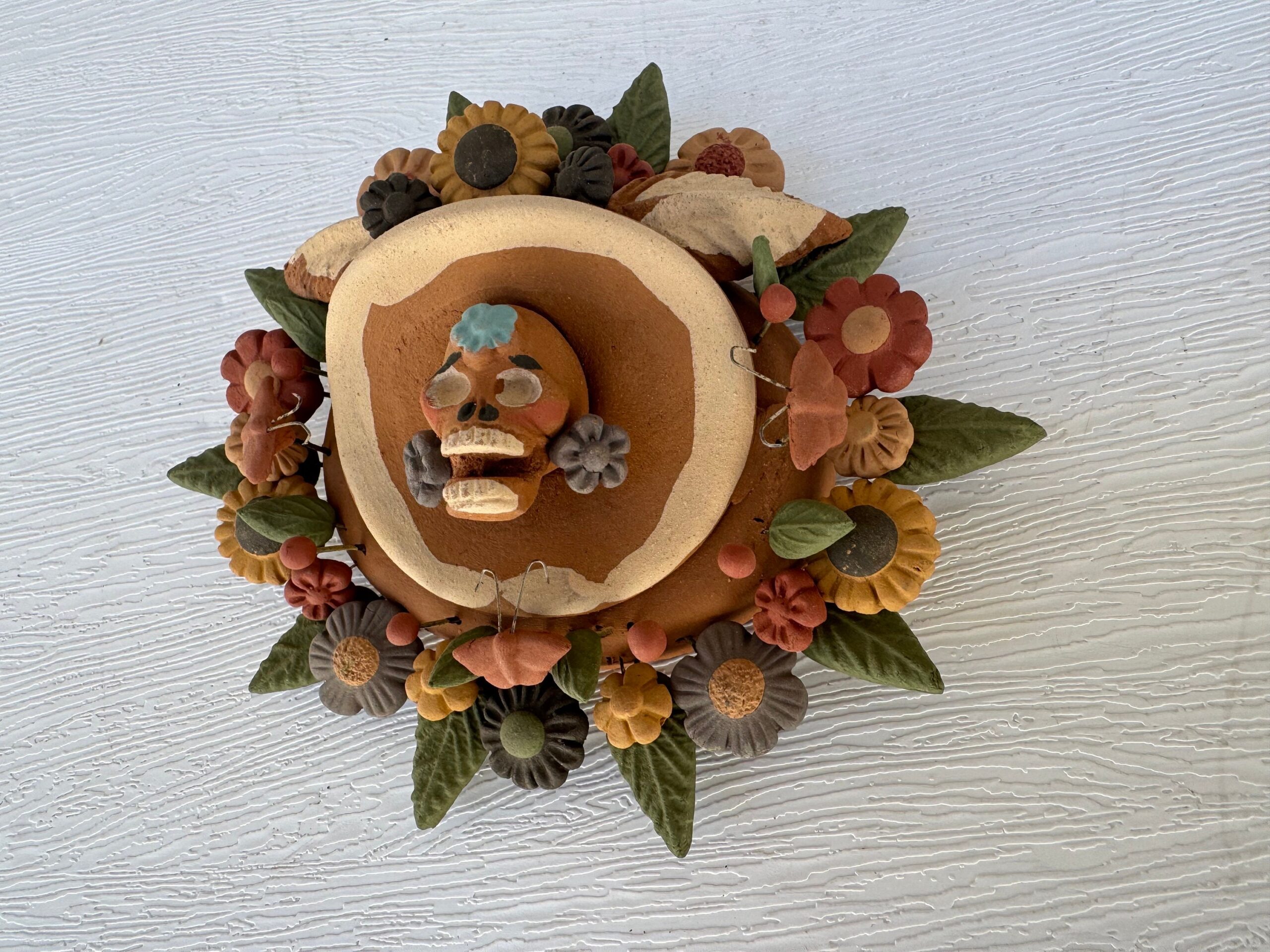 Material: natural clay pigmentado Dimentions: 3” high You can hang on the wall