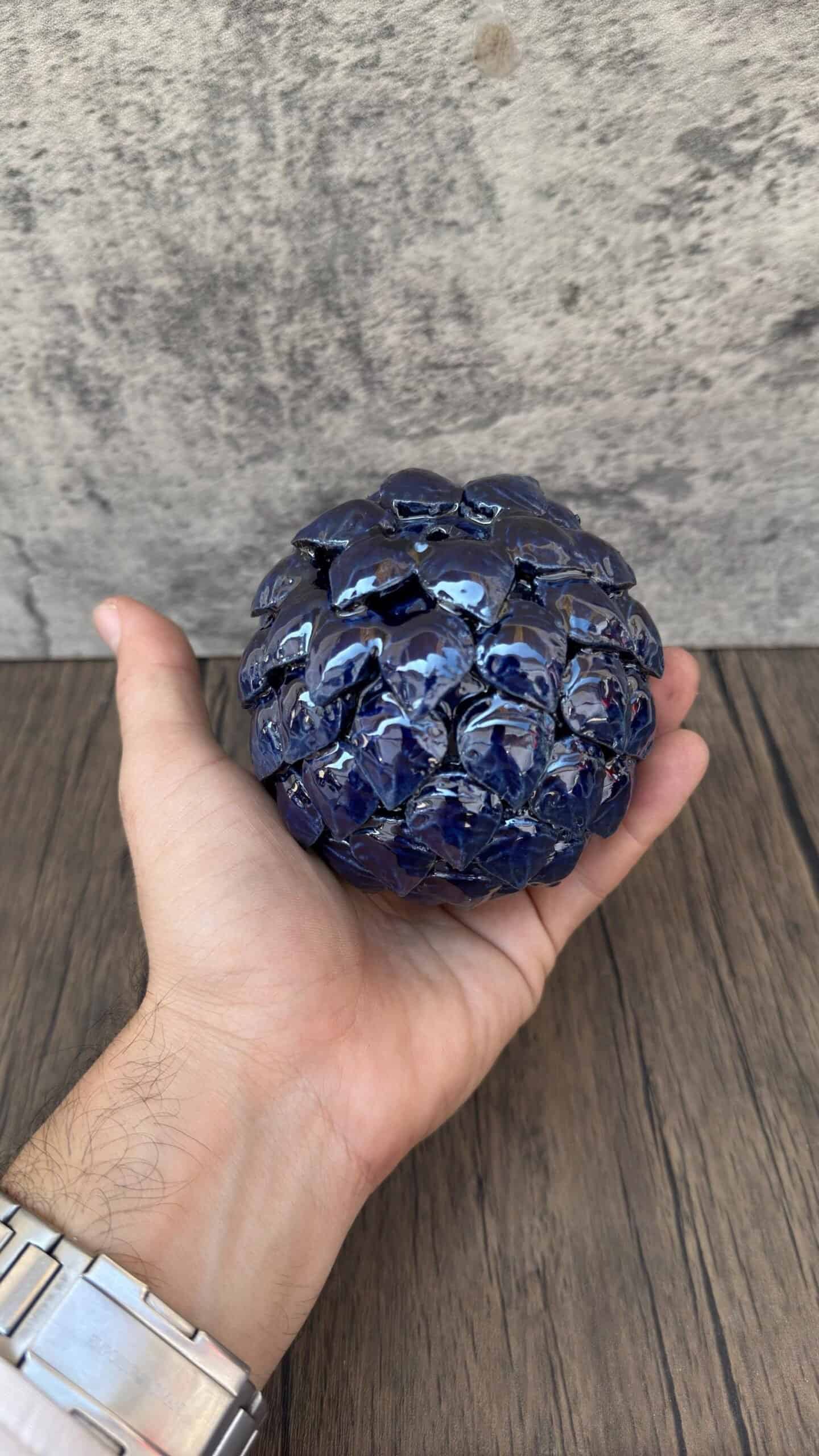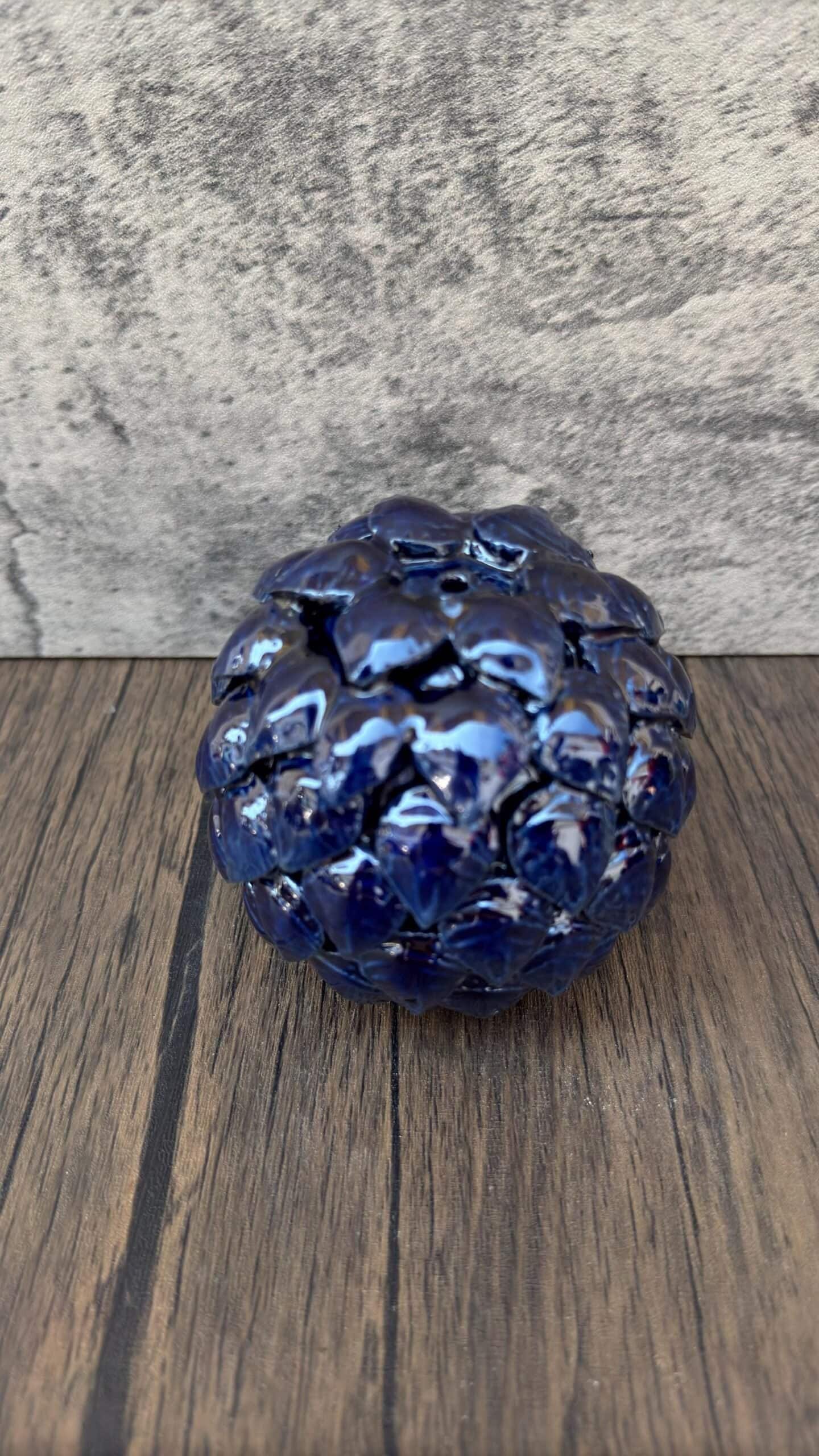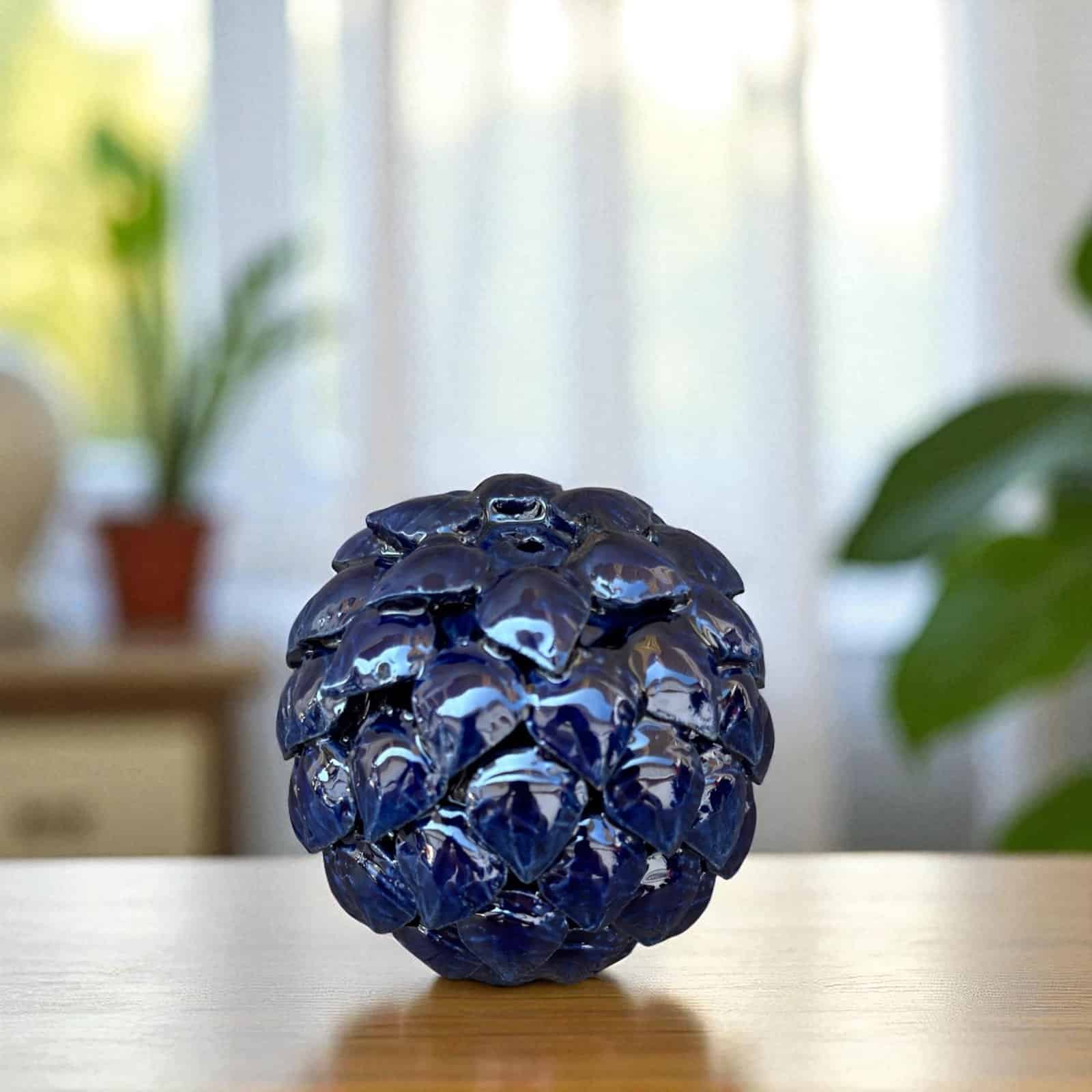 Bring the soothing aroma of incense into your space with this handcrafted ceramic incense holder, inspired by traditional Mexican pinecone designs. Carefully sculpted and glazed in a rich cobalt blue, this artisan piece is both functional and decorative. The small hole at the top is perfect for placing a cone incense, allowing the smoke to gently escape through the layers of textured leaves, creating a beautiful visual effect. Whether used during meditation, rituals, or simply to relax at home, this piece adds a touch of handmade folk art to your decor. Made by skilled Mexican artisans, each piece is unique with slight variations that highlight its authenticity. Place it on your altar, coffee table, or any space that needs a peaceful, grounding element. A beautiful gift for lovers of aromatherapy, cultural art, or mindful living.