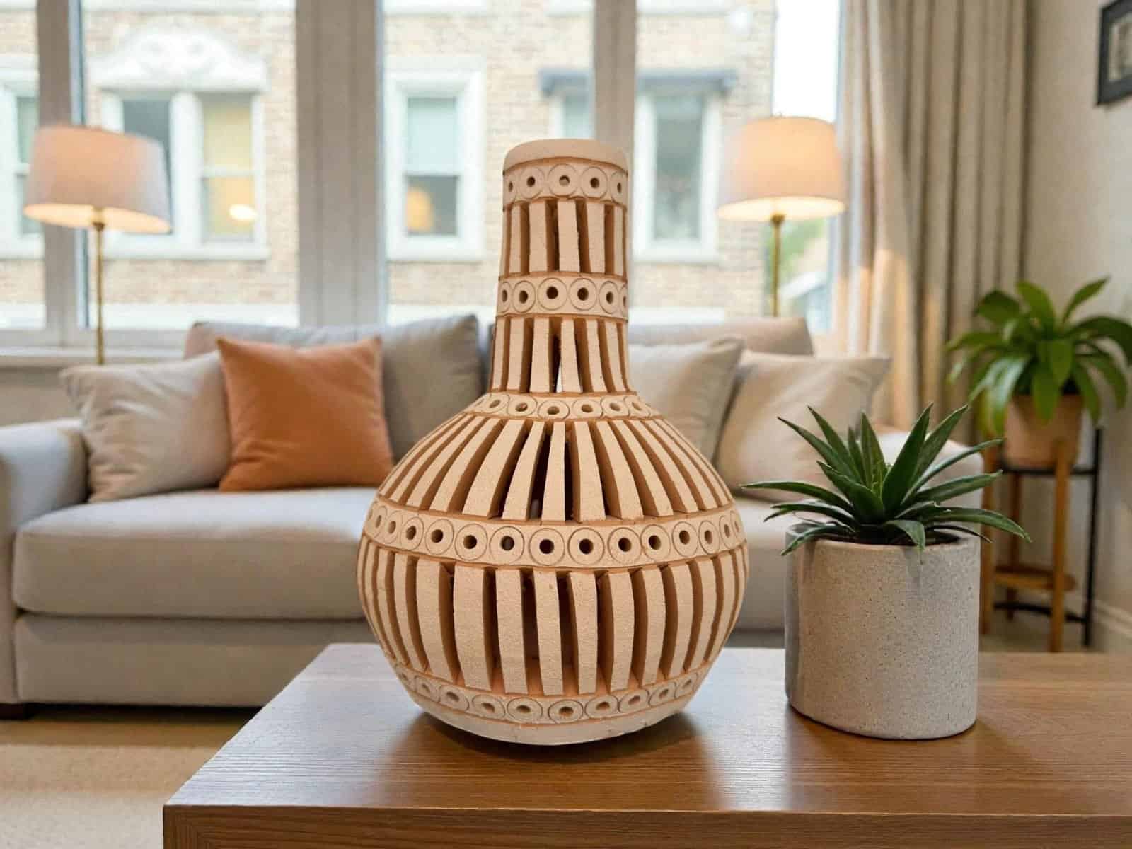 Perfect as a unique home decor accent or a thoughtful gift for pottery lovers and interior design enthusiasts.
