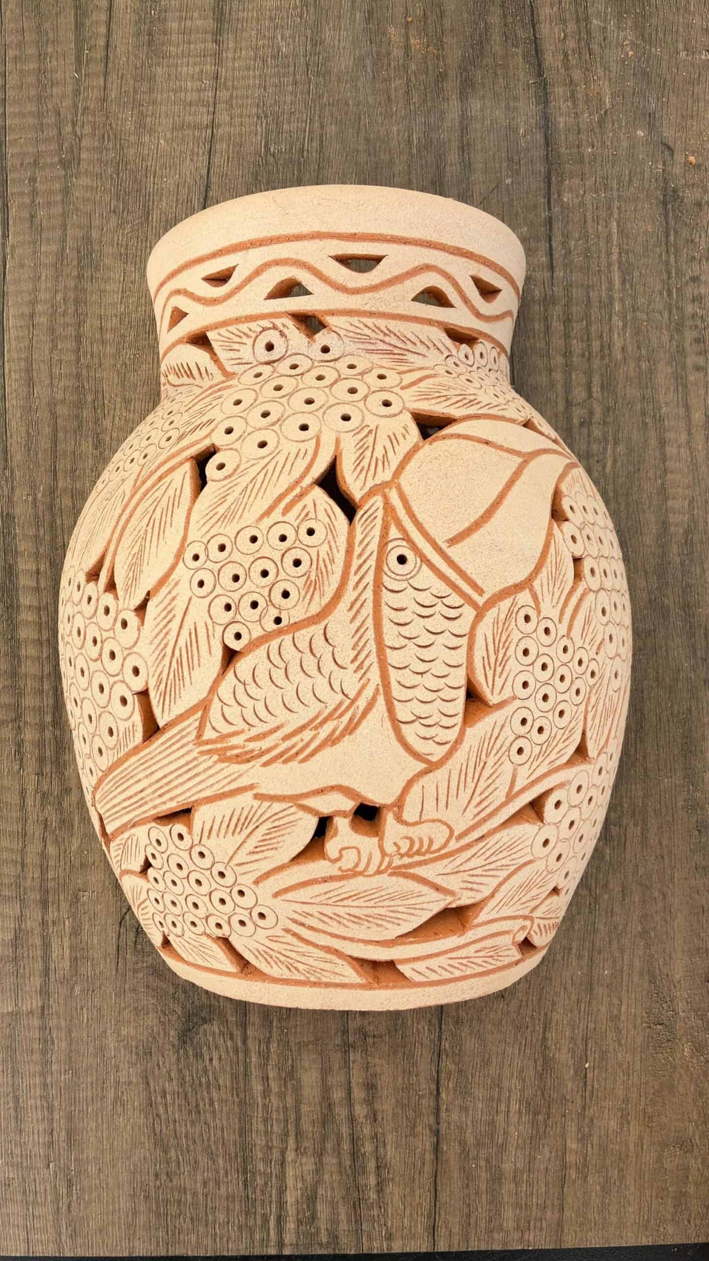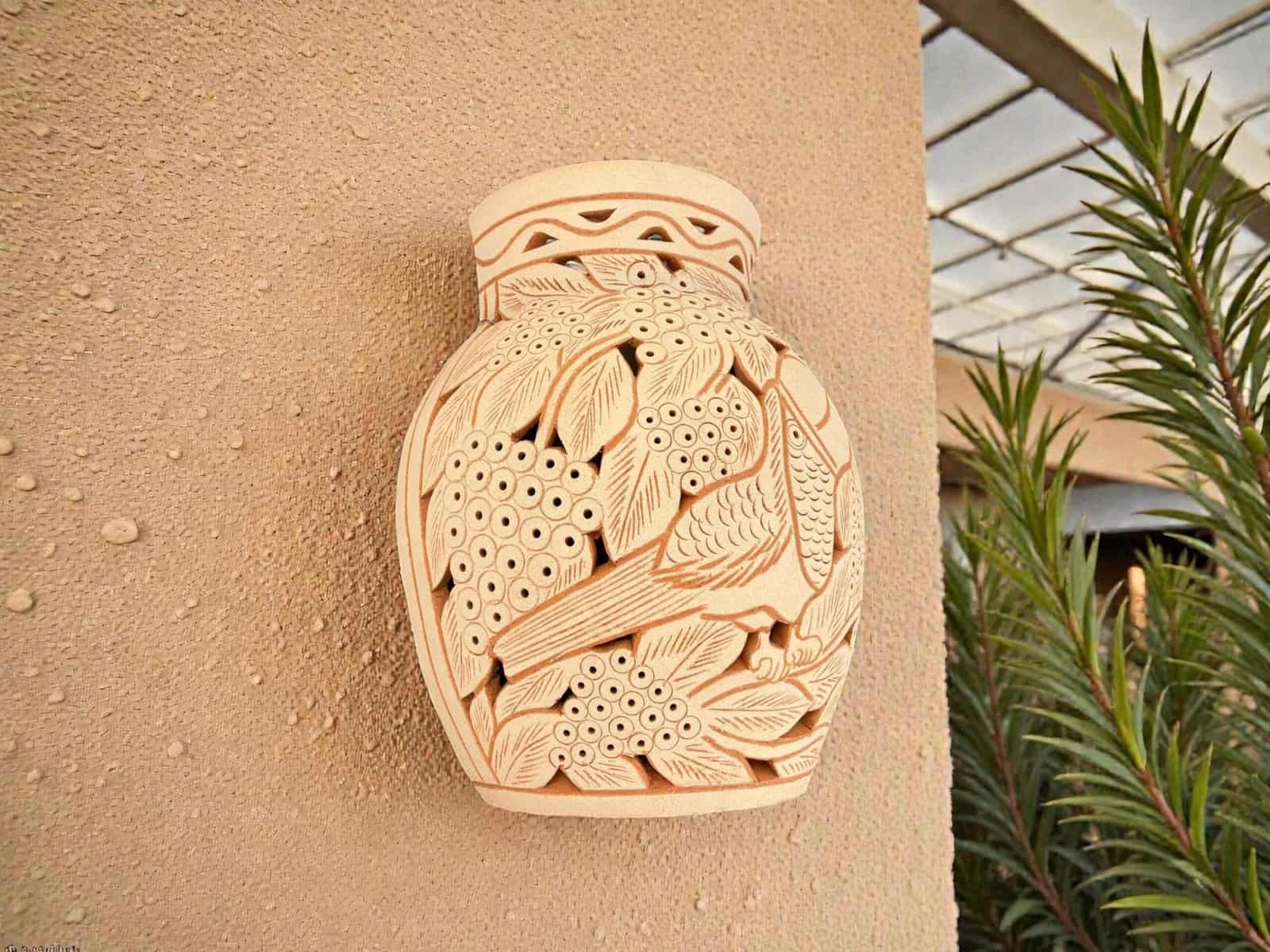 This handmade clay wall sconce is a stunning example of traditional pottery from Santa María Atzompa, Oaxaca, a town internationally recognized for its ancestral ceramic techniques.