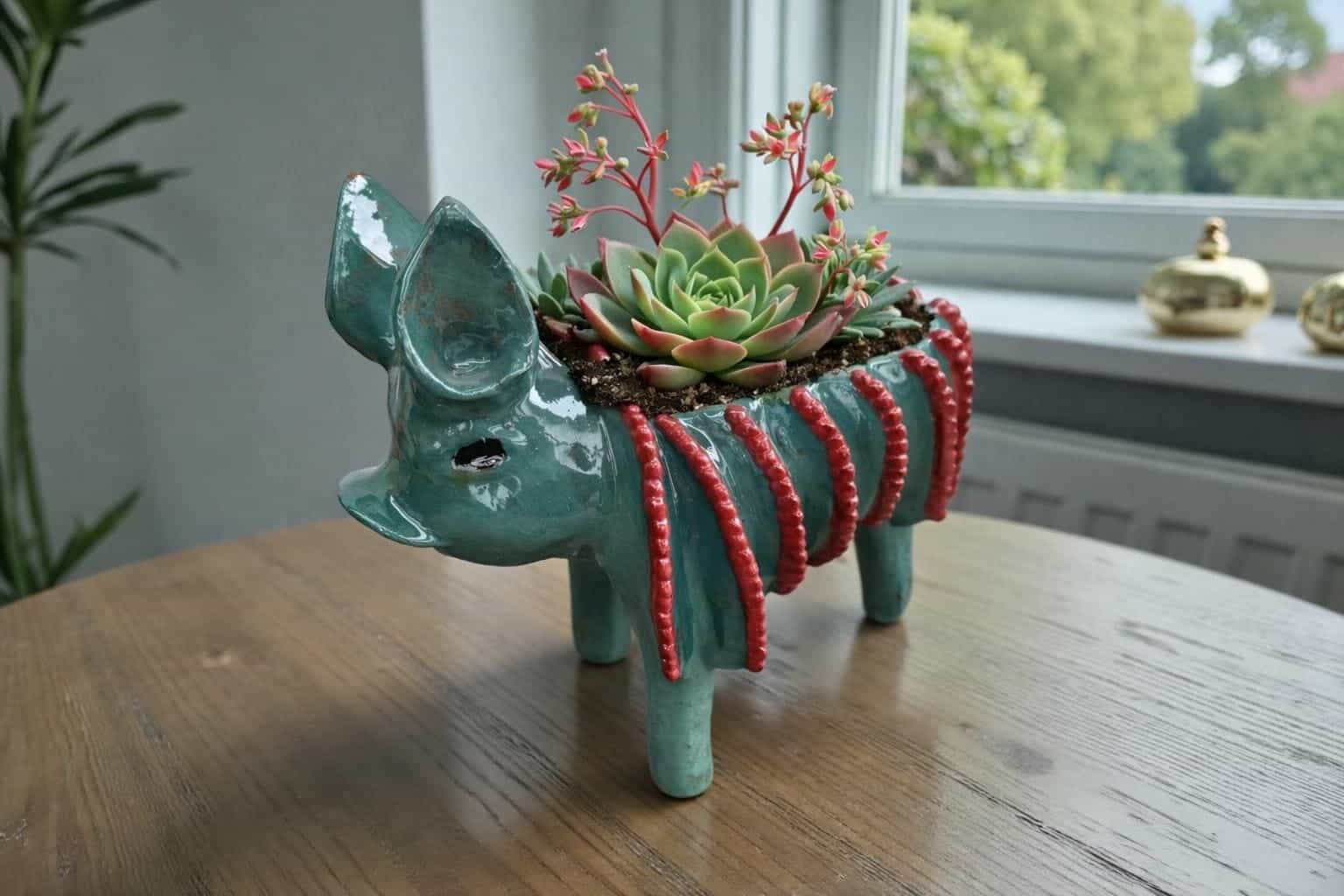 Each pig is 100% handmade, shaped, detailed, and glazed individually, making every piece truly one of a kind. Due to its versatile design, it can be used as a decorative planter for succulents or as a functional salsa bowl for your kitchen or dining table.