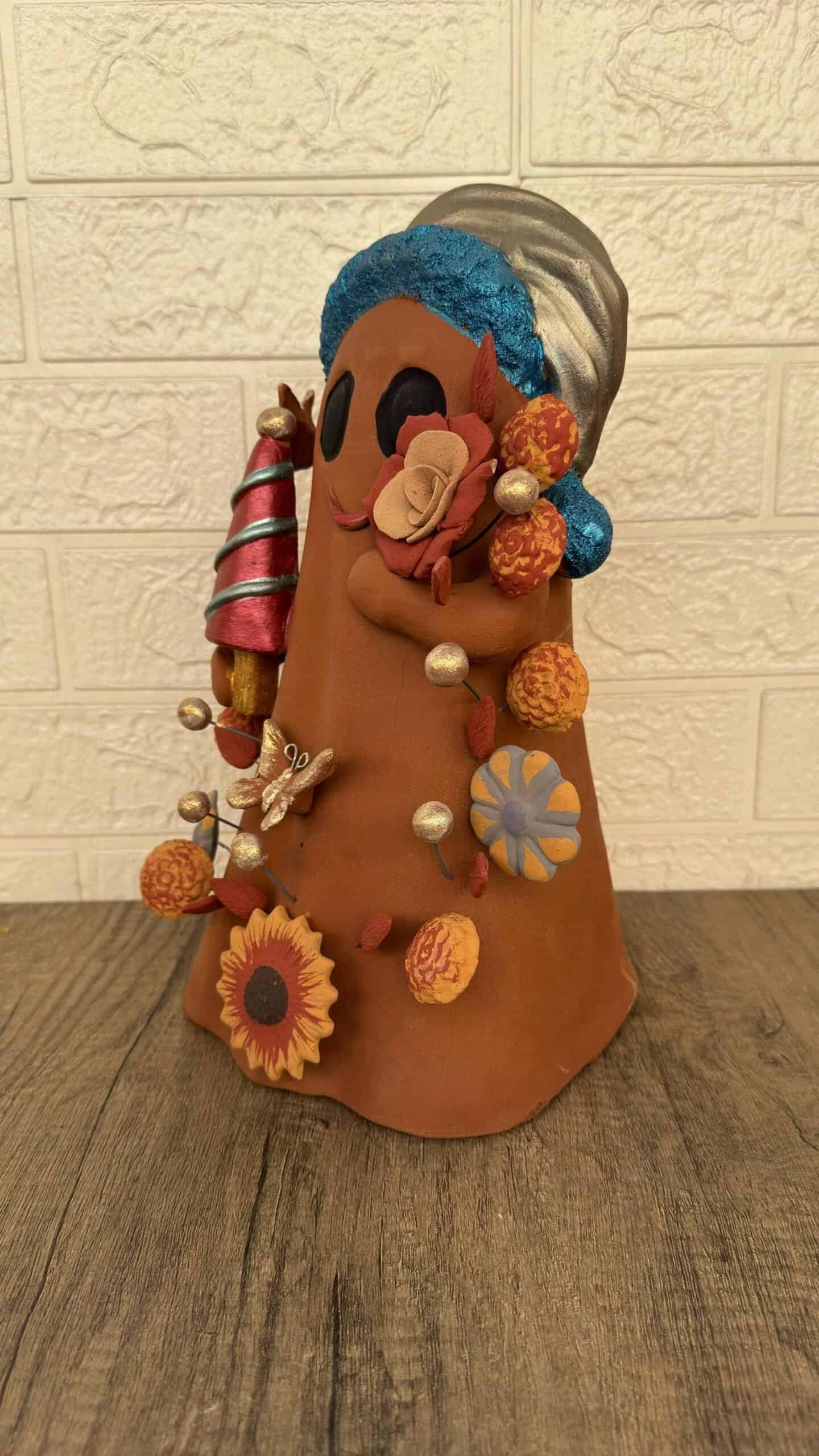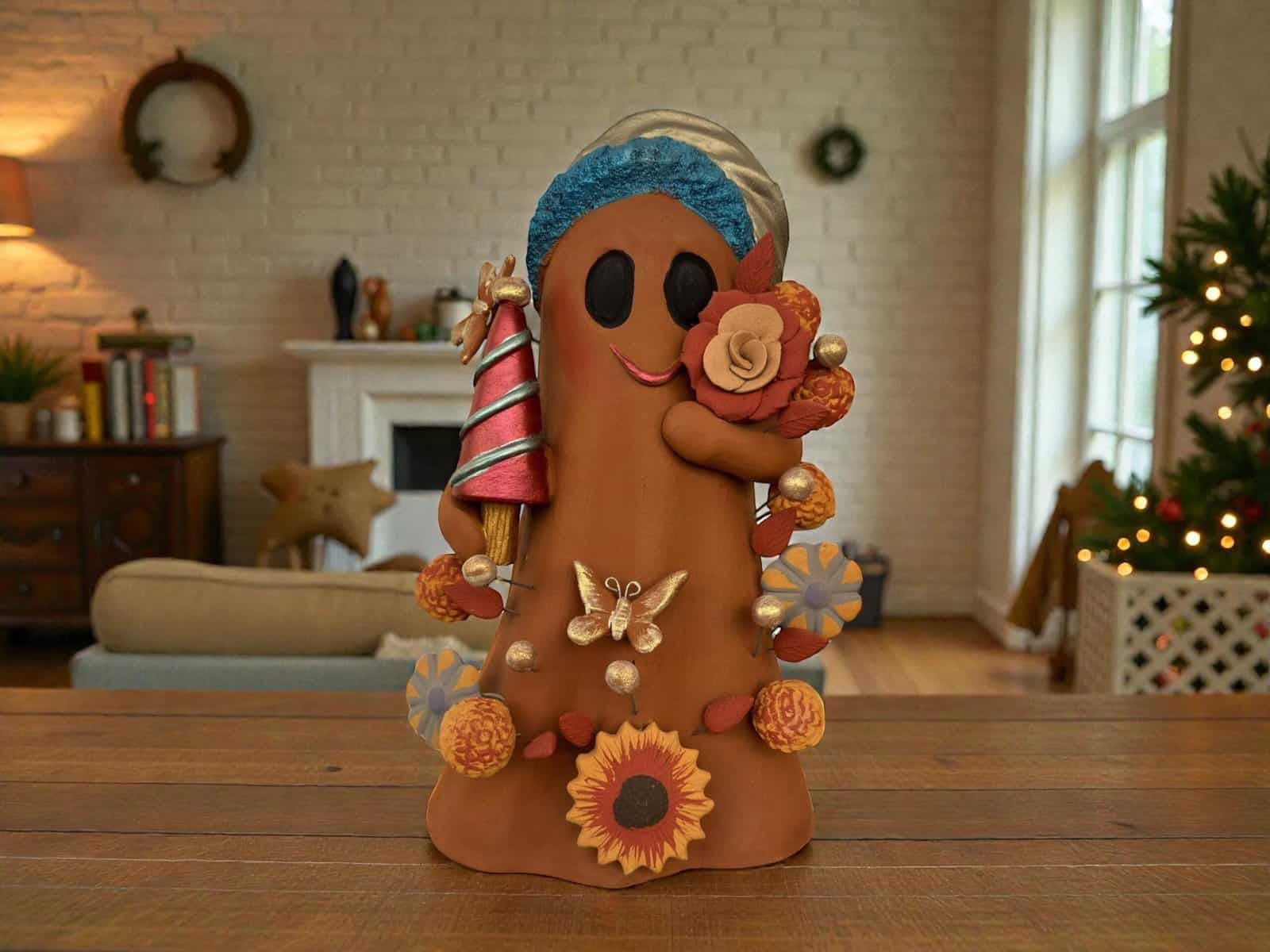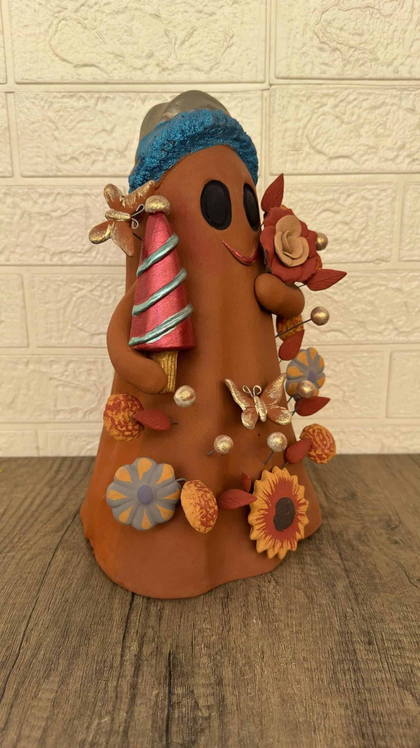 Handmade Mexican Christmas Ghost Sculpture, Clay Holiday Figurine, Metepec Pottery Art, Unique Christmas Home Decor