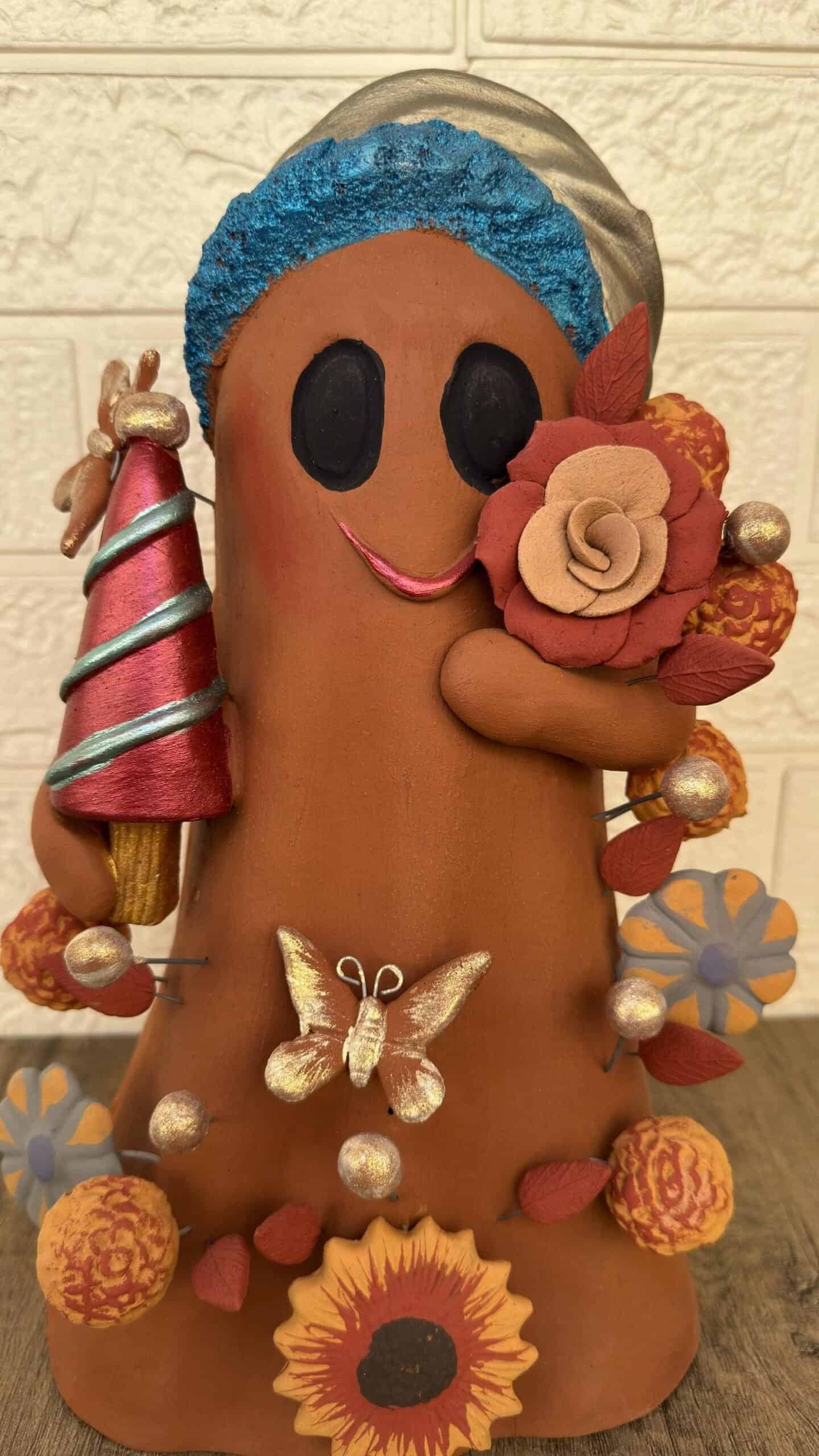 Each piece is carefully molded, sculpted, and painted by hand, incorporating festive elements such as flowers, butterflies, and a tiny Christmas tree — all crafted in clay with meticulous attention to detail. Because it’s fully handcrafted, every ghost is one-of-a-kind, making your piece a meaningful and unique addition to your holiday décor.
