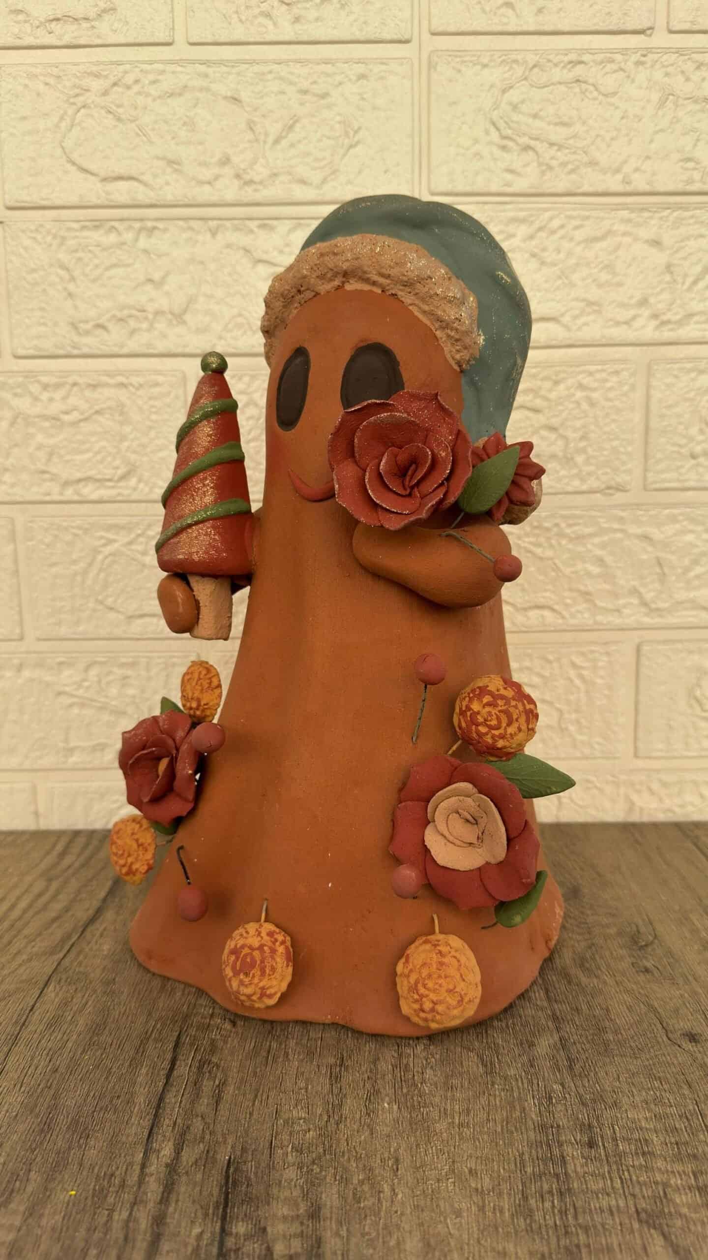 Each piece is carefully molded, sculpted, and painted by hand, incorporating festive elements such as flowers, butterflies, and a tiny Christmas tree — all crafted in clay with meticulous attention to detail. Because it’s fully handcrafted, every ghost is one-of-a-kind, making your piece a meaningful and unique addition to your holiday décor.