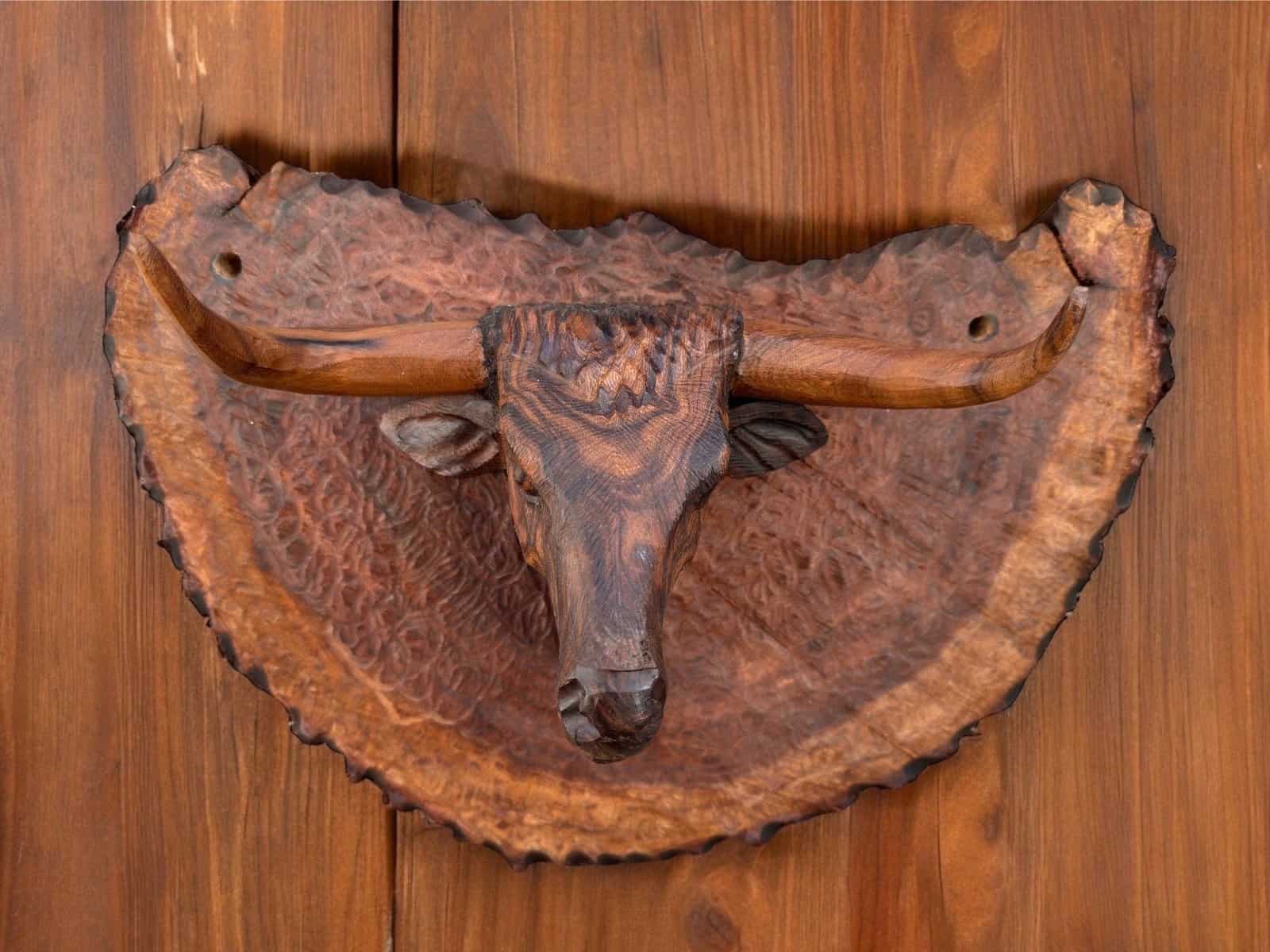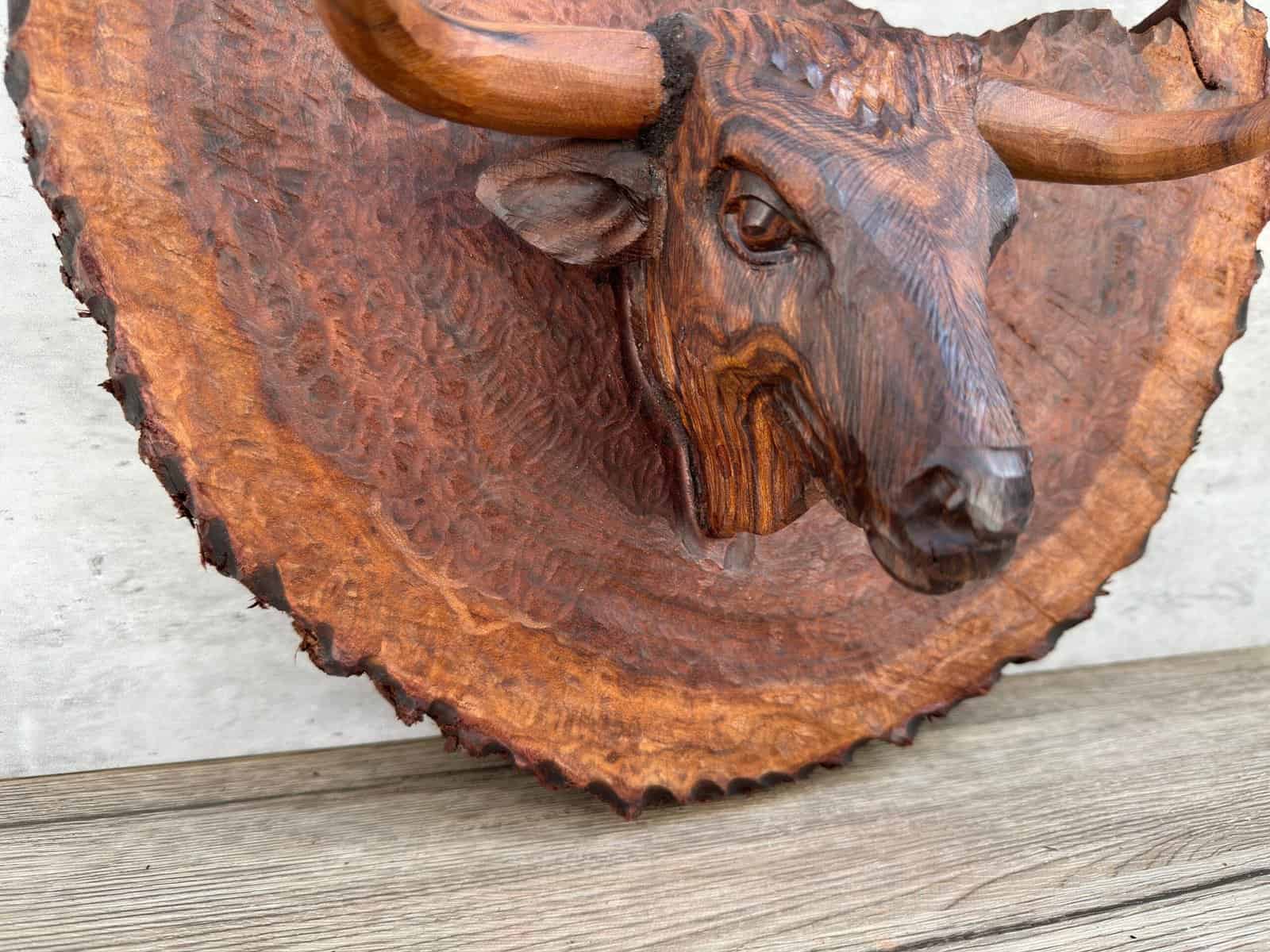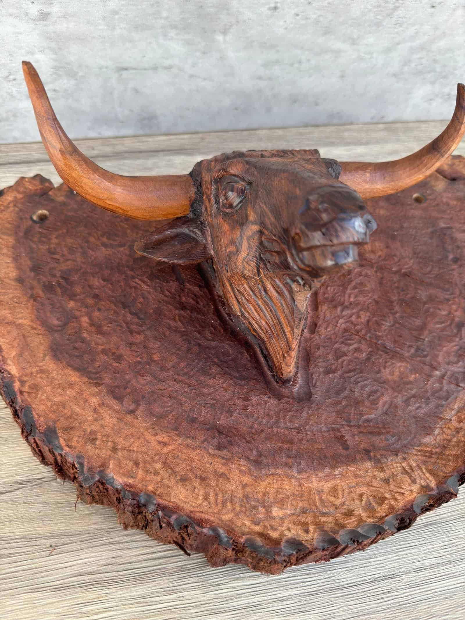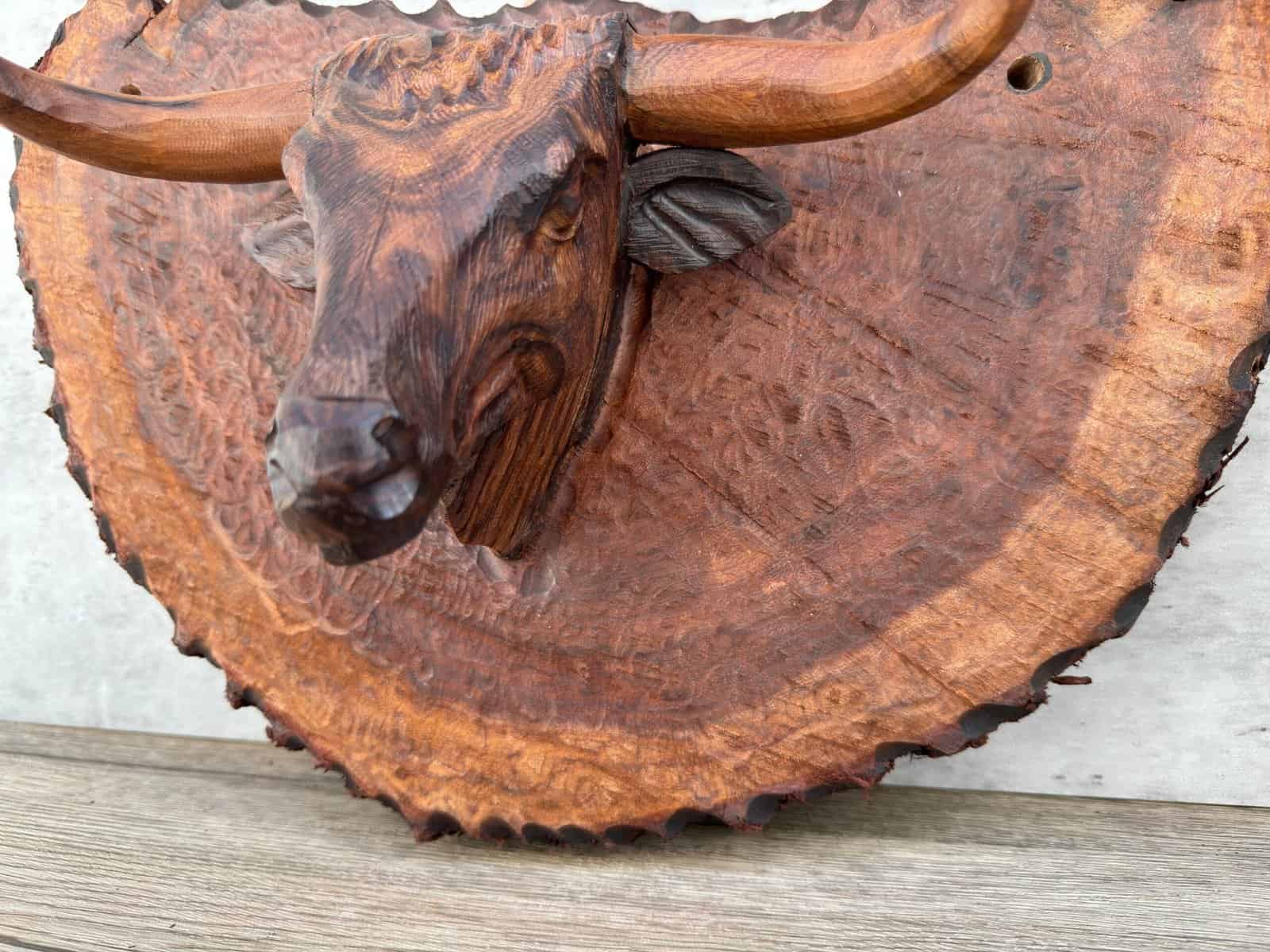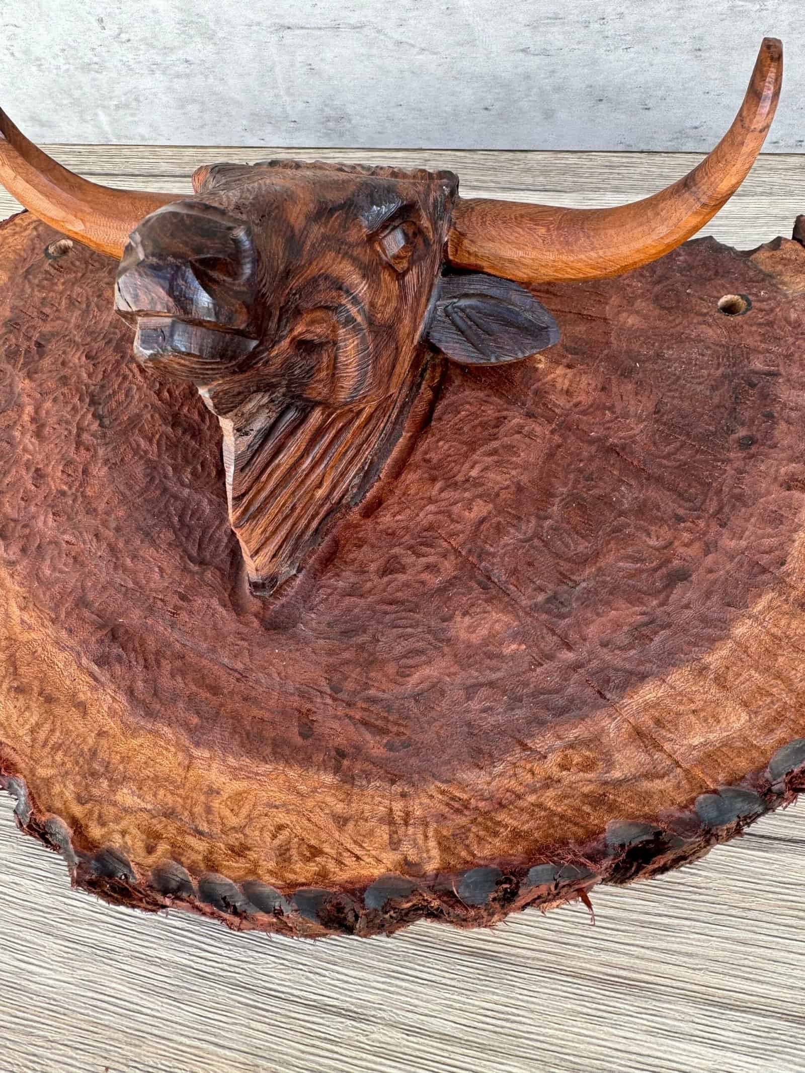 “Bull Hanging Carved in Ironwood in 1 piece ”