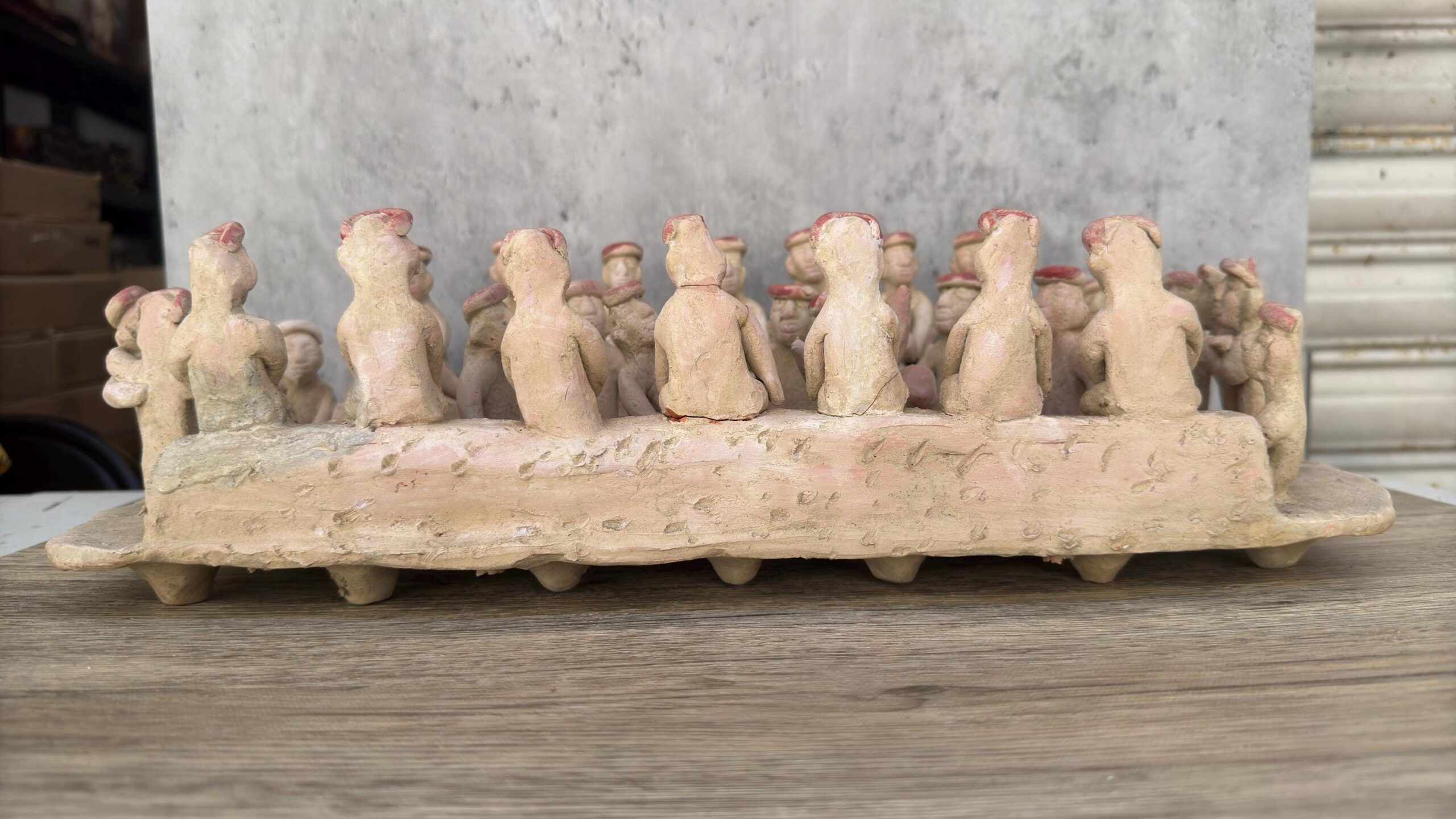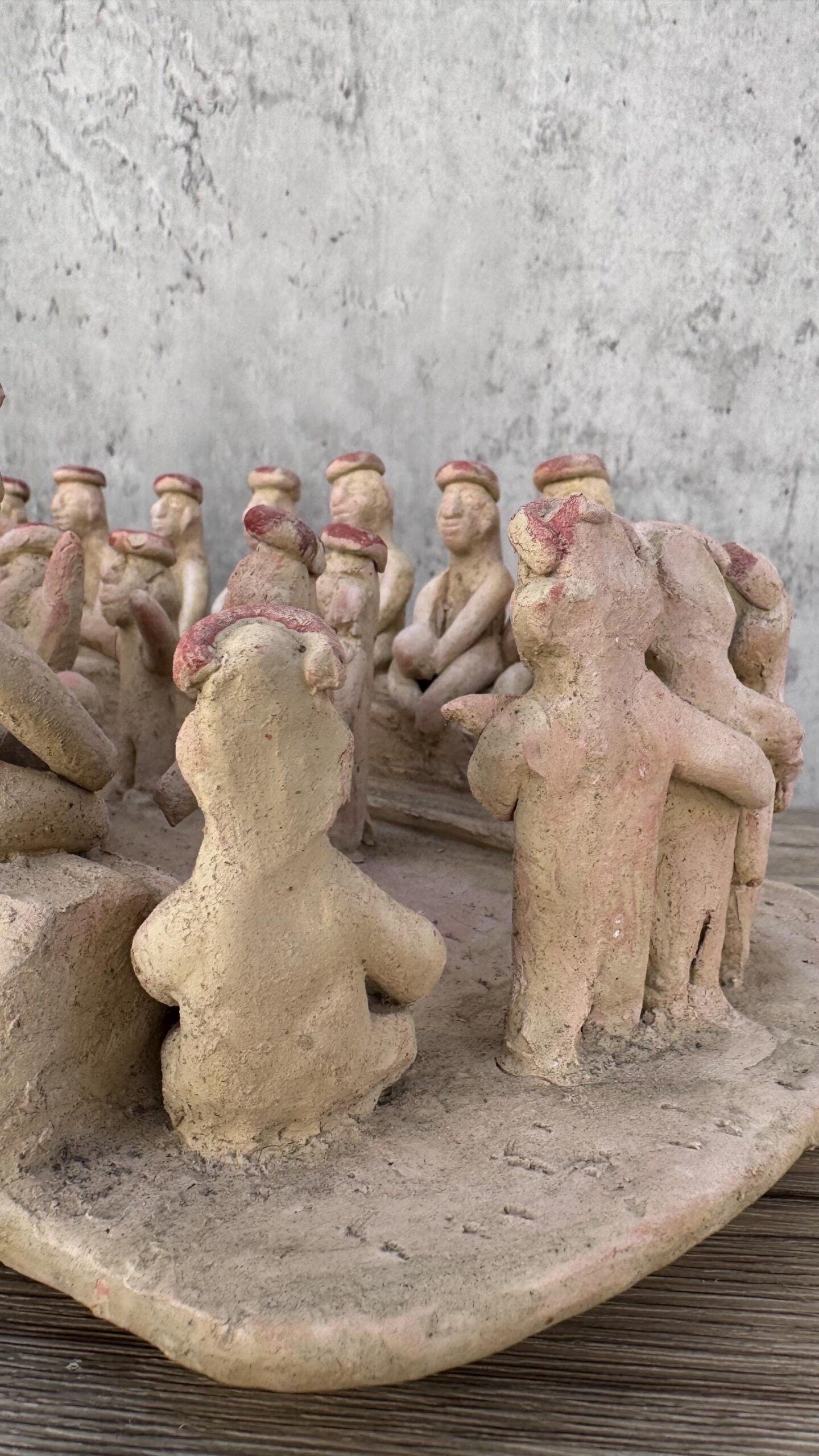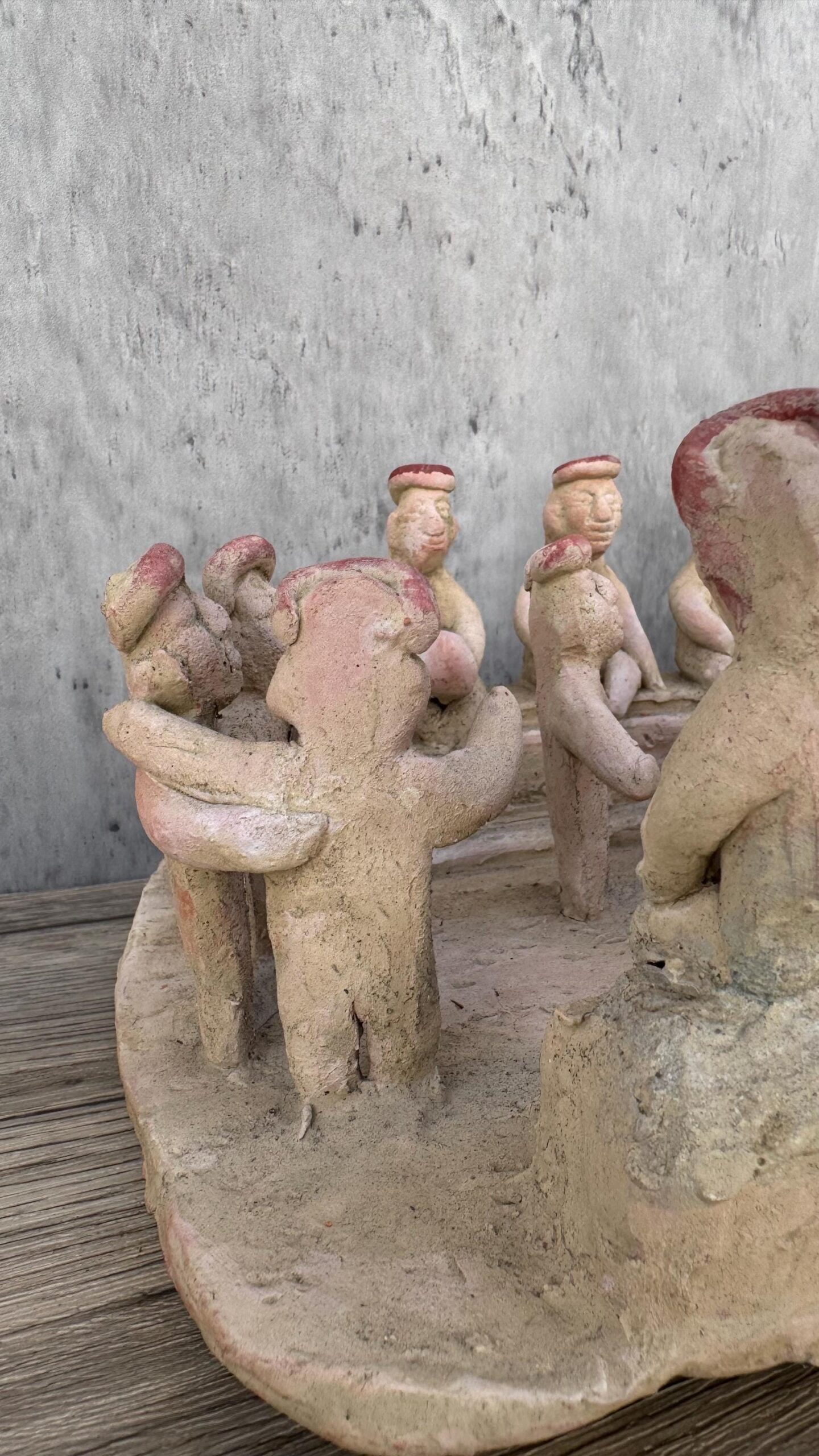 This piece represents an ancient Mesoamerican ball game, also known as “Juego de Pelota.” The game held significant cultural and religious importance in pre-Columbian civilizations such as the Maya, Aztec, and Olmec. This handcrafted ceramic sculpture captures the essence of the game, depicting several players gathered on a rectangular court, all focused on the central action of the ball being passed. The players are shown in various positions, highlighting the dynamic nature of the game.