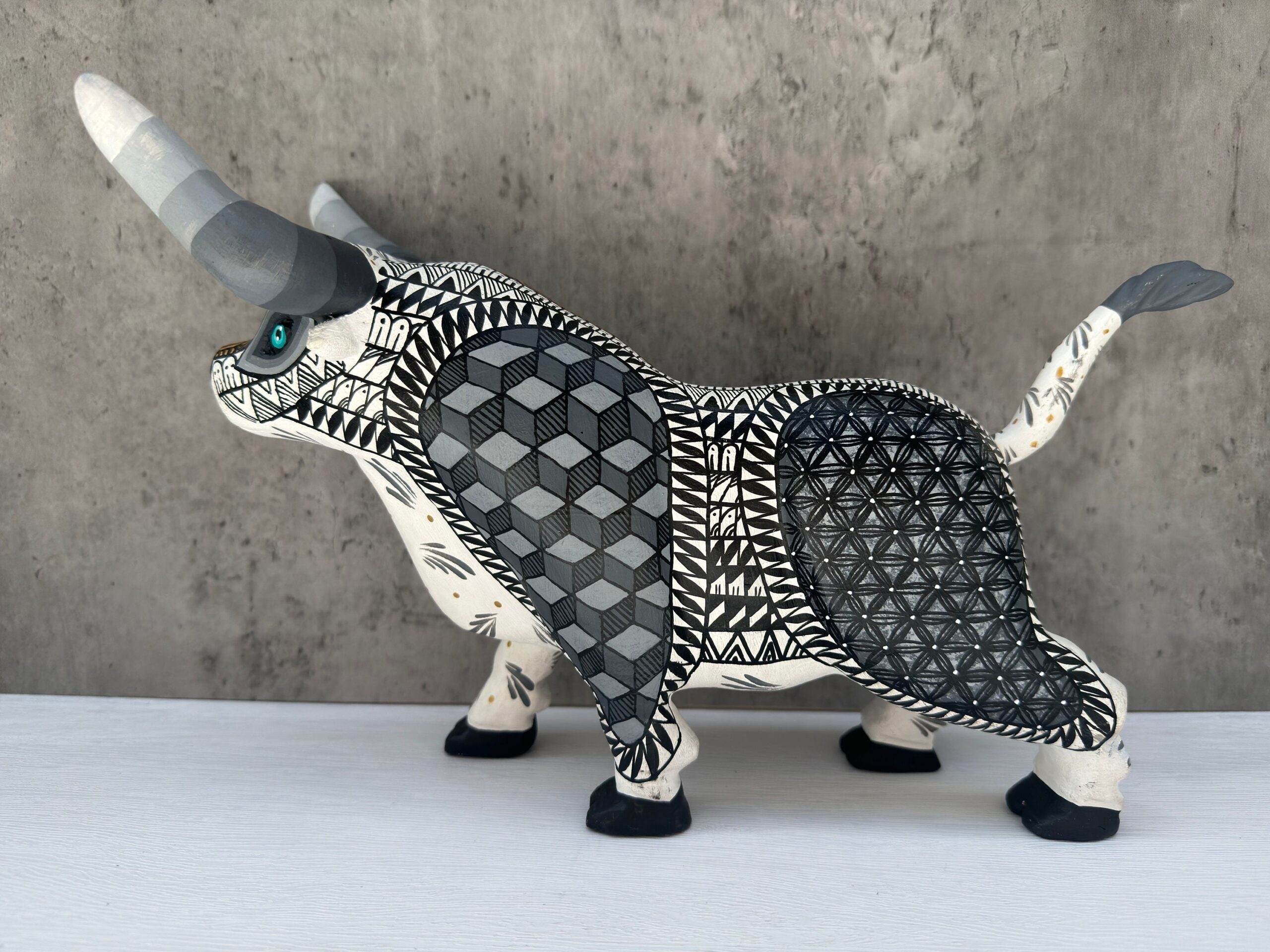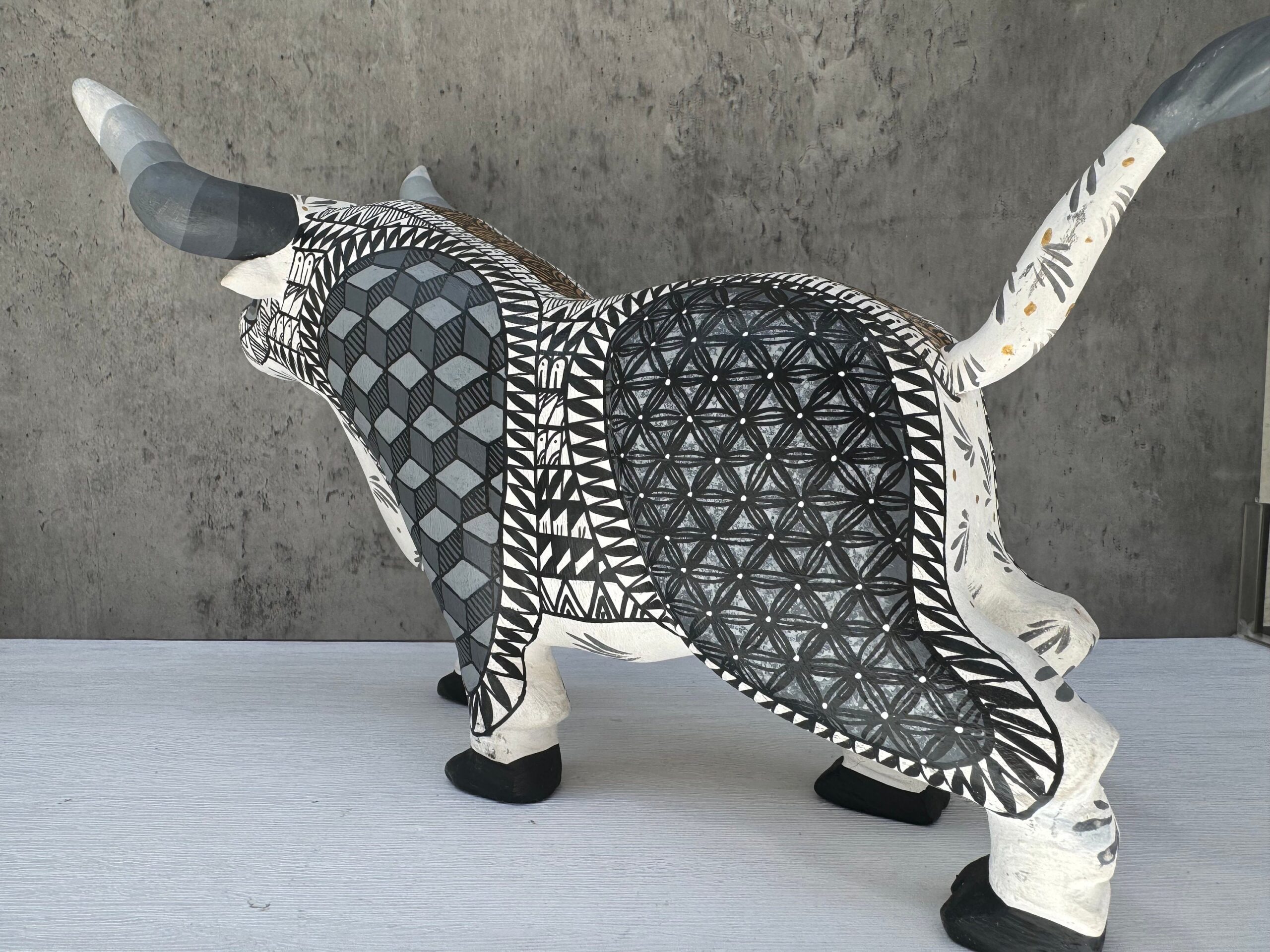 “ Bull figurine – Alebrije – Carved in wood “ Item Description: * Made in Mexico * Made in Oaxaca by native indigenous people * Folk art