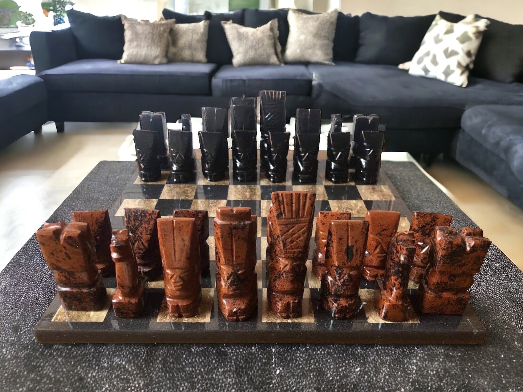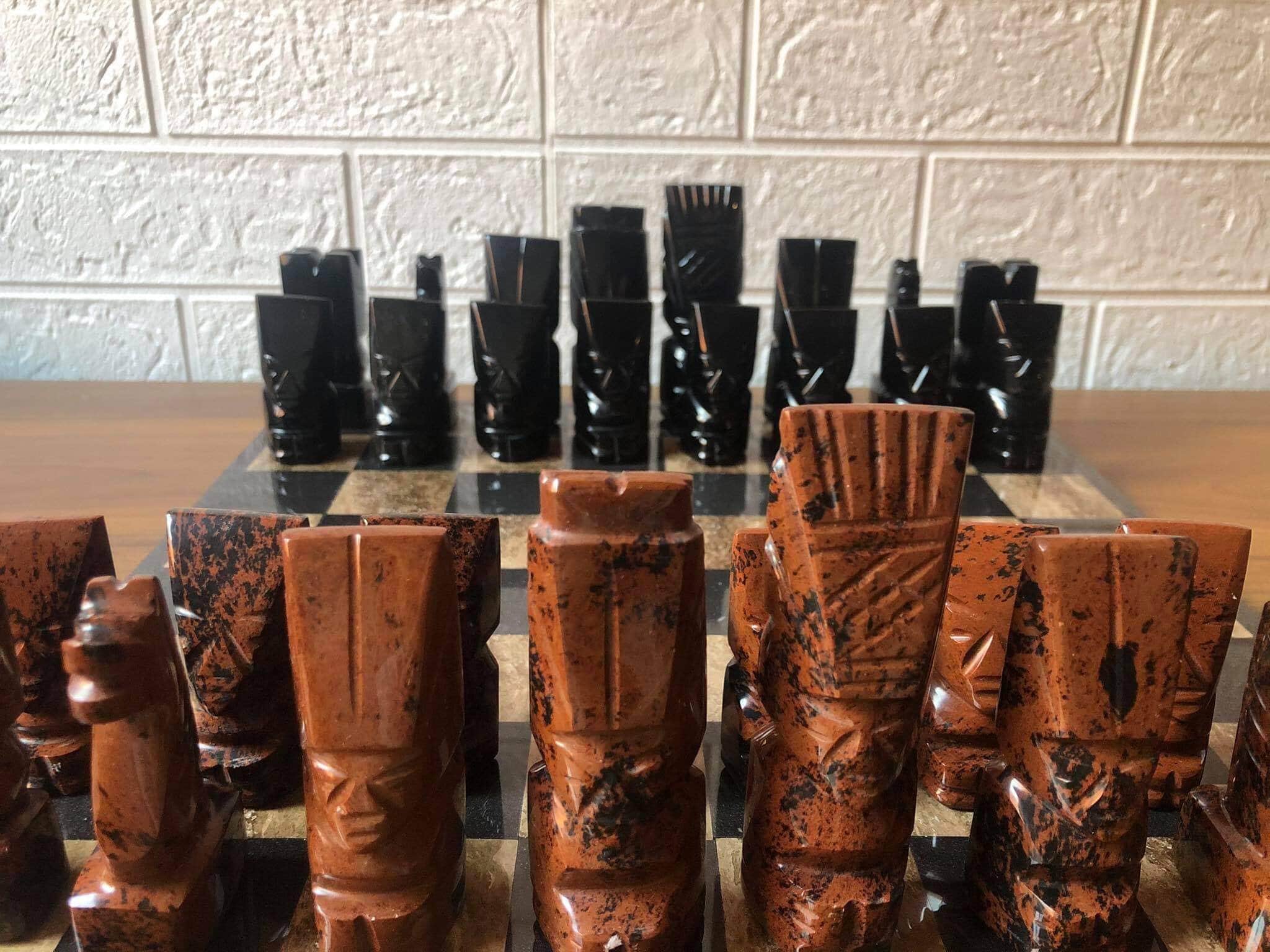 “ Obsidian chess set, Marble Chess board, Stone Chess Set, Soviet Chess Set, Modern Chess Set, Chess Board, Chess Pieces, Chess Set handmade, Made by Mexican Artisans “
