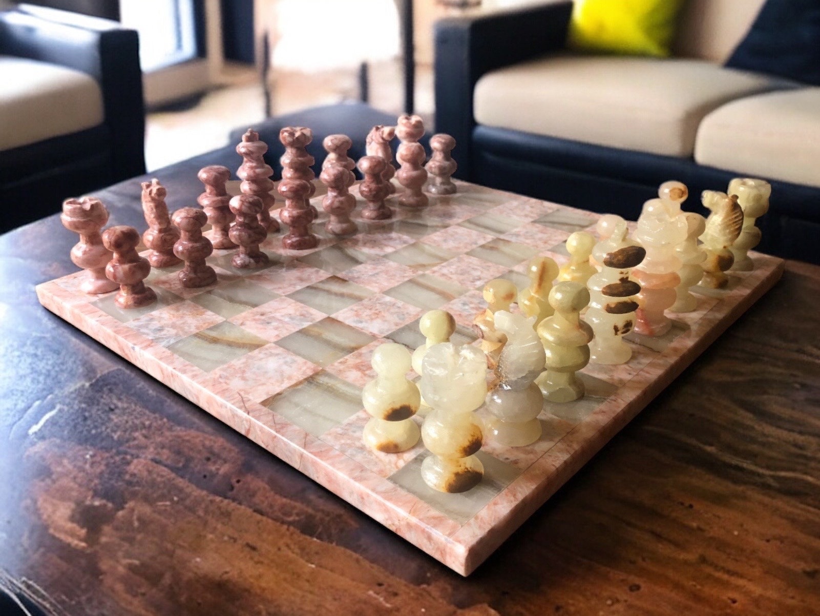 “ Marble Chess Set, Stone Chess Set, Soviet Chess Set, Modern Chess Set, Chess Board, Chess Pieces, Chess Set handmade, Made by Mexican Artisans “