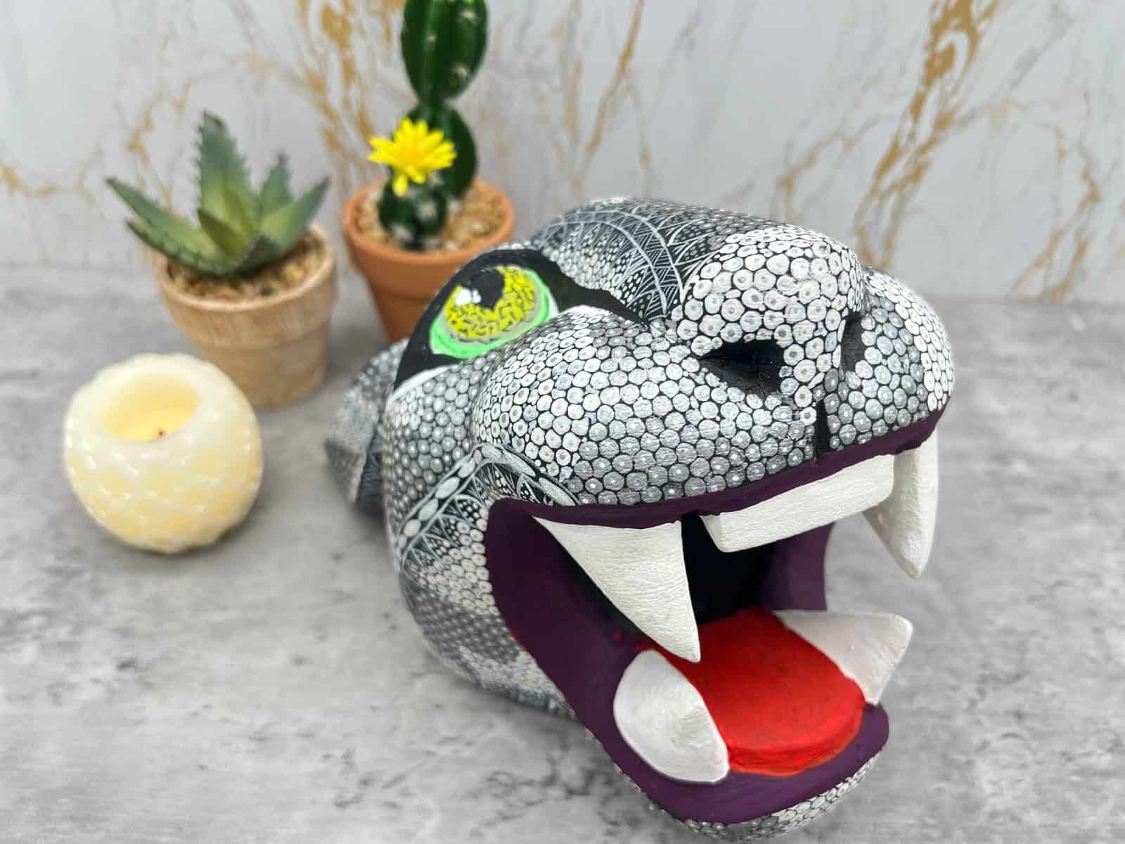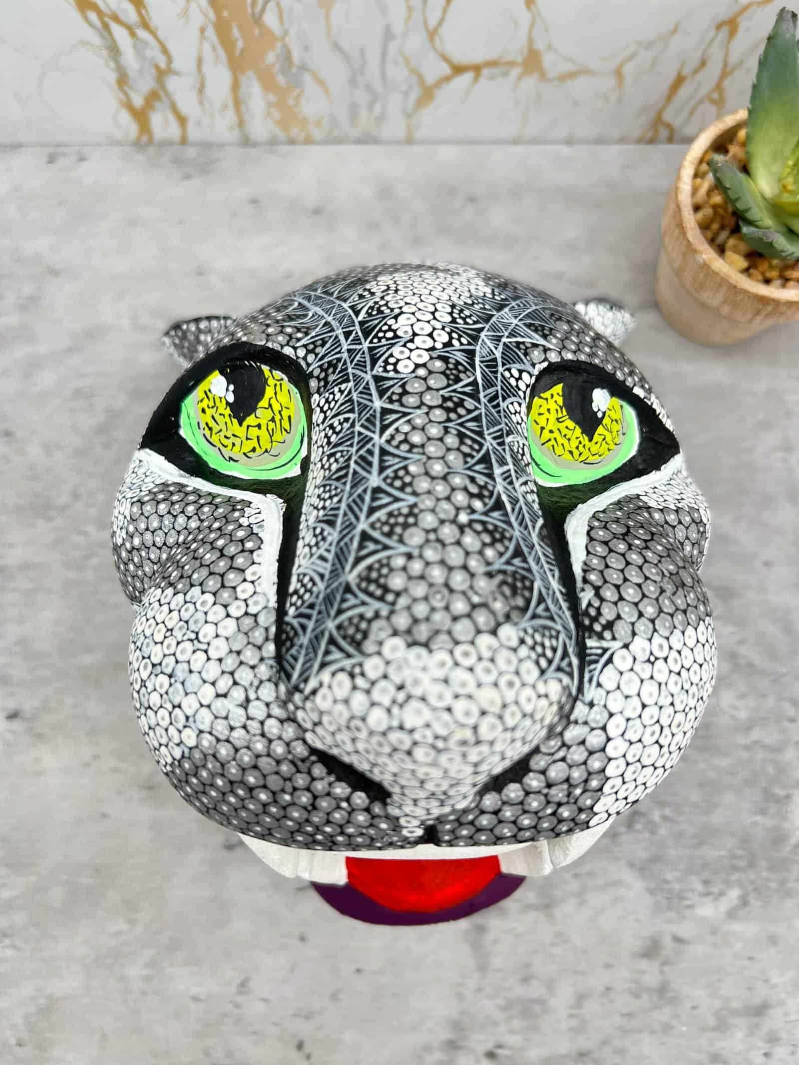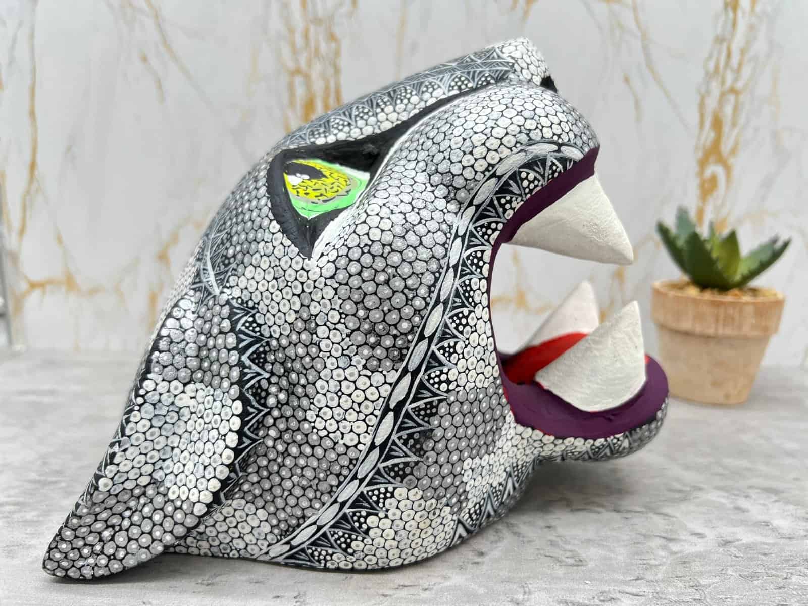 “Jaguar head sculpture – Alebrije – Wood carving“ Item Description: * Made in Mexico * Made in Oaxaca by native indigenous people * Folk art