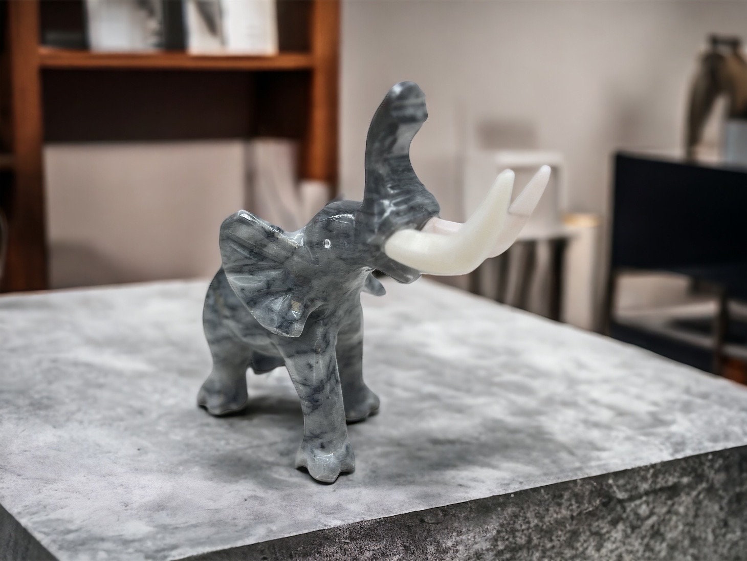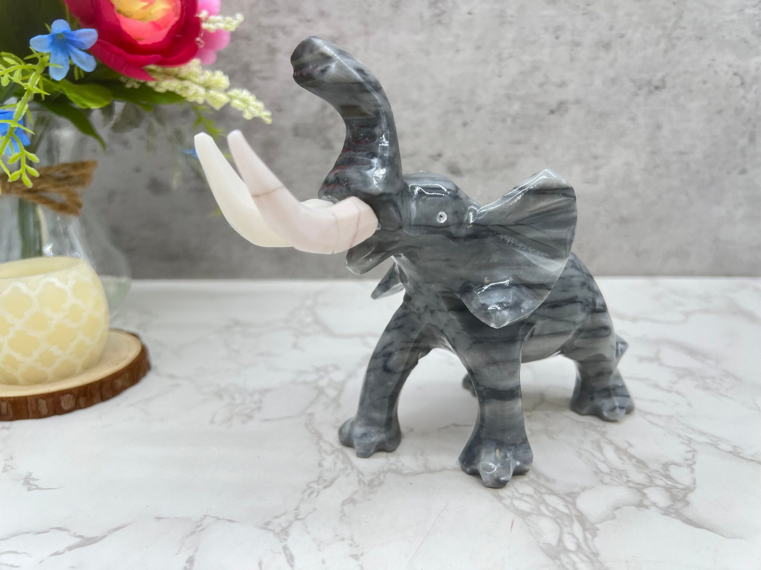 Marble Elephant Sculpture, Animal Carved In Stone Luxury Elephant For Gift For Home Decor