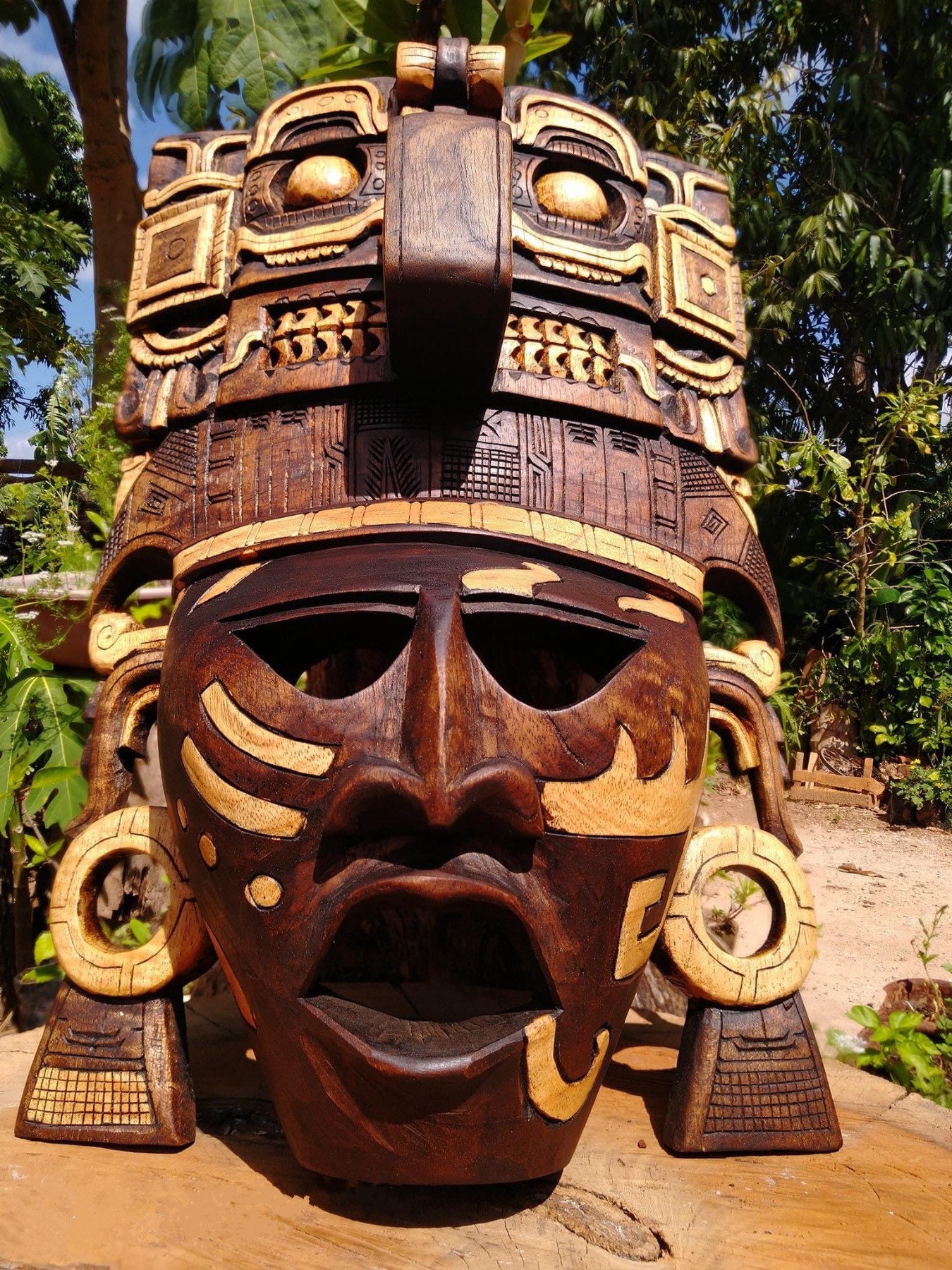 Máscara de madera prehispánica, cultura maya, arte mural mexicano, tallado a mano CONSULTAR PARA PERSONALIZAR