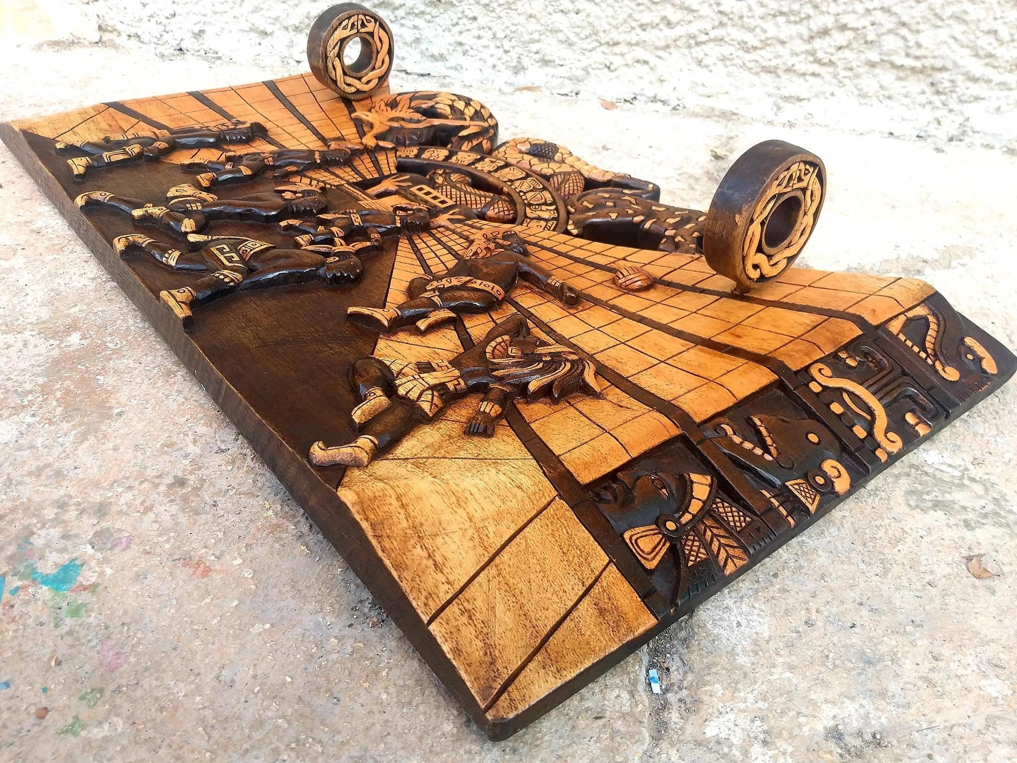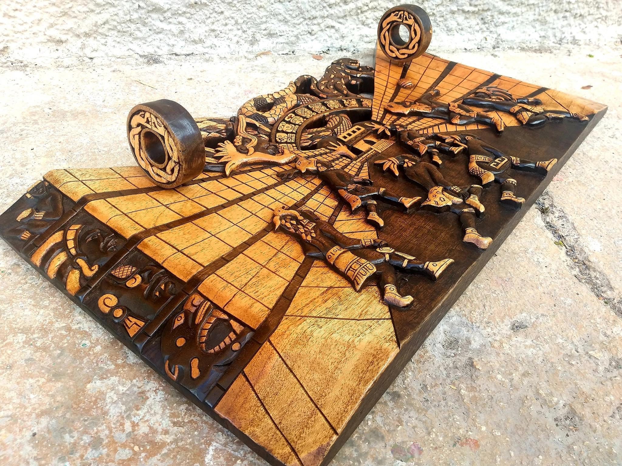 Mayan wall decor, Mexican painting, Quetzalcoatl, Prehispanic, Wood carving, Handcrafted