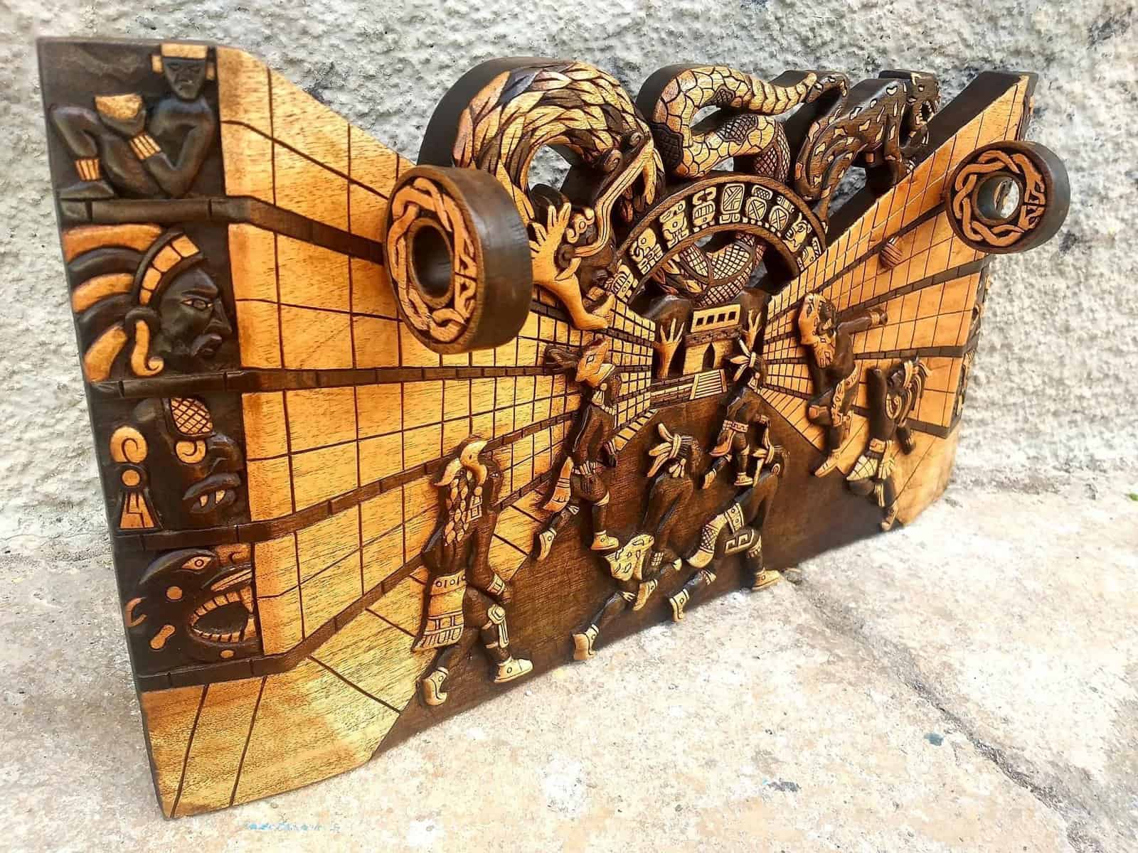 “ Mexican painting for wall or table, inspired by Mayan art – ball game – Quetzalcoatl ”