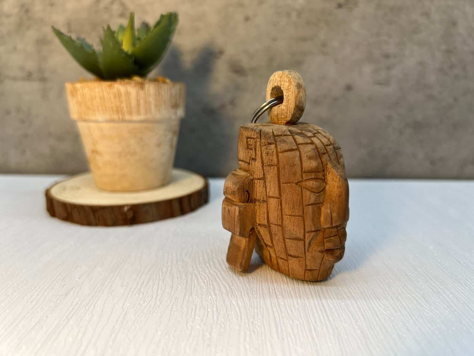 Mayan wooden keychain, Mexican folk art, Mexican mask, Mayan art, Mayan mask, Prehispanic, Mayan statue