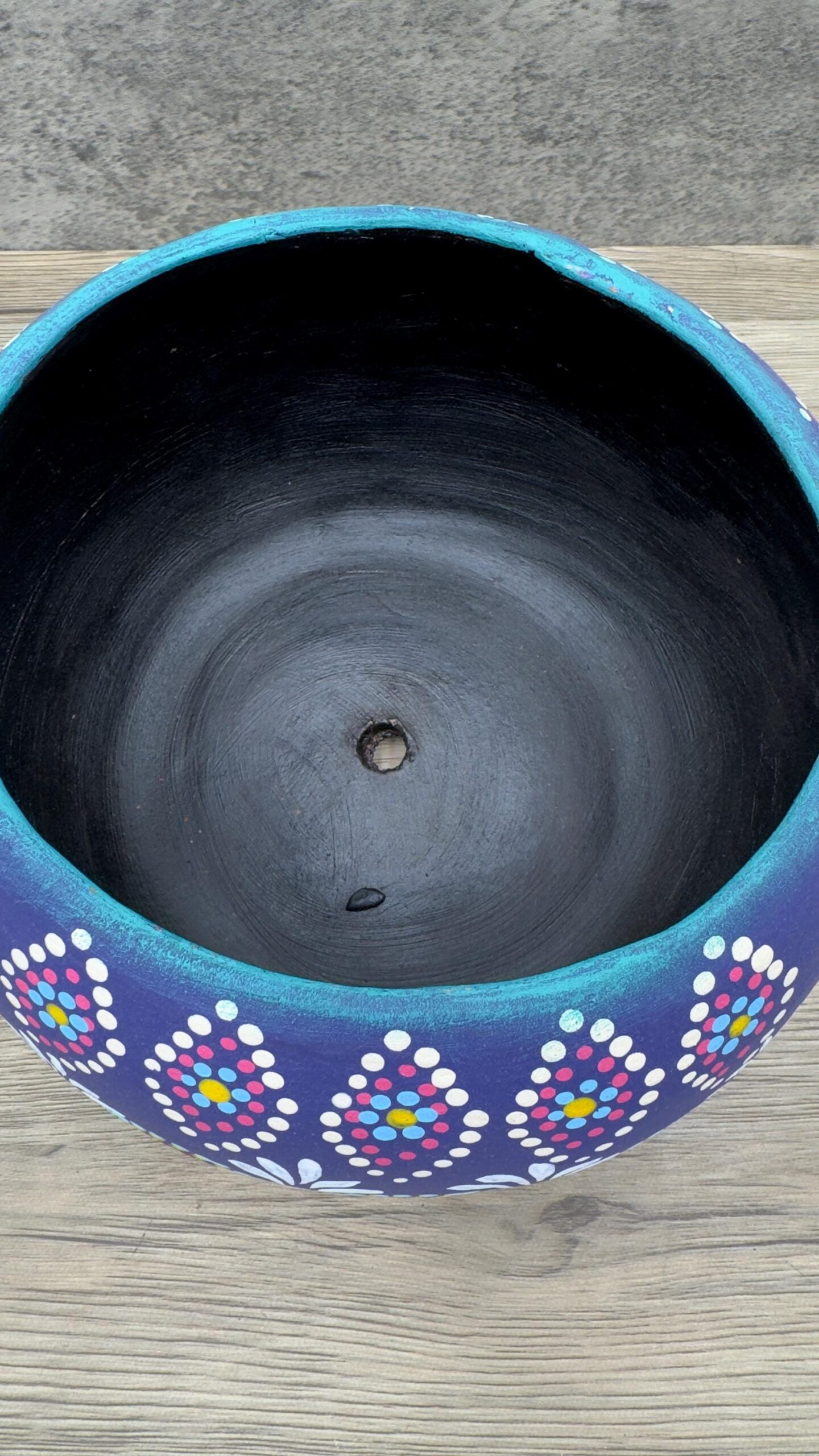 Bring authentic Mexican craftsmanship into your home with this beautiful handmade clay planter created by artisans in Michoacan, Mexico. Each piece is carefully shaped and decorated using the traditional Capulineado technique, a detailed hand-painted style that reflects the rich heritage of Mexican folk art.